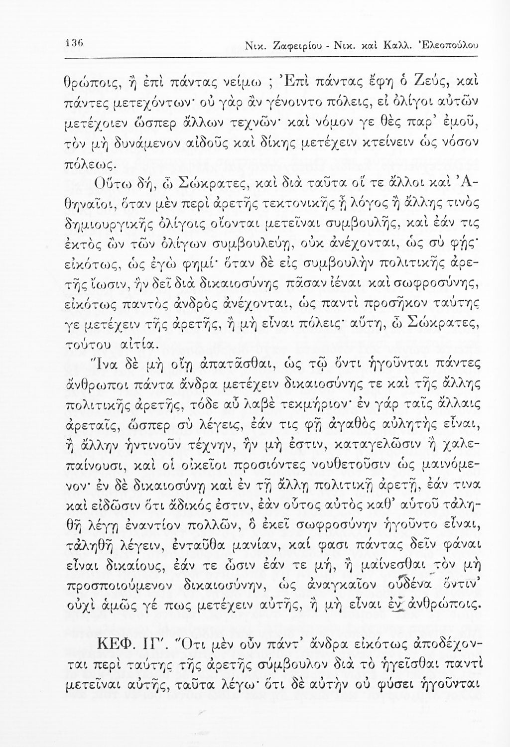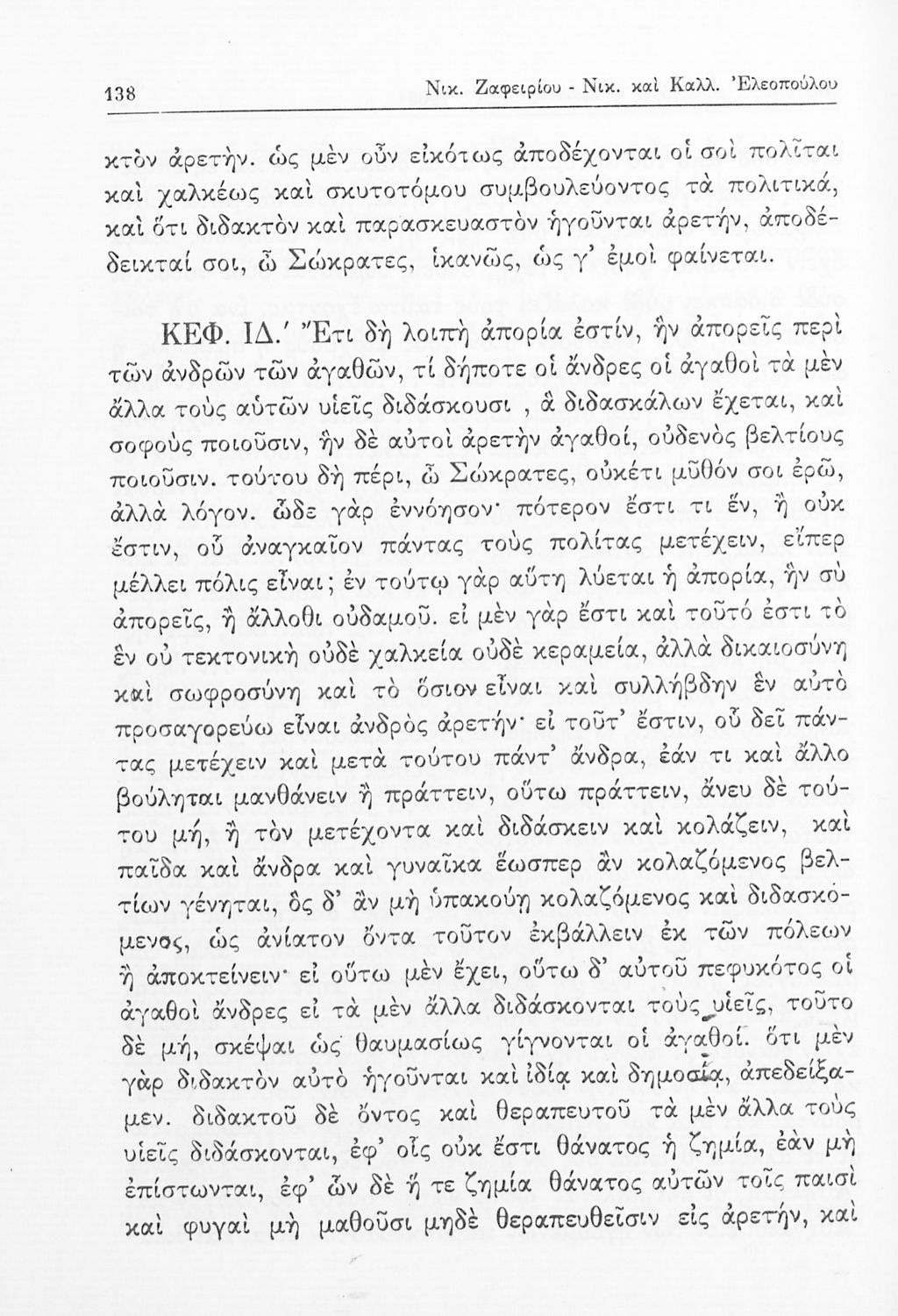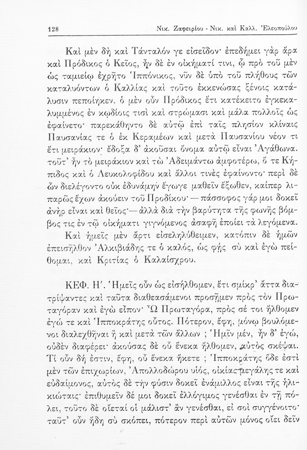 Πλάτων, Ν. Κοντόπουλος, Ν. Ζαφειρίου, Ν. Ελεόπουλος, Ε. Ελεοπούλου (σχόλια)