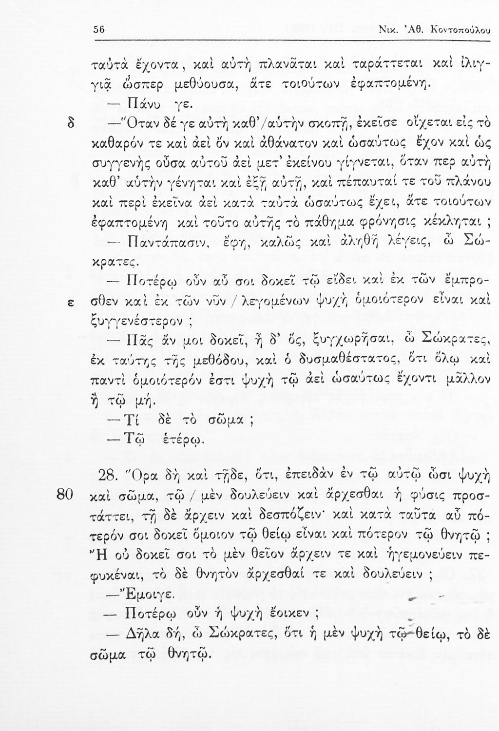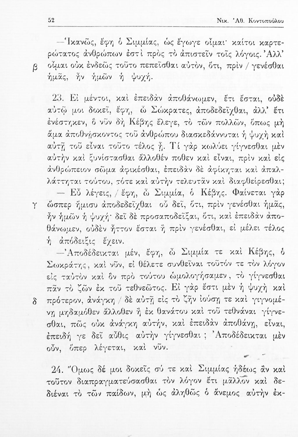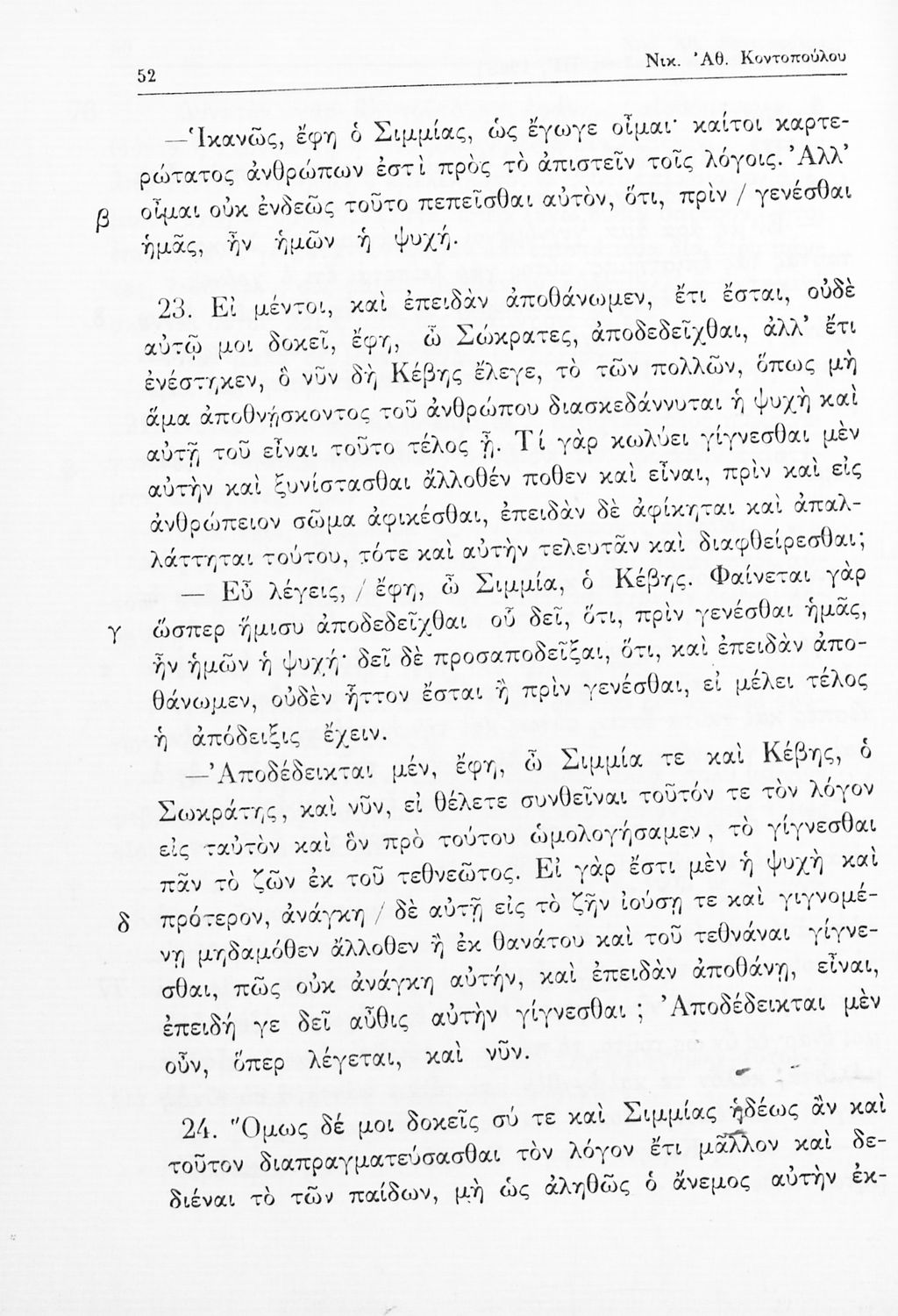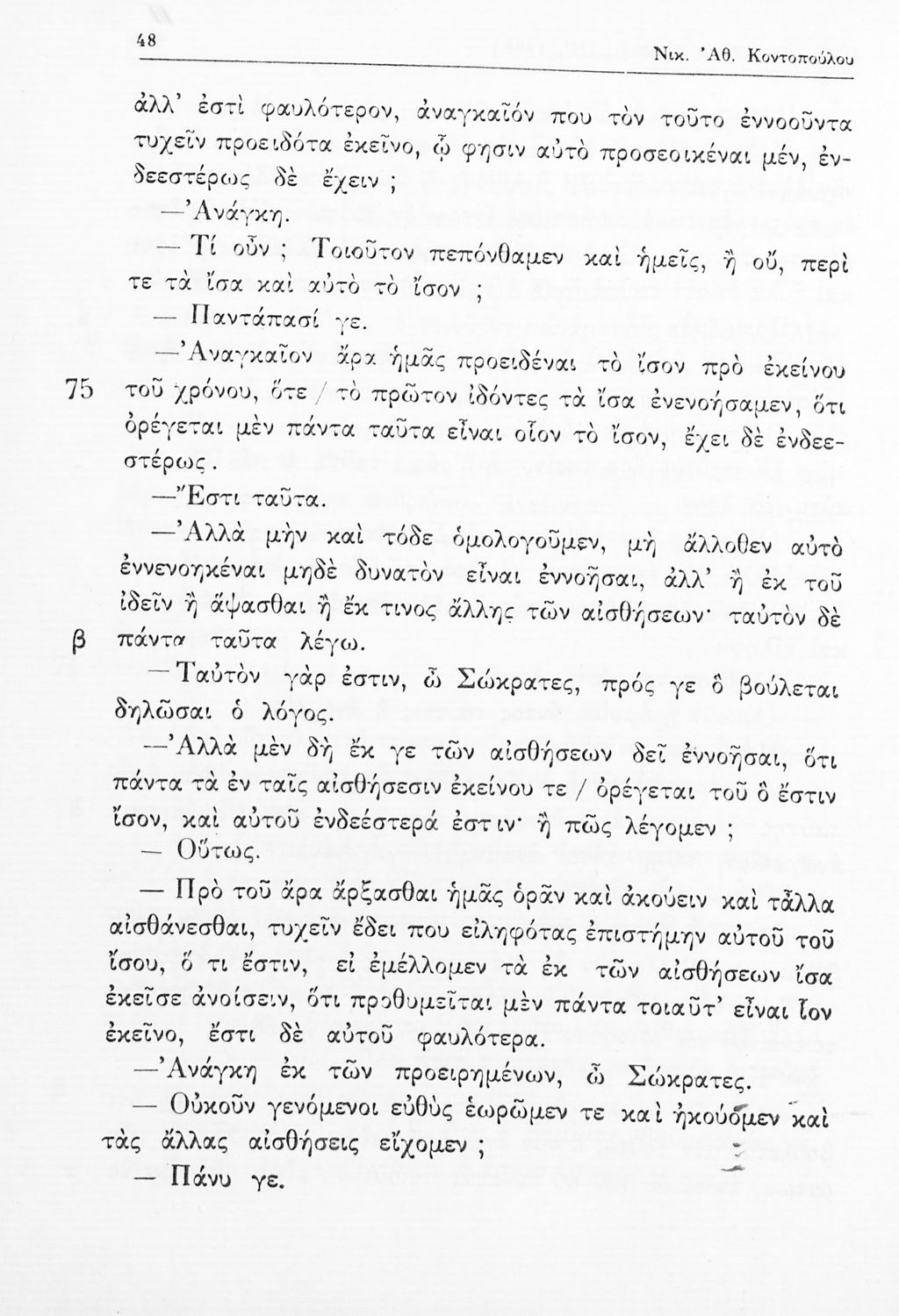 Πλάτων, Νικ. Αθ. Κοντόπουλος (σχόλια)