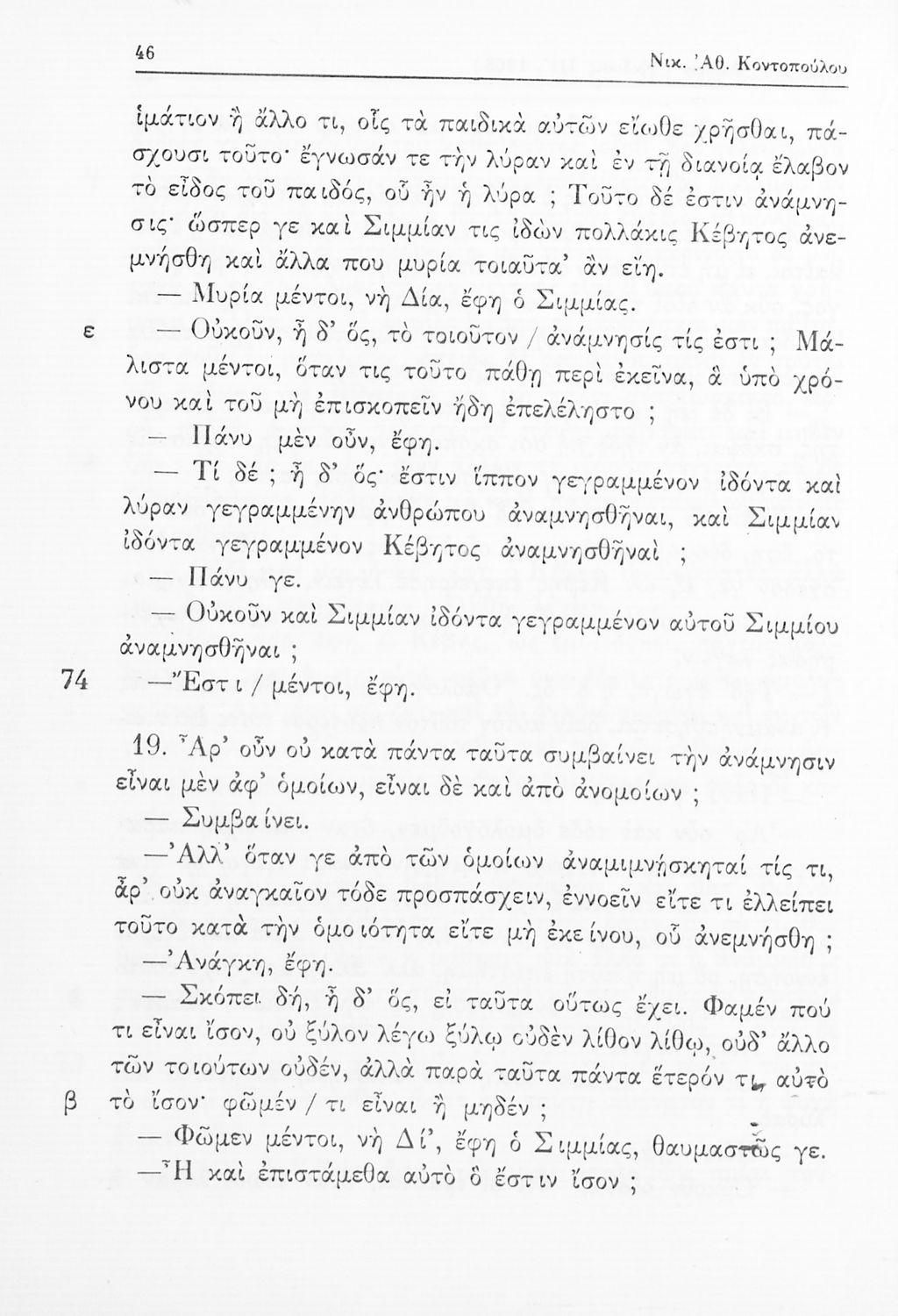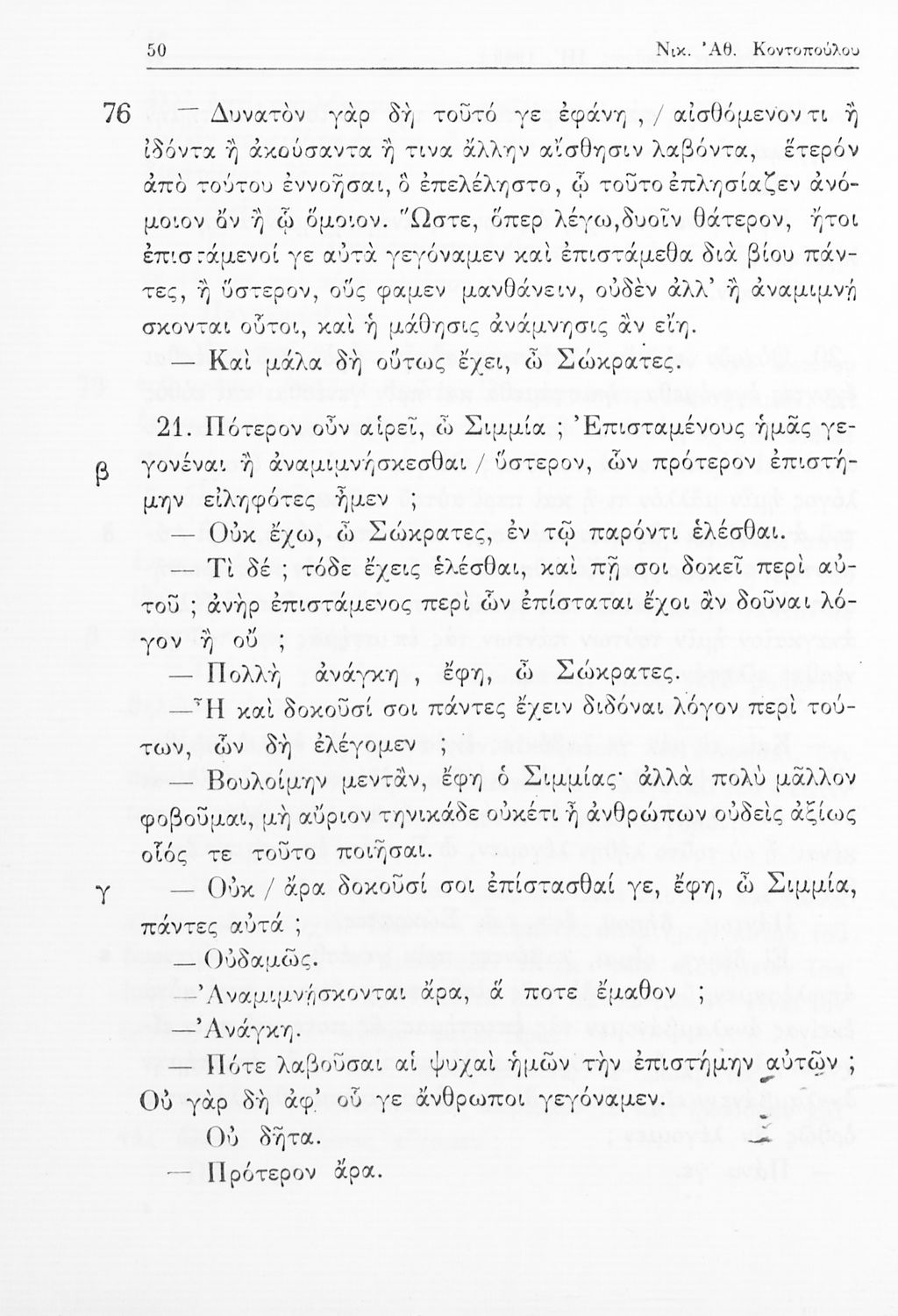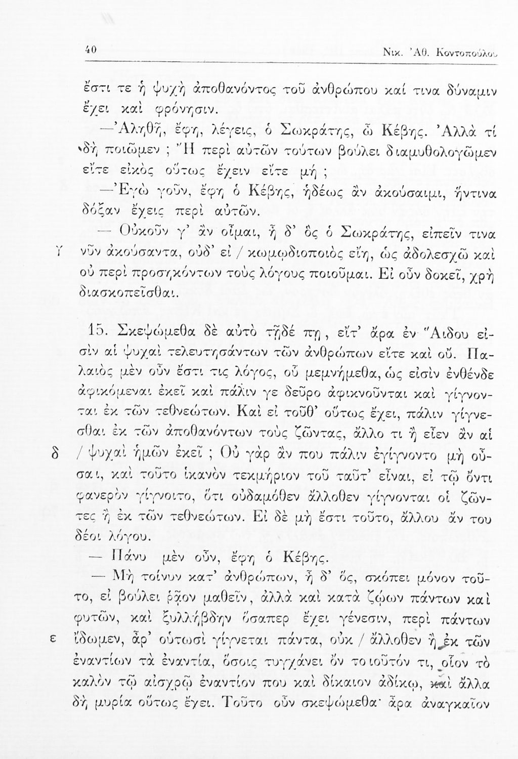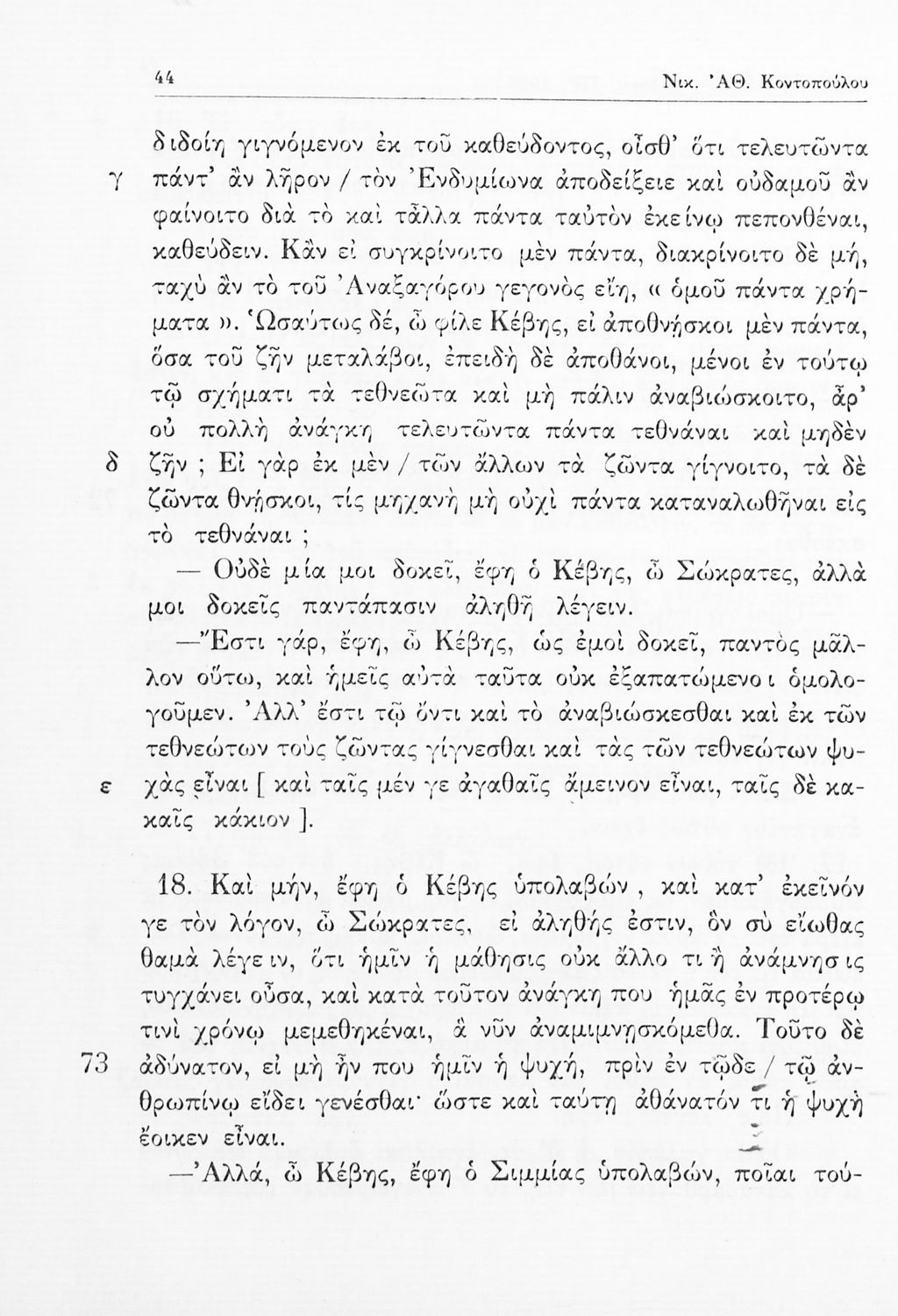 Πλάτων, Νικ. Αθ. Κοντόπουλος (σχόλια)