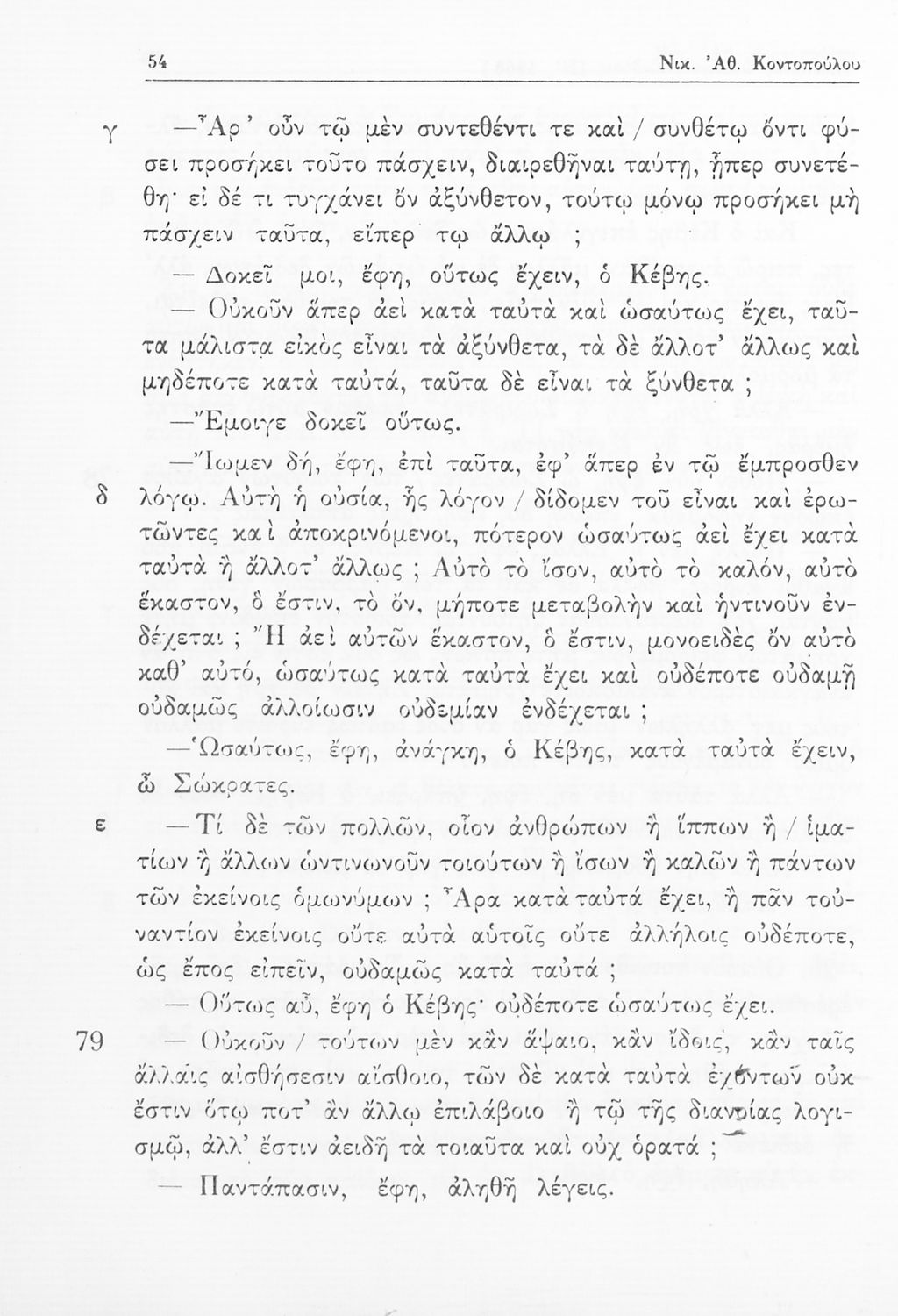 Πλάτων, Ν. Κοντόπουλος, Ν. Ζαφειρίου, Ν. Ελεόπουλος, Ε. Ελεοπούλου (σχόλια)
