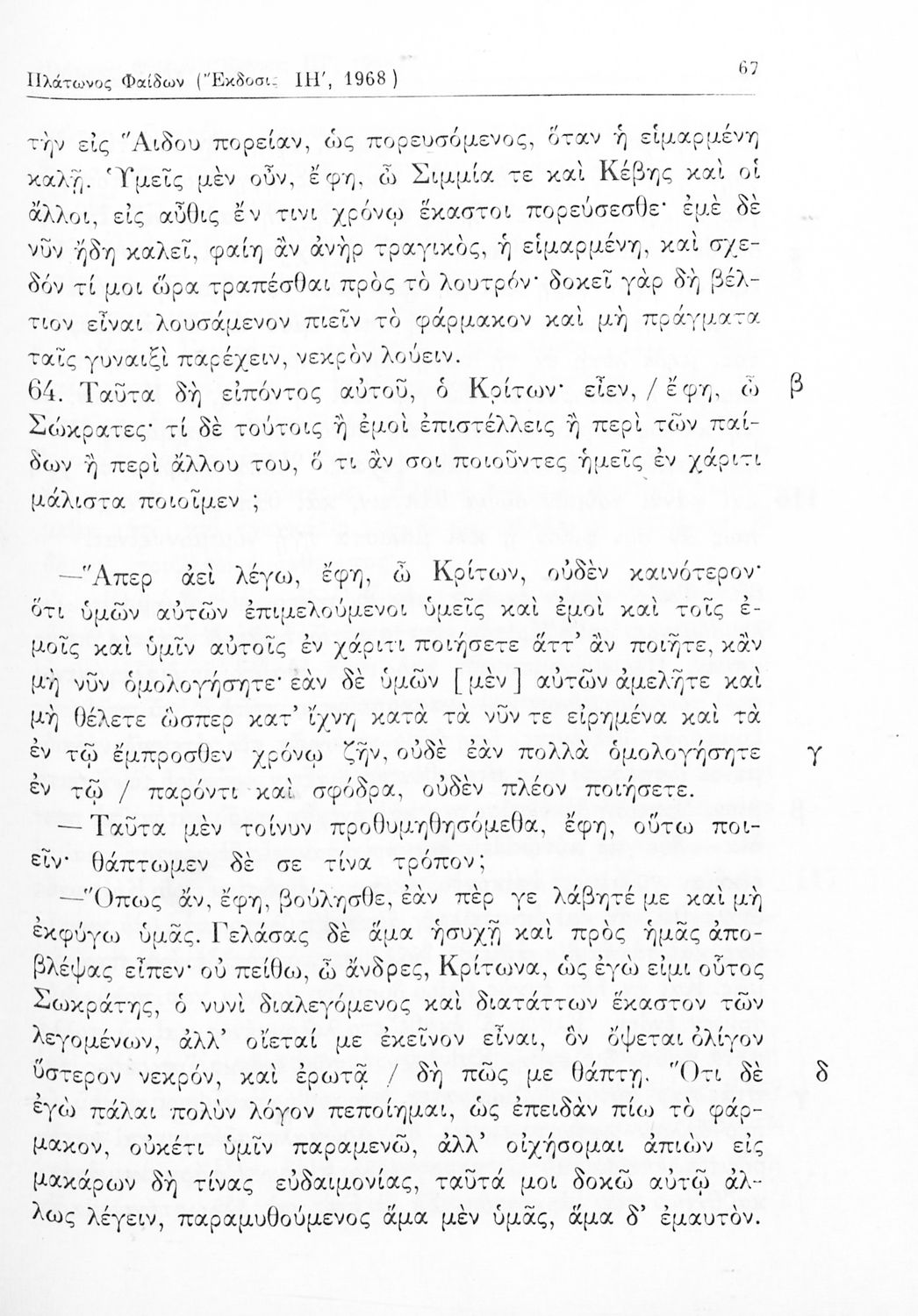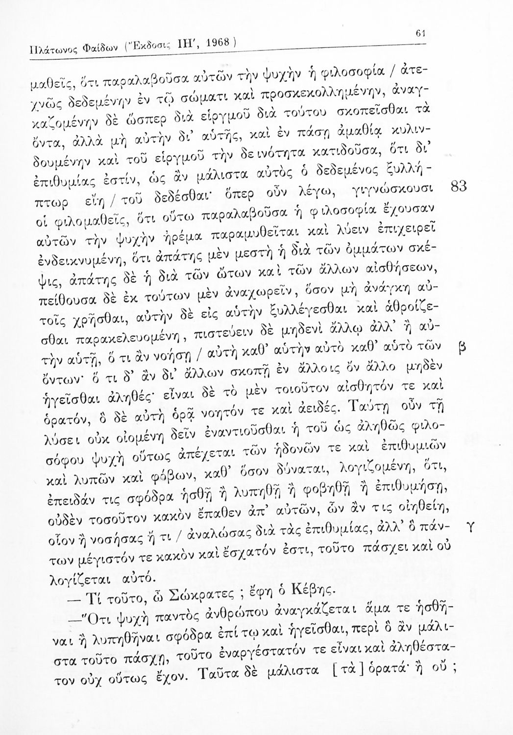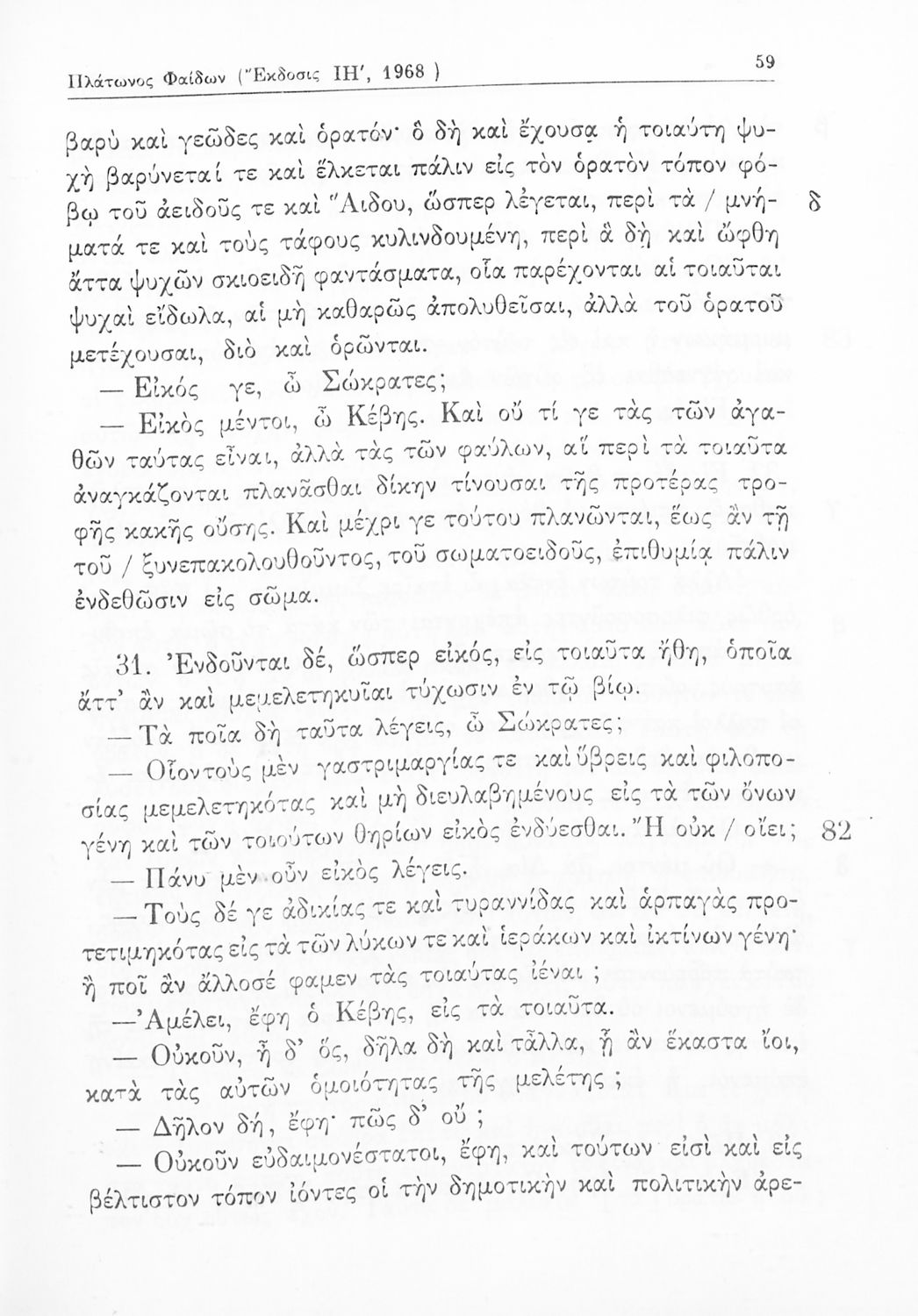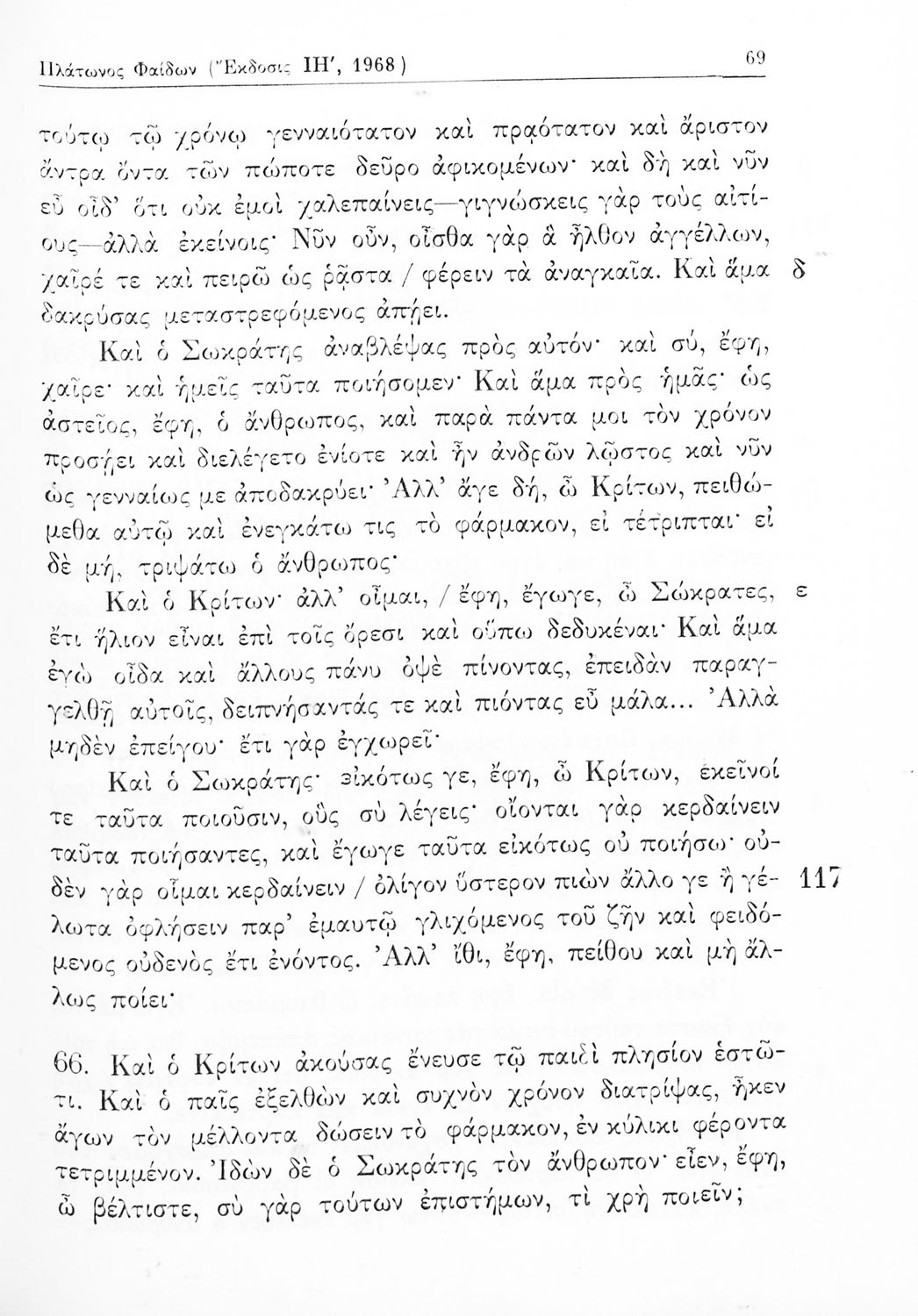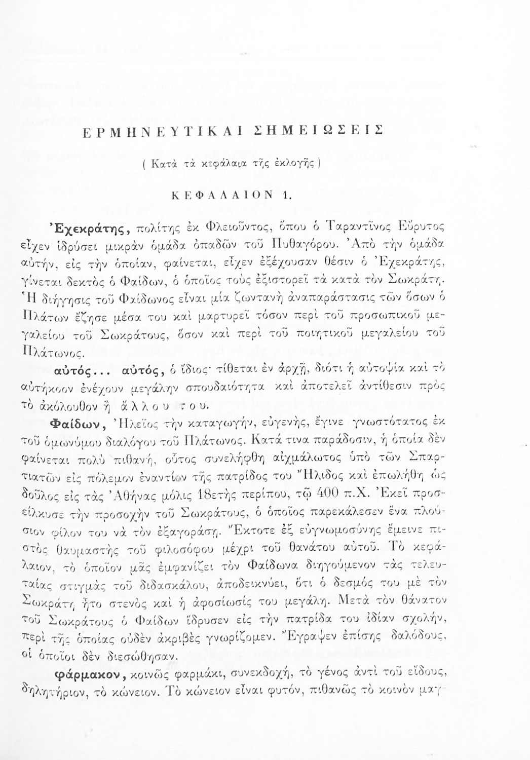 Σχολικό εγχειρίδιο Αρχαίων Ελληνικών Γυμνασίου που περιλαμβάνει αποσπάσματα από τους διαλόγους του Πλάτωνα, ερμηνευτικά και πραγματολογικά σχόλια και λεξιλογικές παρατηρήσεις.