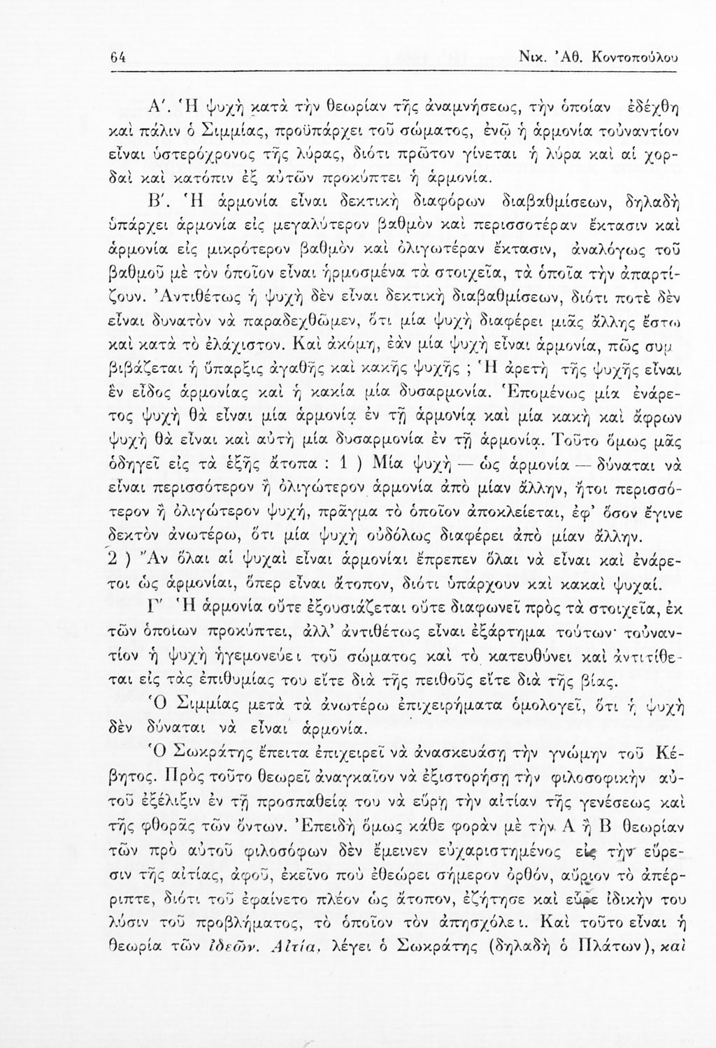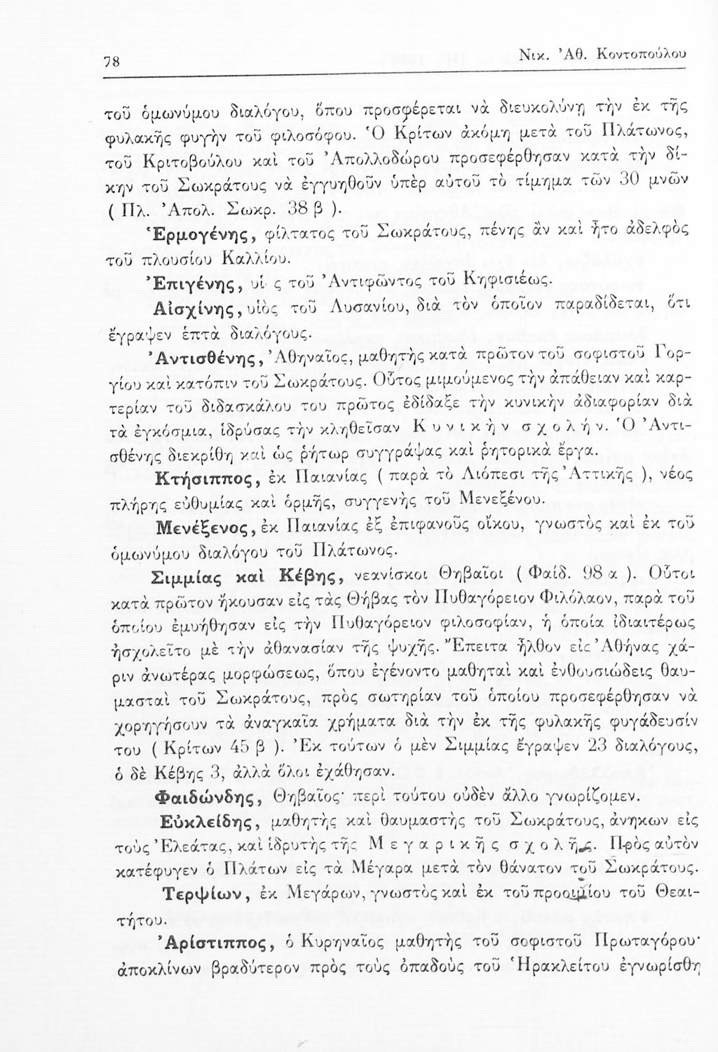 Πλάτων, Νικ. Αθ. Κοντόπουλος (σχόλια)