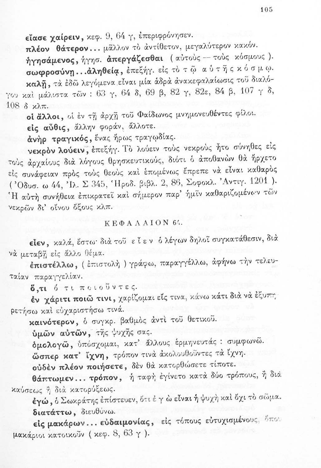 Σχολικό εγχειρίδιο Αρχαίων Ελληνικών της ΣΤ ' Γυμνασίου. Το βιβλίο παρουσιάζει δύο έργα του Πλάτωνα, Φαίδων και Πρωταγόρας. Το βιβλίο αρχίζει με μια εισαγωγή στην εποχή και το έργο του Πλάτωνα. Στη συνέχεια παρουσιάζει τα κείμενα από το πρωτότυπο και ολοκληρώνει με λεξιλογικές και ερμηνευτικές αναλύσεις