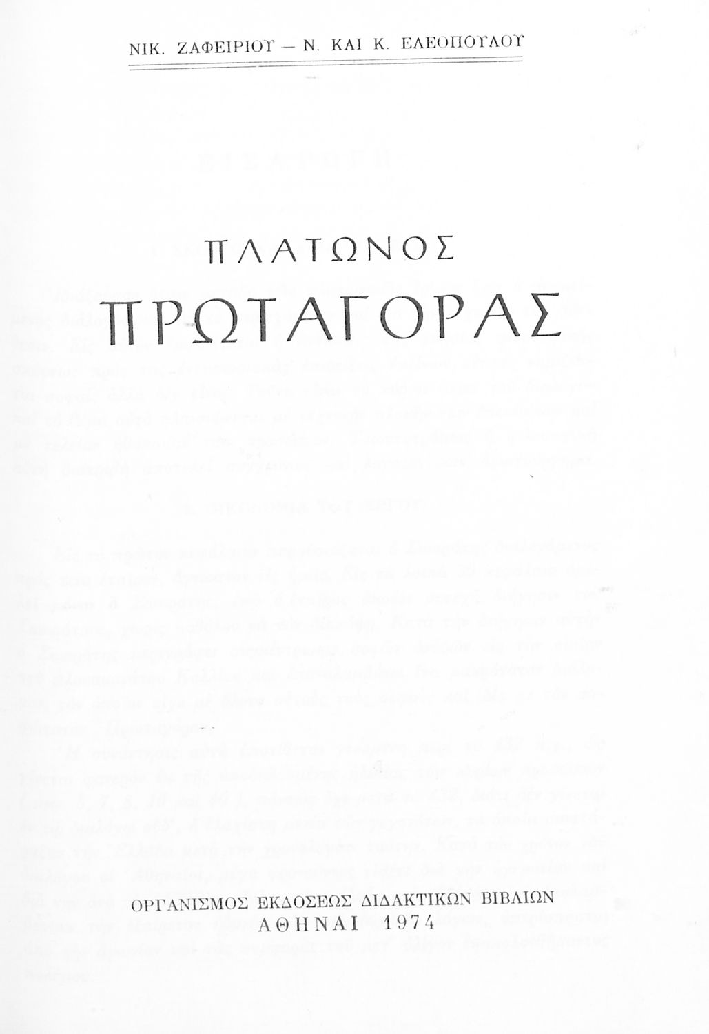 Συγγραφέας: Πλάτων, Ν. Κοντόπουλος, Ν. Ζαφειρίου, Ν. Ελεόπουλος, Κ. Ελεοπούλου (εισαγωγή, σχόλια)