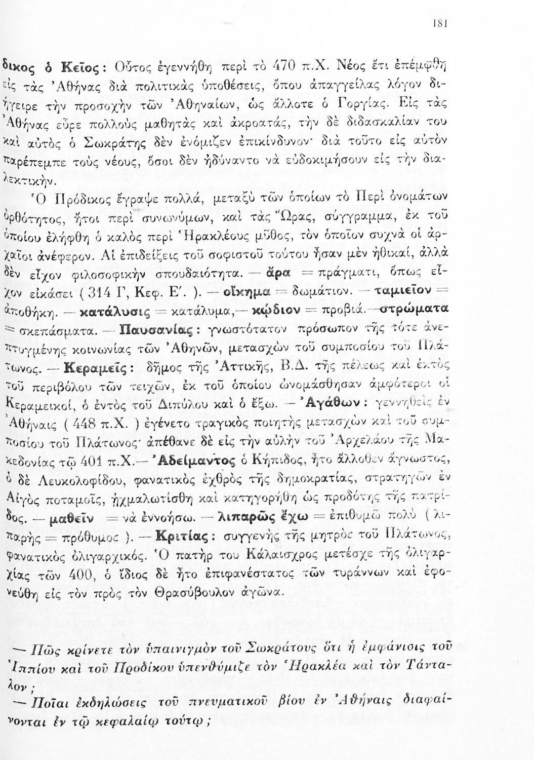 Σχολικό εγχειρίδιο για τις Τάξεις του Γυμνασίου για το μάθημα των Αρχαίων Ελληνικών. Περιλαμβάνει αποσπάσματα του αρχαίου κειμένου από τους διαλόγους του Πλάτωνα. Περιέχει μετάφραση ερμηνευτικά, πραγματολογικά