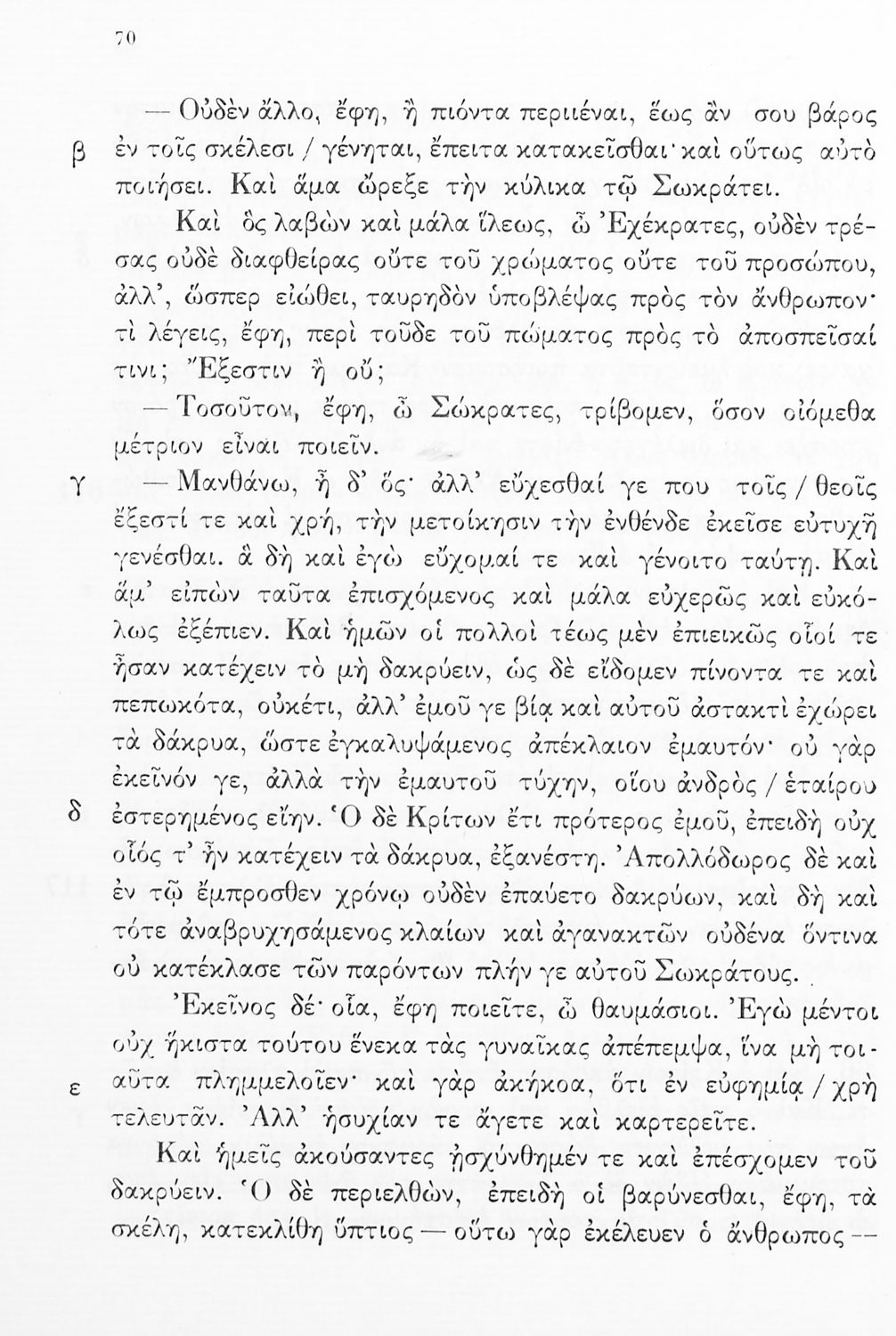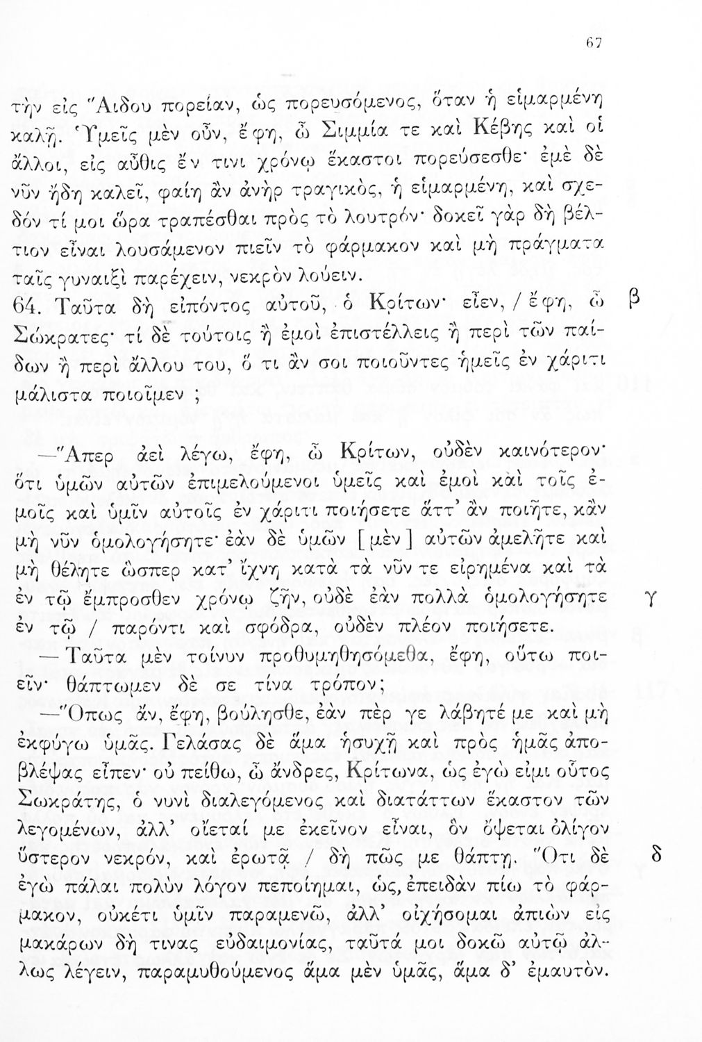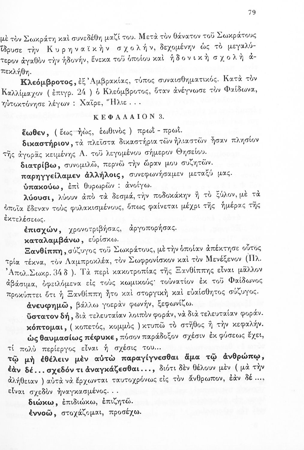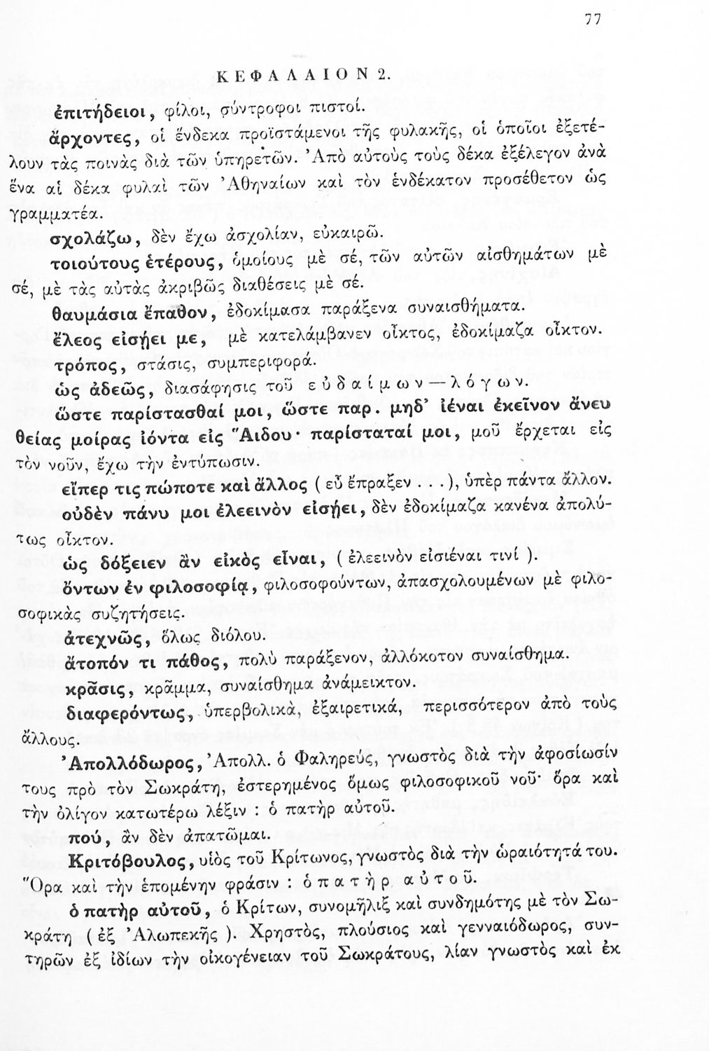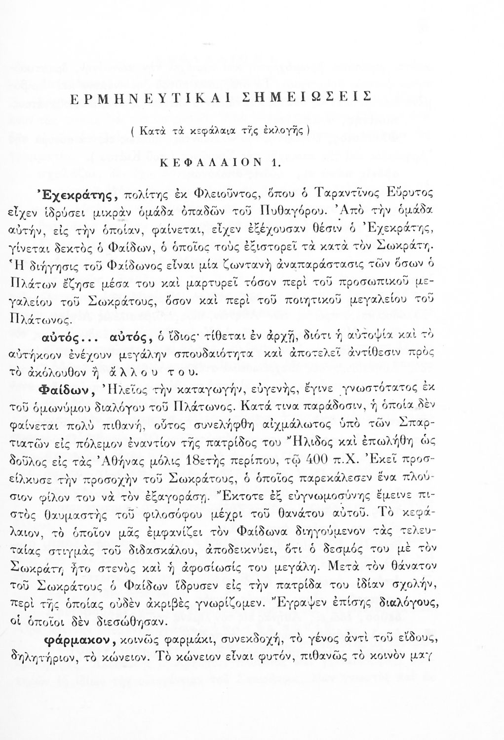 Σχολικό εγχειρίδιο για τις Τάξεις του Γυμνασίου για το μάθημα των Αρχαίων Ελληνικών. Περιλαμβάνει αποσπάσματα του αρχαίου κειμένου από τους διαλόγους του Πλάτωνα. Περιέχει μετάφραση ερμηνευτικά, πραγματολογικά
