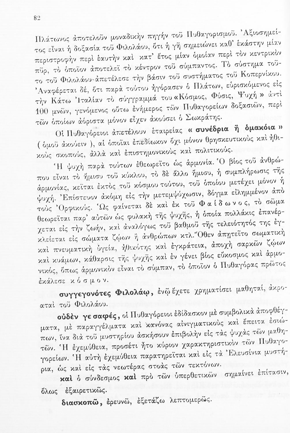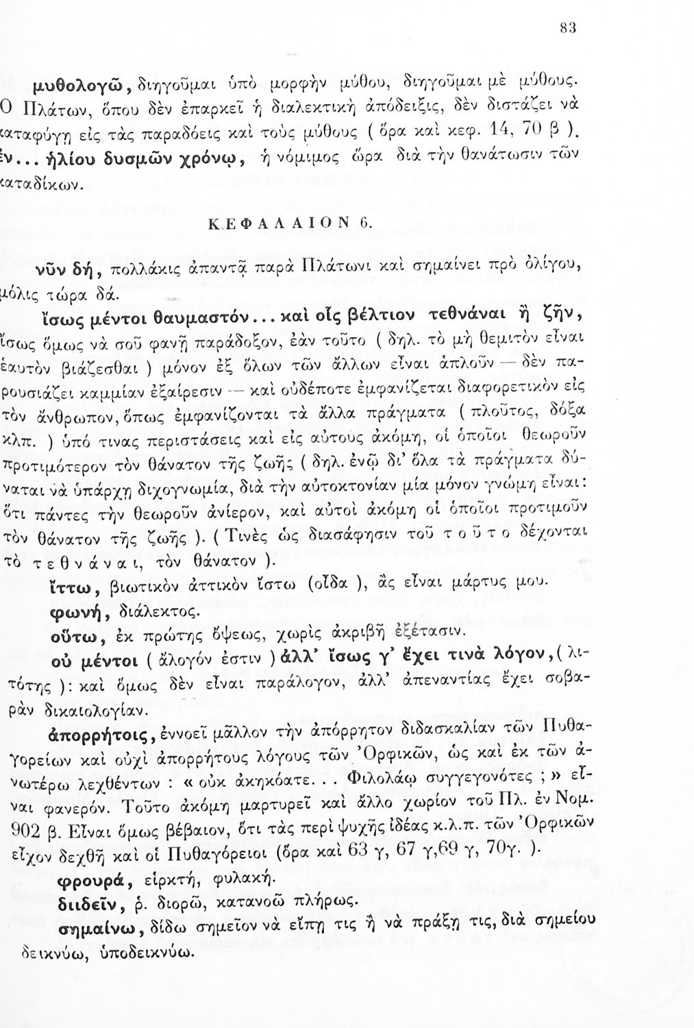 Σχολικό εγχειρίδιο Αρχαίων Ελληνικών της ΣΤ ' Γυμνασίου. Το βιβλίο παρουσιάζει δύο έργα του Πλάτωνα, Φαίδων και Πρωταγόρας. Το βιβλίο αρχίζει με μια εισαγωγή στην εποχή και το έργο του Πλάτωνα. Στη συνέχεια παρουσιάζει τα κείμενα από το πρωτότυπο και ολοκληρώνει με λεξιλογικές και ερμηνευτικές αναλύσεις