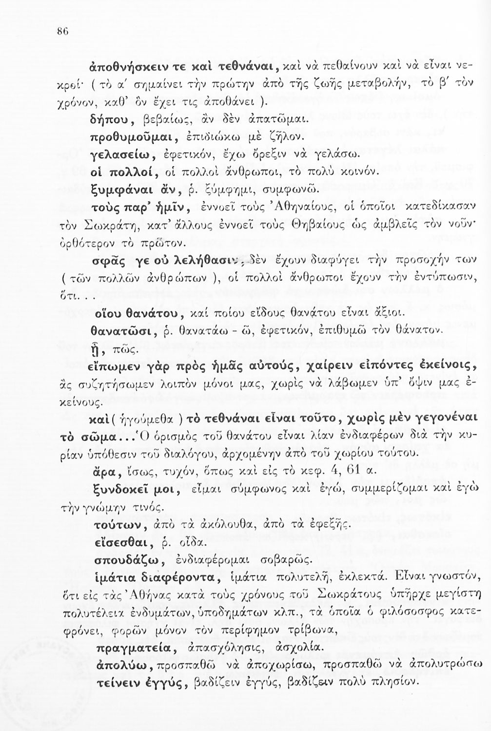 Σχολικό εγχειρίδιο για τις Τάξεις του Γυμνασίου για το μάθημα των Αρχαίων Ελληνικών. Περιλαμβάνει αποσπάσματα του αρχαίου κειμένου από τους διαλόγους του Πλάτωνα. Περιέχει μετάφραση ερμηνευτικά, πραγματολογικά