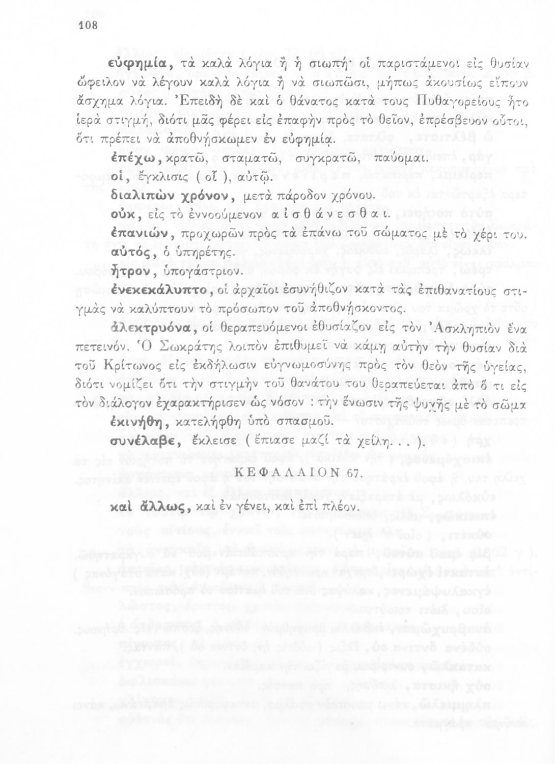 Σχολικό εγχειρίδιο Αρχαίων Ελληνικών Γυμνασίου που περιλαμβάνει αποσπάσματα από τους διαλόγους του Πλάτωνα, ερμηνευτικά και πραγματολογικά σχόλια και λεξιλογικές παρατηρήσεις.