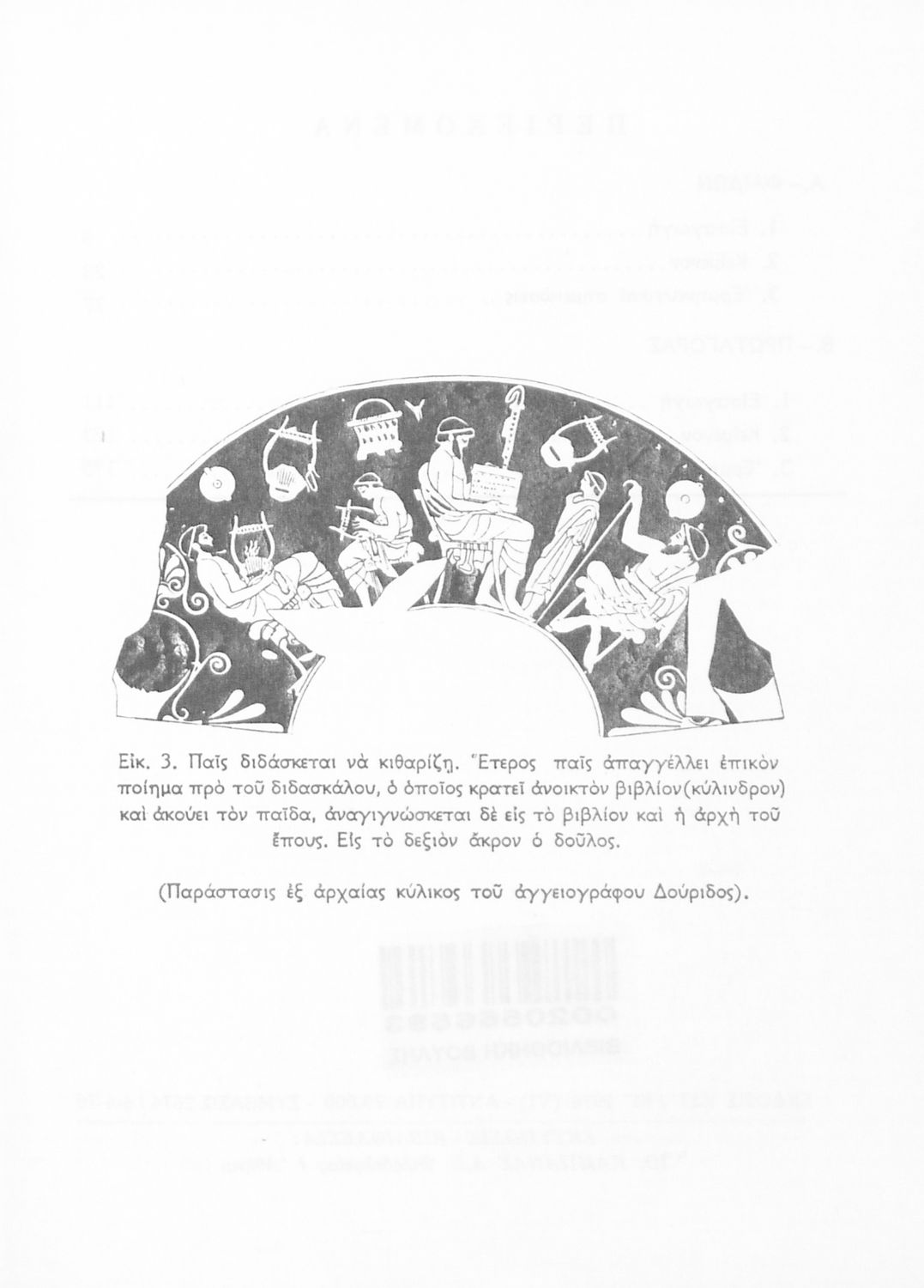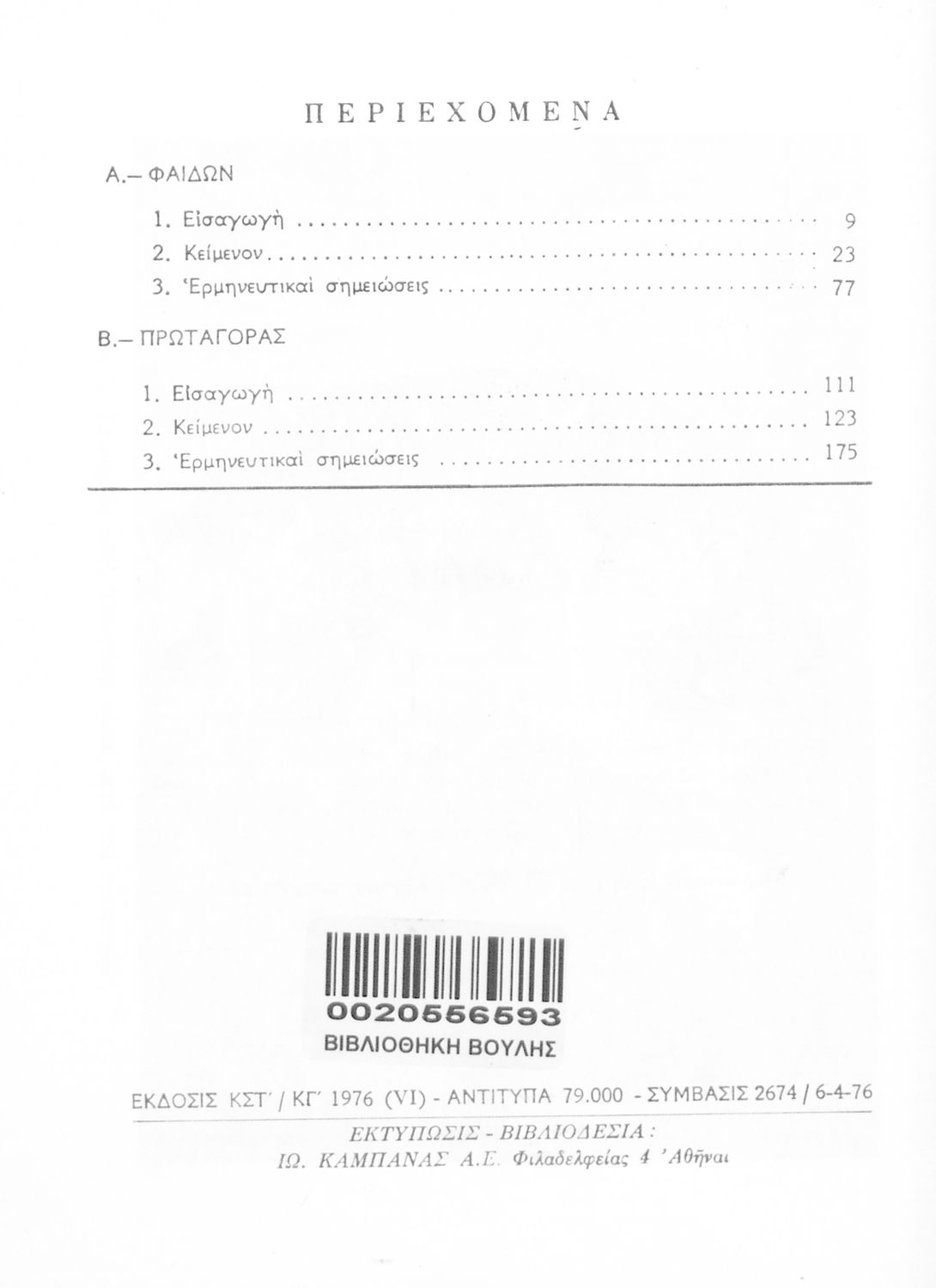 LDR 01261 2200217 4500 035 ## _a03-20556593 040 ## _aΒιβλιοθήκη της Βουλής των Ελλήνων 041 ## _ael 100 ## _aΠλάτων _aΝ. Κοντόπουλος _aΝ. Ζαφειρίου _aΝ. Ελεόπουλος _aΚ. Ελεοπούλου (εισαγωγή _aσχόλια) 110 ## _a20556593 245 0# _aΠλάτωνος Διάλογοι – Φαίδων, Πρωταγόρας Γ ́ Λυκείου 250 ## _a26η Έκδοση 260 ## _aΑθήνα _bΟργανισμός Εκδόσεως Διδακτικών Βιβλίων _c1976 300 ## _a212 520 ## _aΣχολικό εγχειρίδιο Αρχαίων Ελληνικών της Γ' Λυκείου. Το βιβλίο περιέχει τα δύο έργα του Πλάτωνα, Φαίδων και Πρωταγόρας, όπου ο Σωκράτης συνομιλεί για την έννοια και ιδέες της φιλοσοφίας. 521 ## _aΓ' Λυκείου 522 ## _aΕλλάδα 546 ## _aΚαθαρεύουσα 563 ## _aΜαλακό Εξώφυλλο 583 ## _a2674/6-4-1976 _c1976 650 #4 _aΑρχαία Ελλάδα _aΠλάτωνας _aΣωκράτης _aΦιλοσοφία