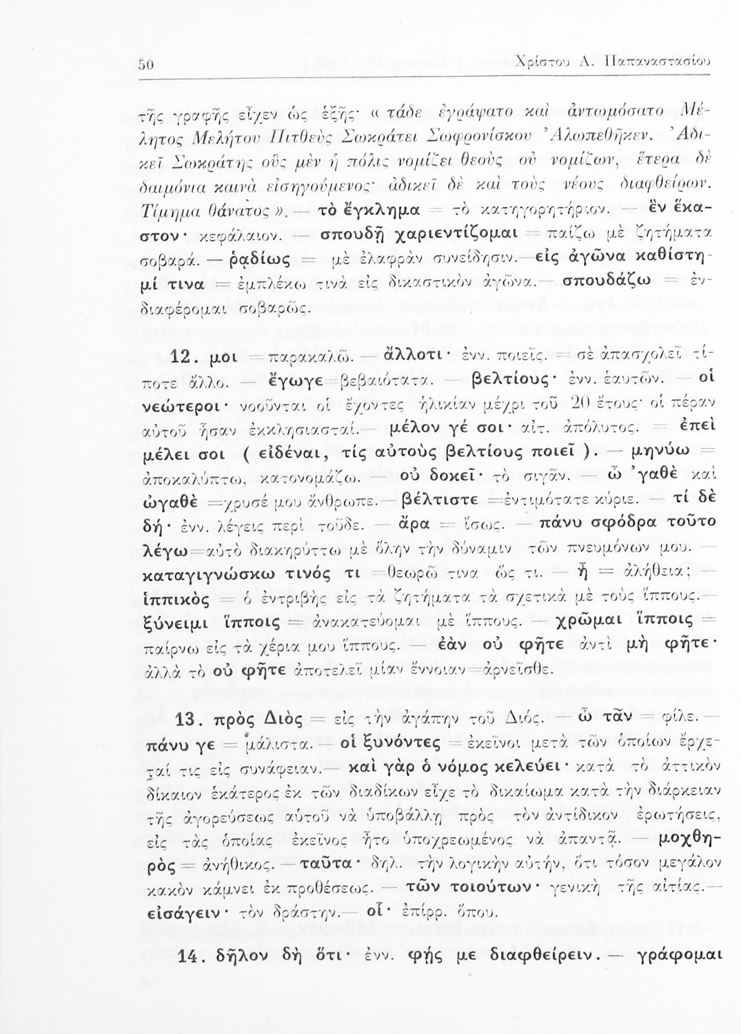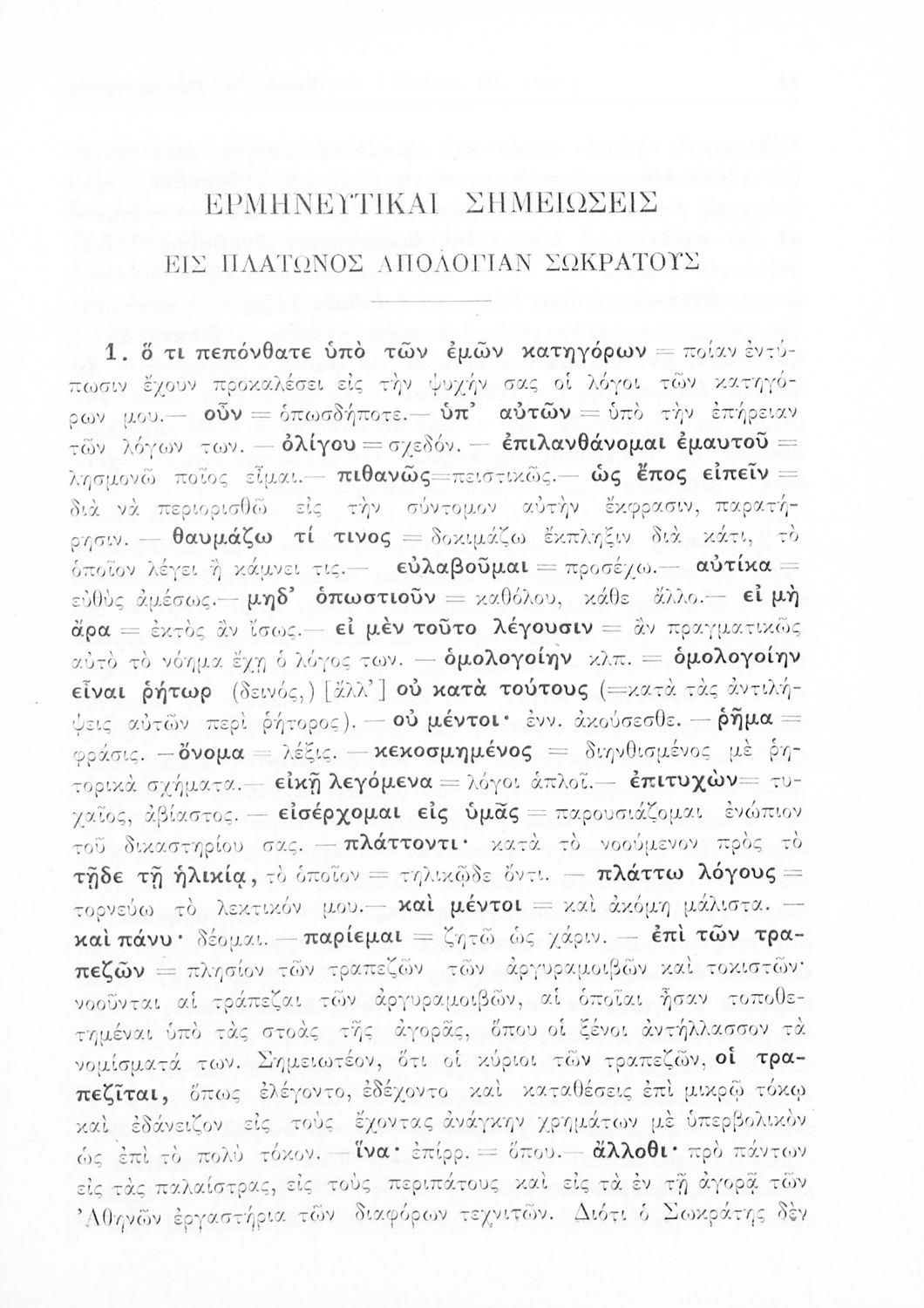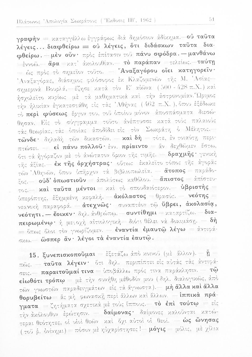 Σχολικό εγχειρίδιο Αρχαίων Ελληνικών της Ε' Γυμνασίου. Το βιβλίο περιέχει τα έργα του Πλάτωνα “Απολογία Σωκράτους” και “Κρίτων” από το πρωτότυπο. Στο δεύτερο μέρος υπάρχουν ερμηνευτικές και λεξιλογικές αναλύσεις των δύο έργων.