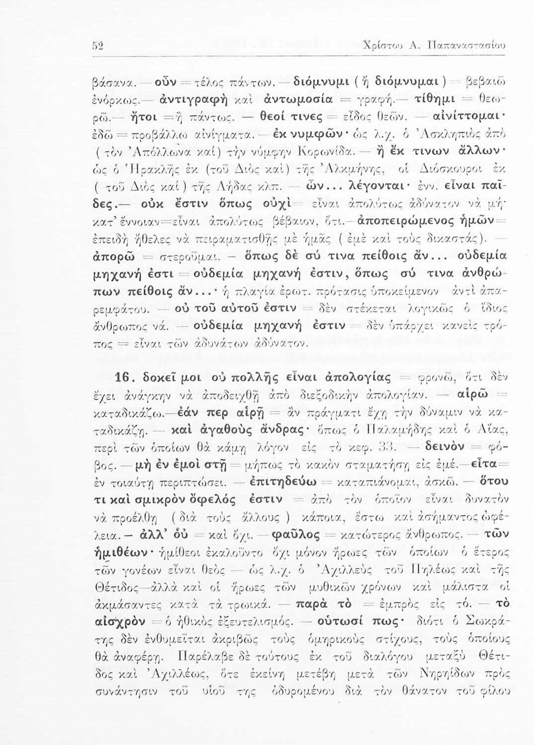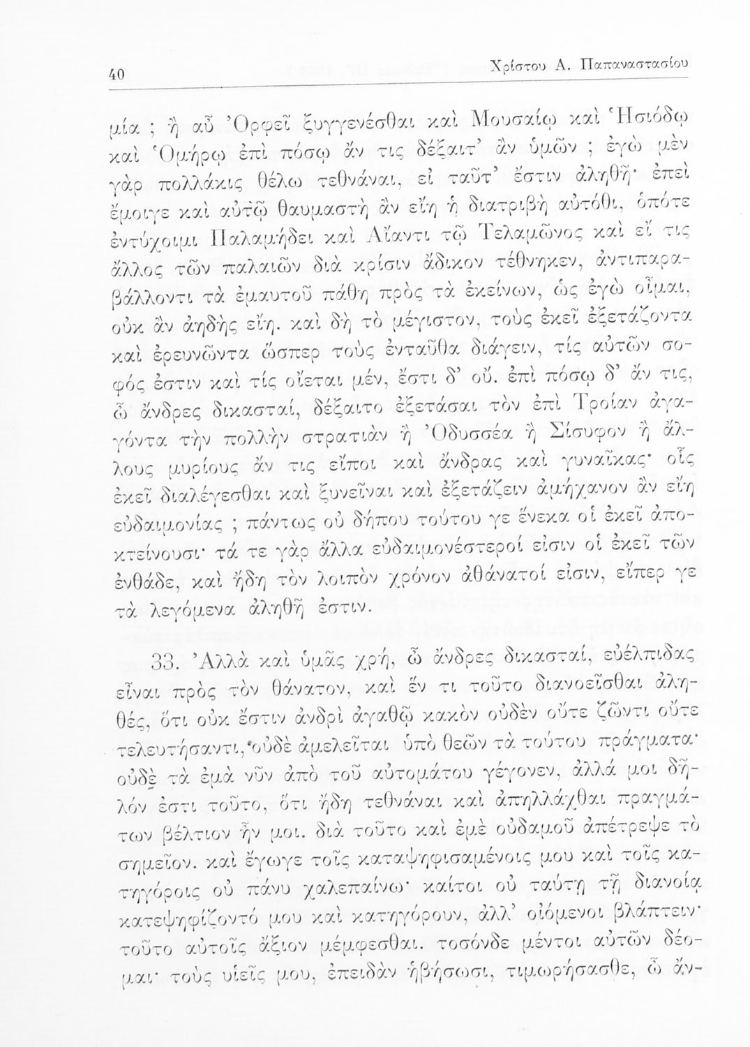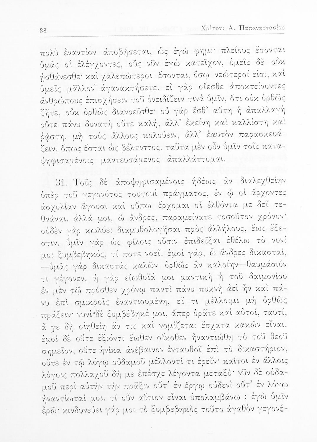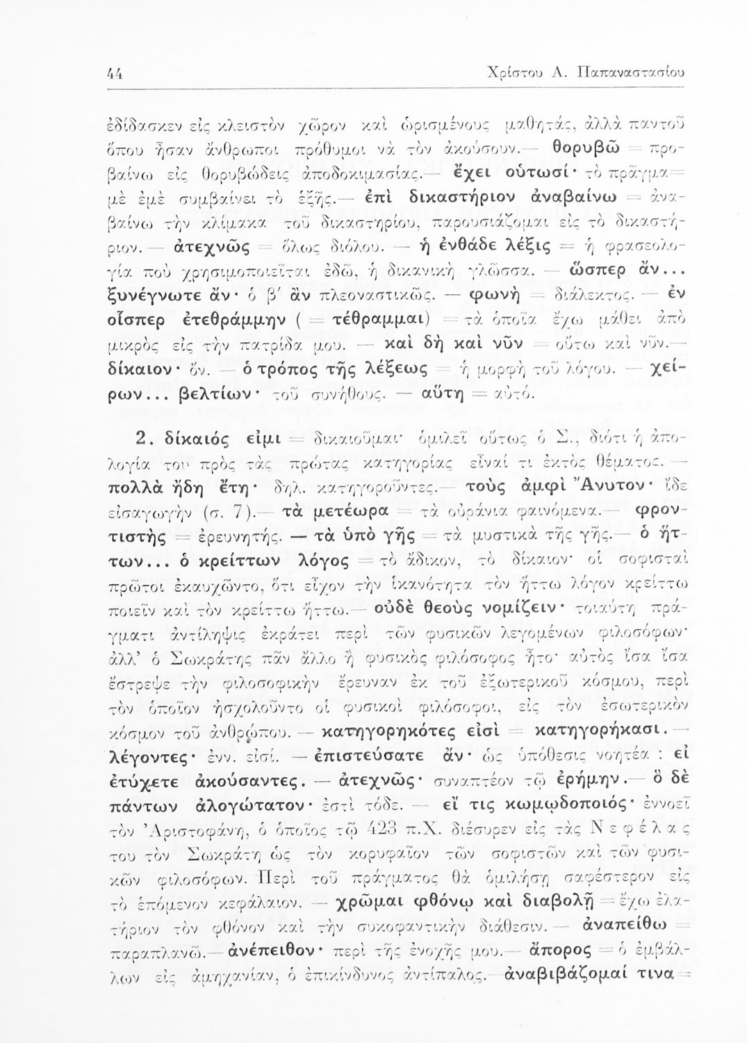 Σχολικό εγχειρίδιο Αρχαίων Ελληνικών της Ε' Γυμνασίου. Το βιβλίο περιέχει τα έργα του Πλάτωνα “Απολογία Σωκράτους” και “Κρίτων” από το πρωτότυπο. Στο δεύτερο μέρος υπάρχουν ερμηνευτικές και λεξιλογικές αναλύσεις των δύο έργων.