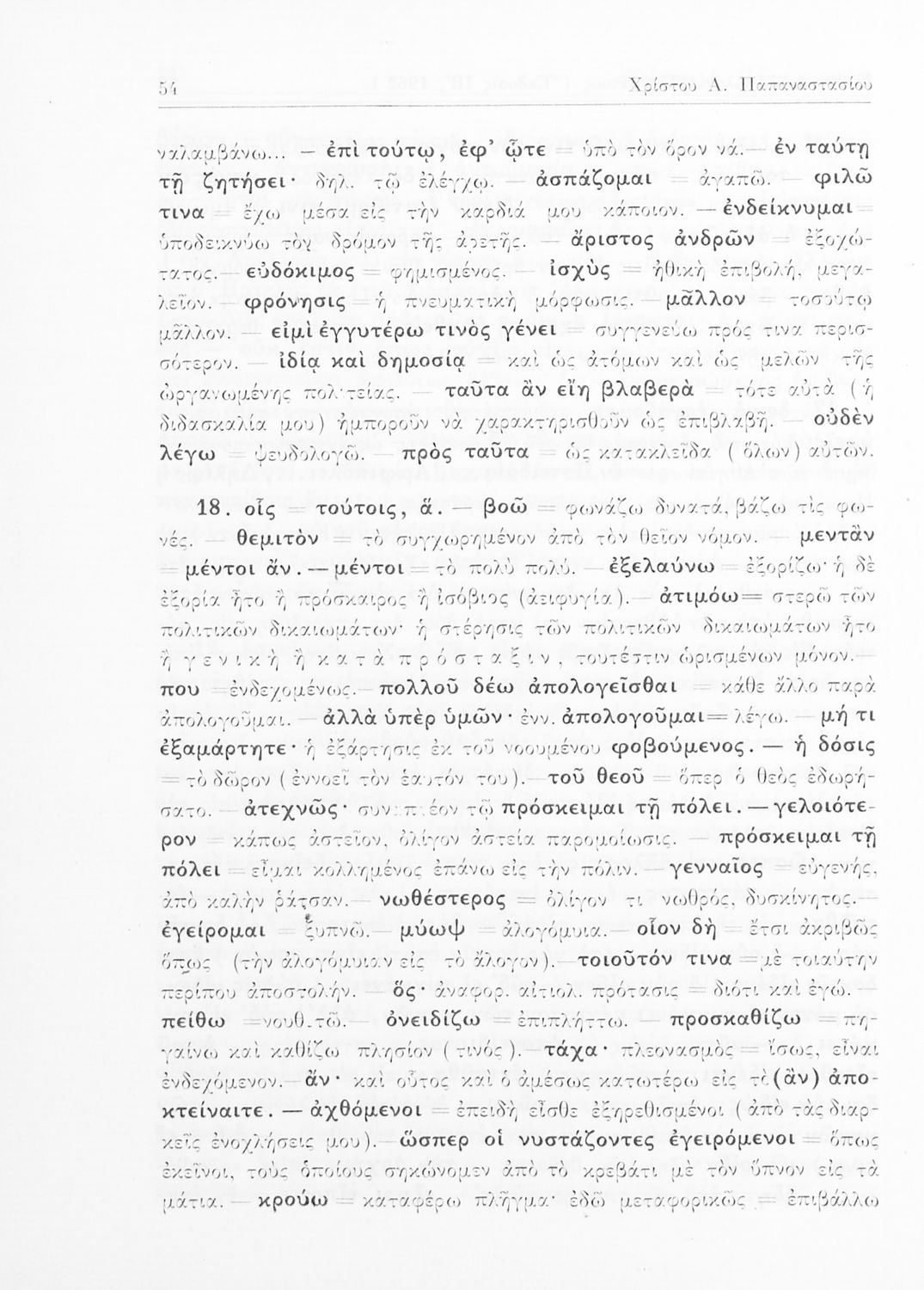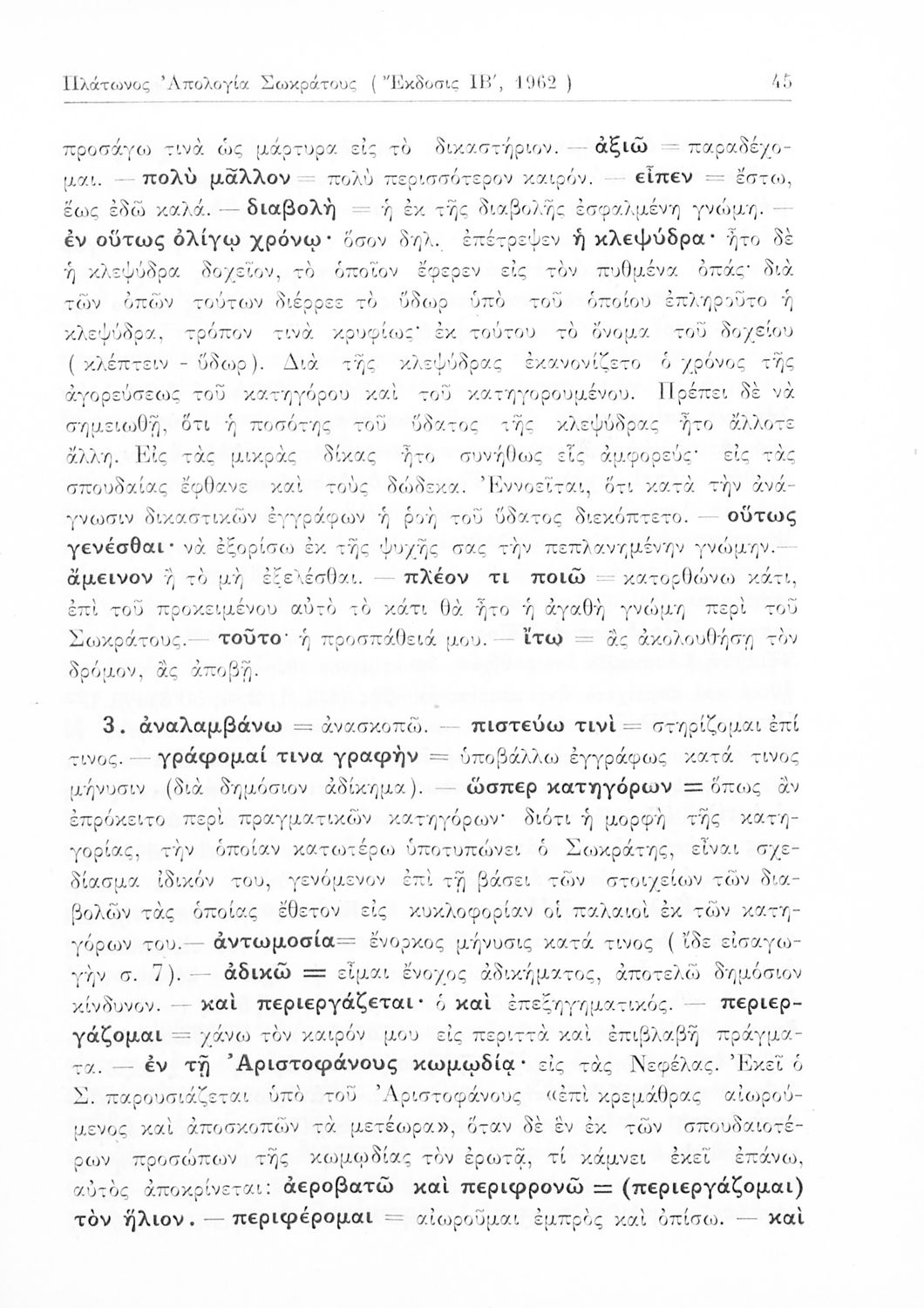 Βαθμίδα εκπαίδευσης: Δευτεροβάθμια Τάξη: Ε' Γυμνασίου Μάθημα: Αρχαία Ελληνικά Γλώσσα: Καθαρεύουσα Παρουσίαση περιεχομένου: Σχολικό εγχειρίδιο Αρχαίων Ελληνικών της Ε' Γυμνασίου. Το βιβλίο περιέχει τα έργα του Πλάτωνα “Απολογία Σωκράτους” και “Κρίτων” από το πρωτότυπο. Στο δεύτερο μέρος υπάρχουν ερμηνευτικές και λεξιλογικές αναλύσεις των δύο έργων. |