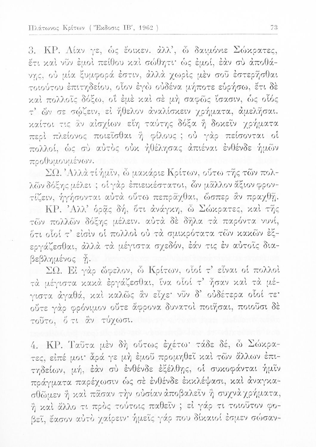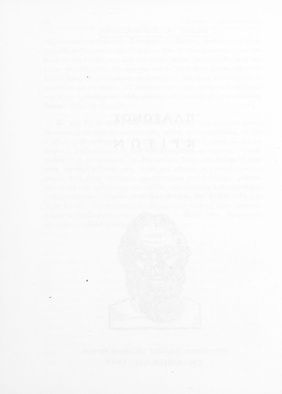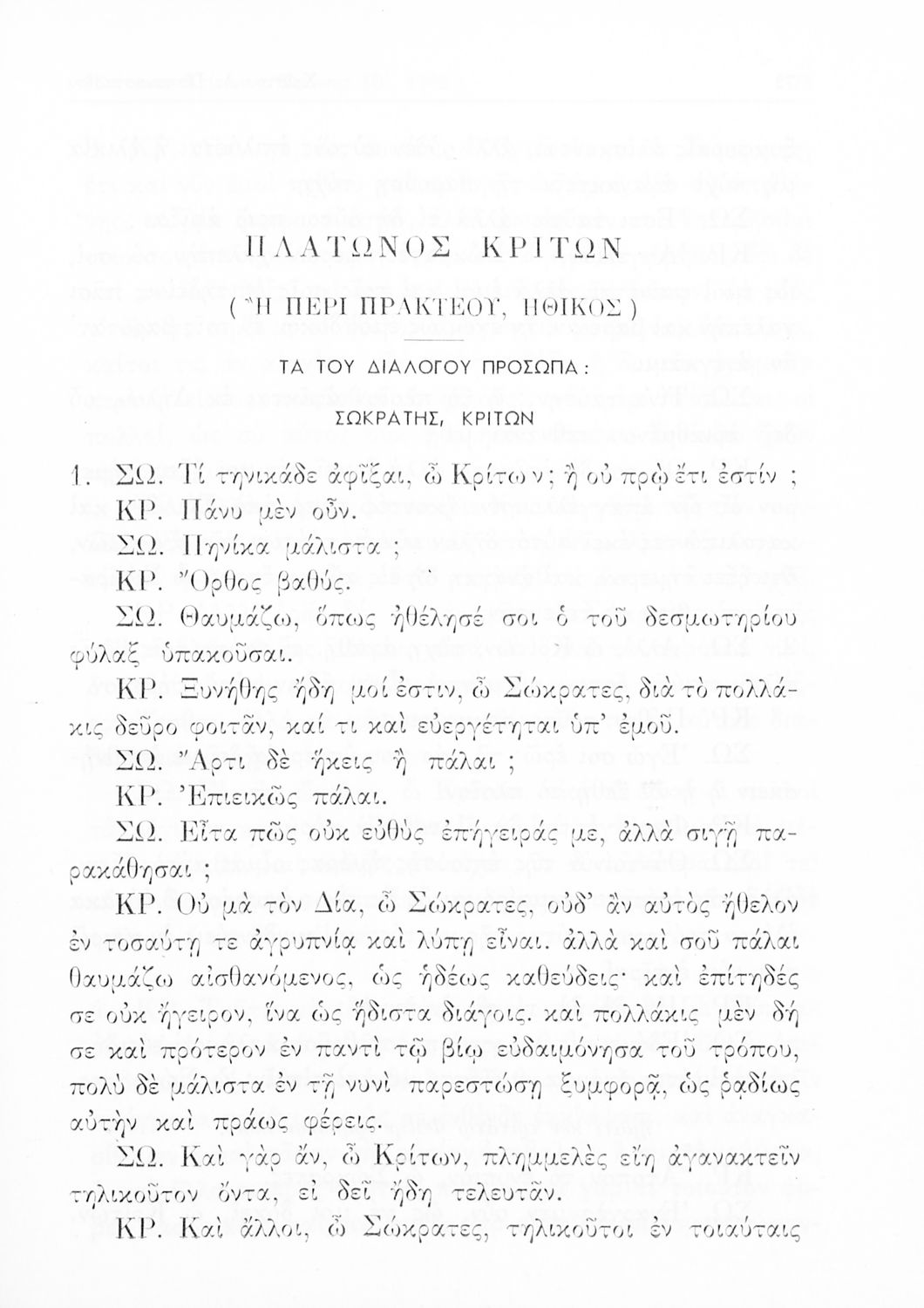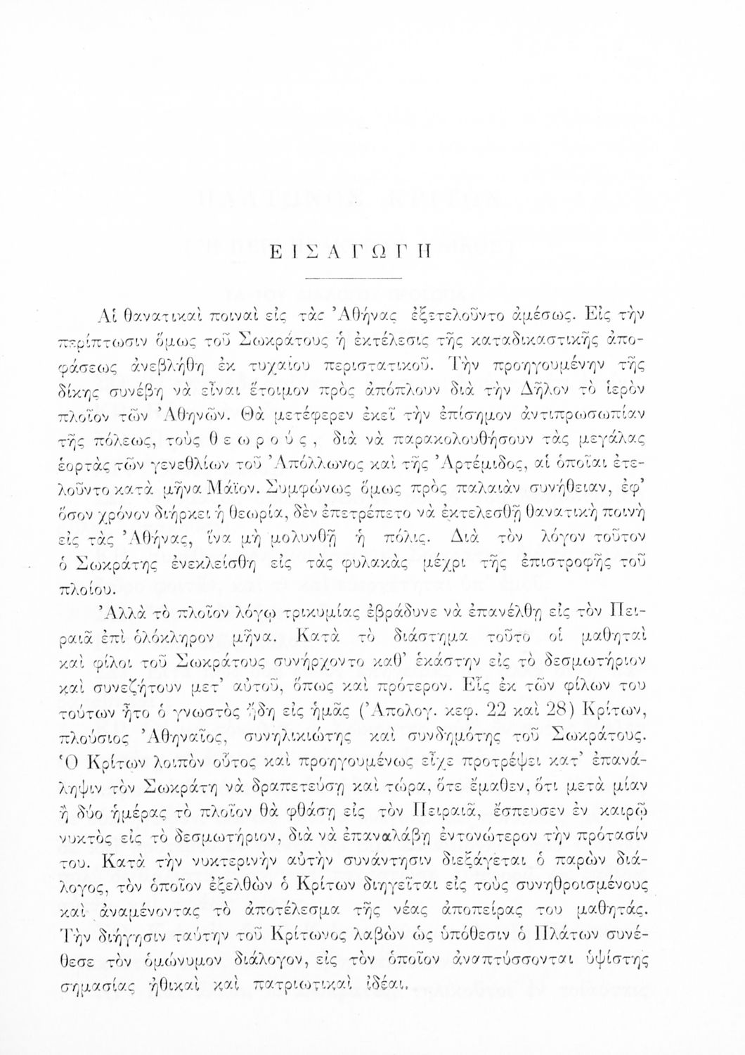 Σχολικό εγχειρίδιο Αρχαίων Ελληνικών Γ΄ Γυμνασίου που περιλαμβάνει το έργο του Πλάτωνα Κρίτων, εισαγωγή, μετάφραση και ερμηνευτικές παρατηρήσεις.