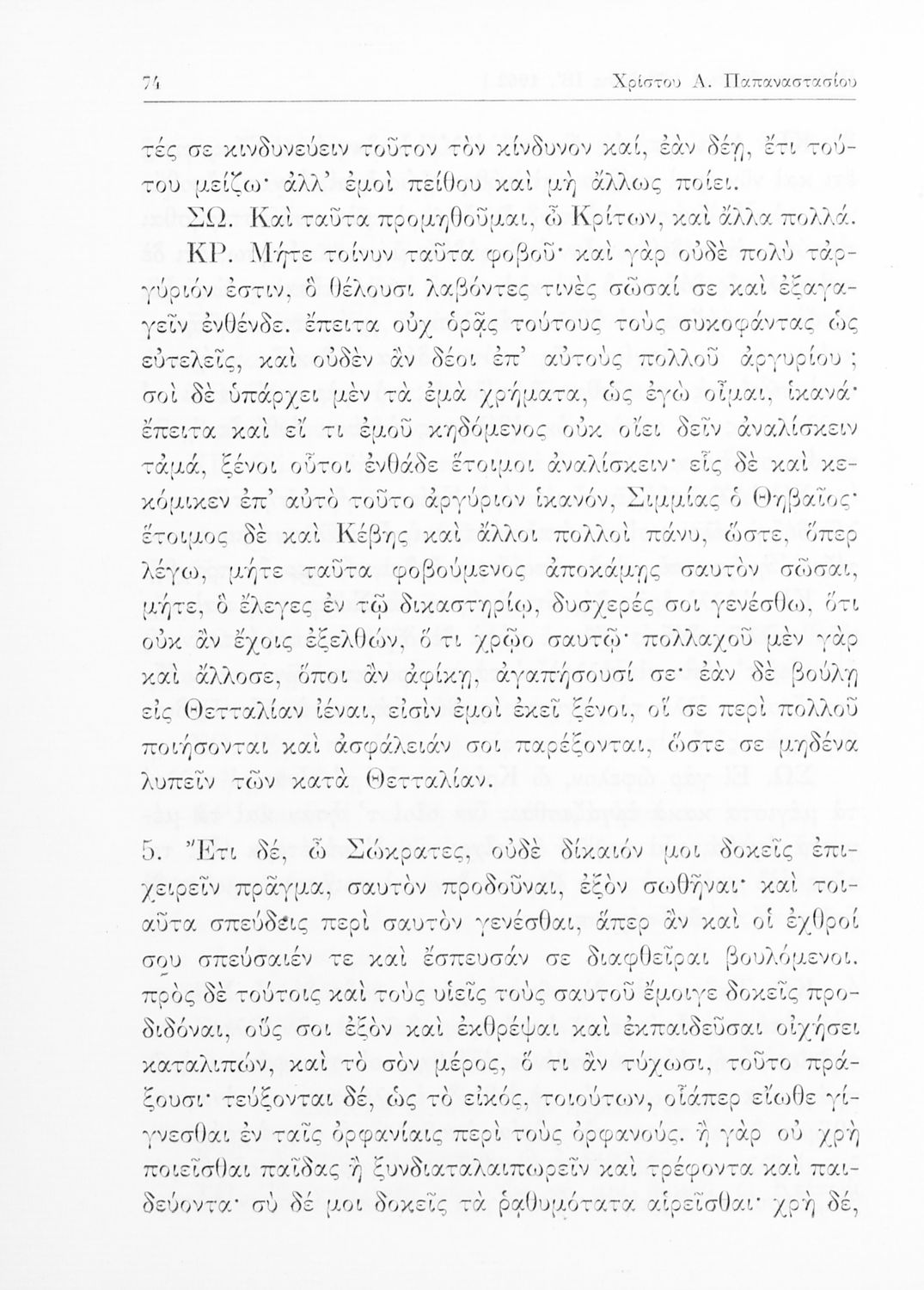 Πλάτωνος Απολογία Σωκράτους, Κρίτων Ε ́ Γυμνασίου