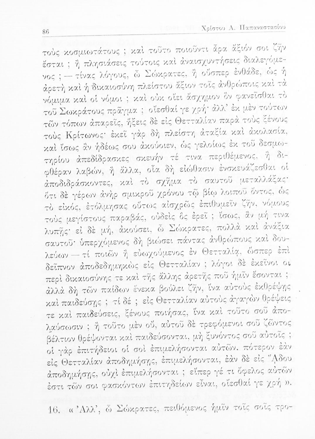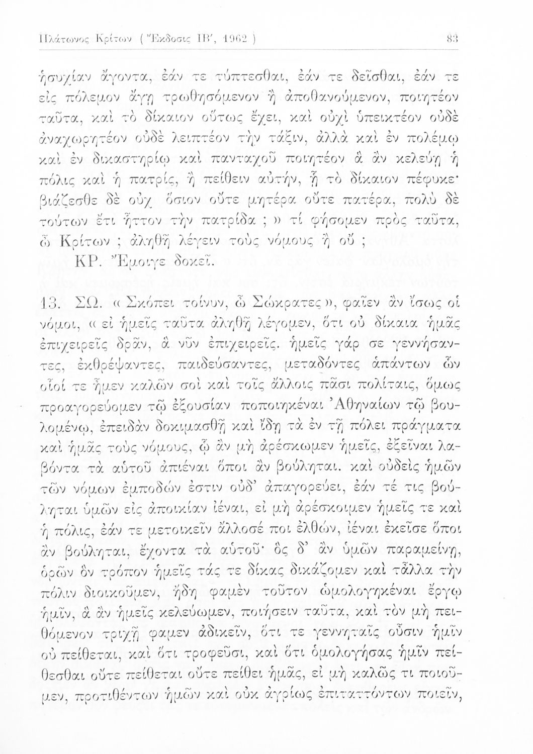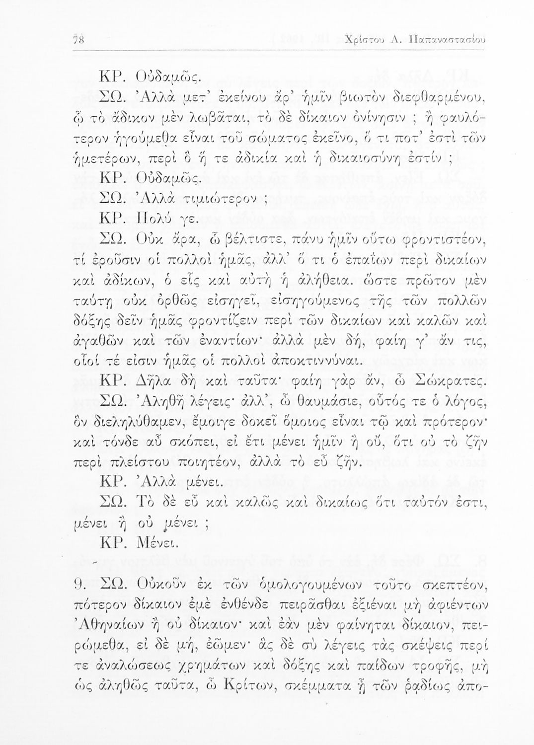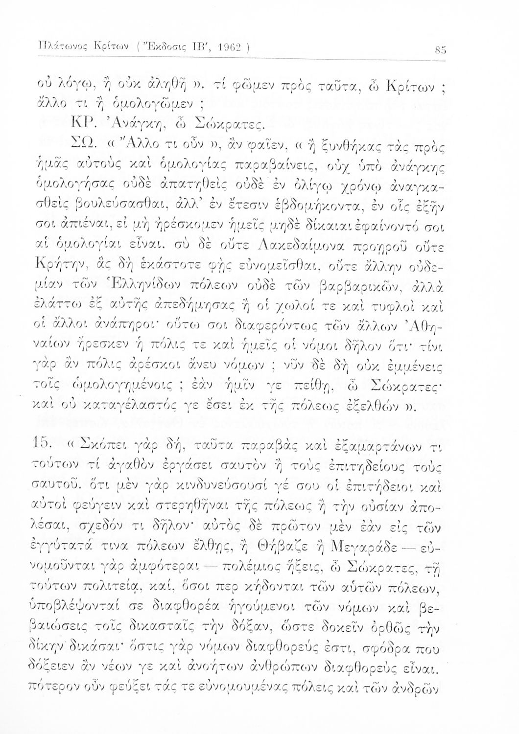 Σχολικό εγχειρίδιο Αρχαίων Ελληνικών της Ε' Γυμνασίου. Το βιβλίο περιέχει τα έργα του Πλάτωνα “Απολογία Σωκράτους” και “Κρίτων” από το πρωτότυπο. Στο δεύτερο μέρος υπάρχουν ερμηνευτικές και λεξιλογικές αναλύσεις των δύο έργων.