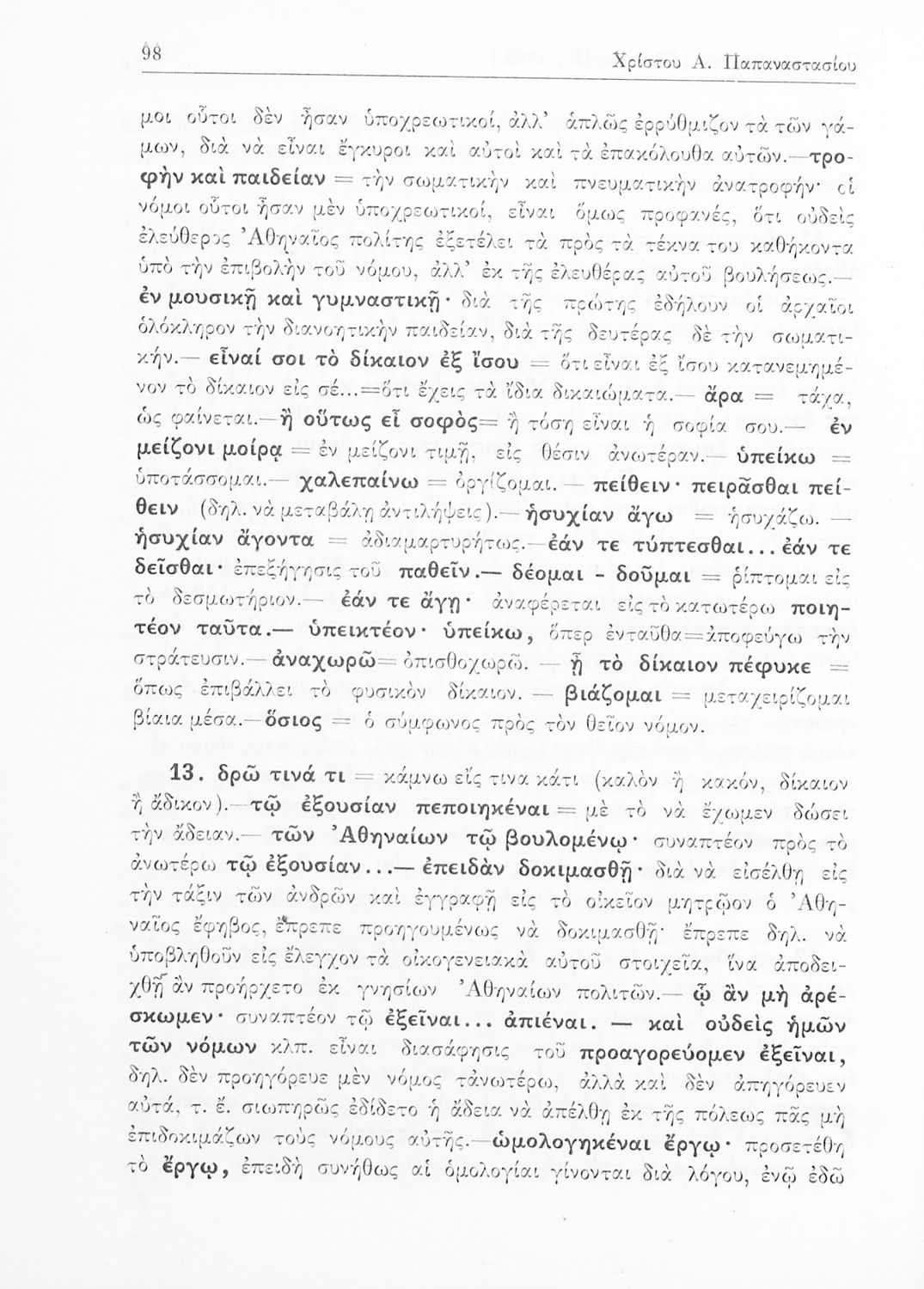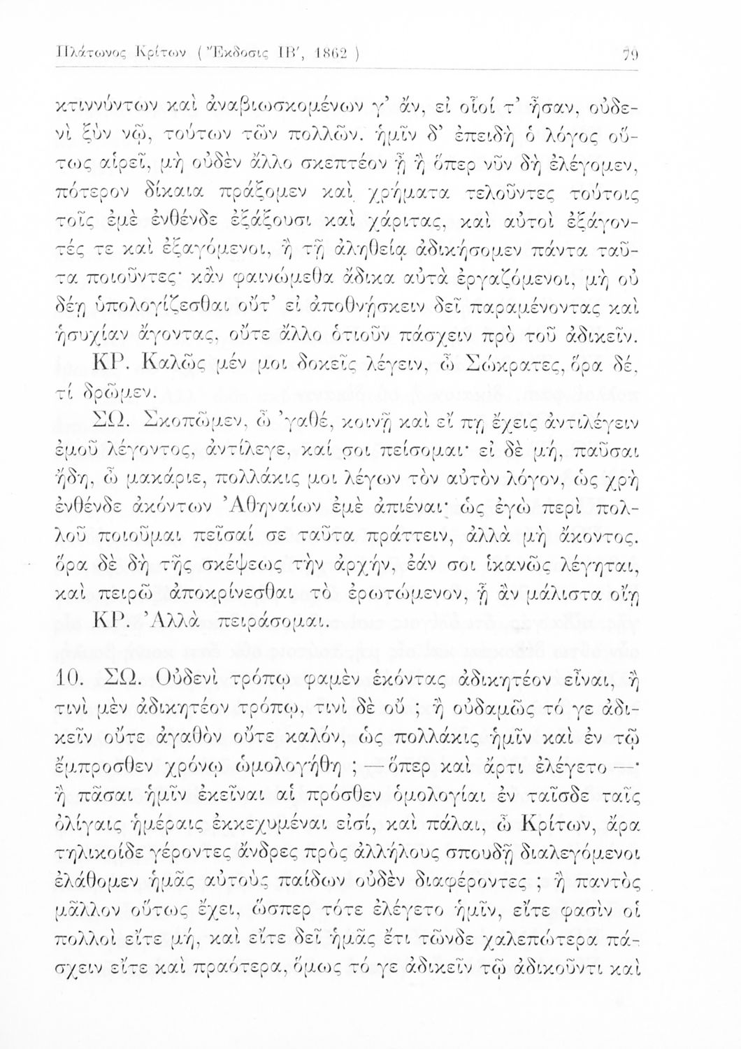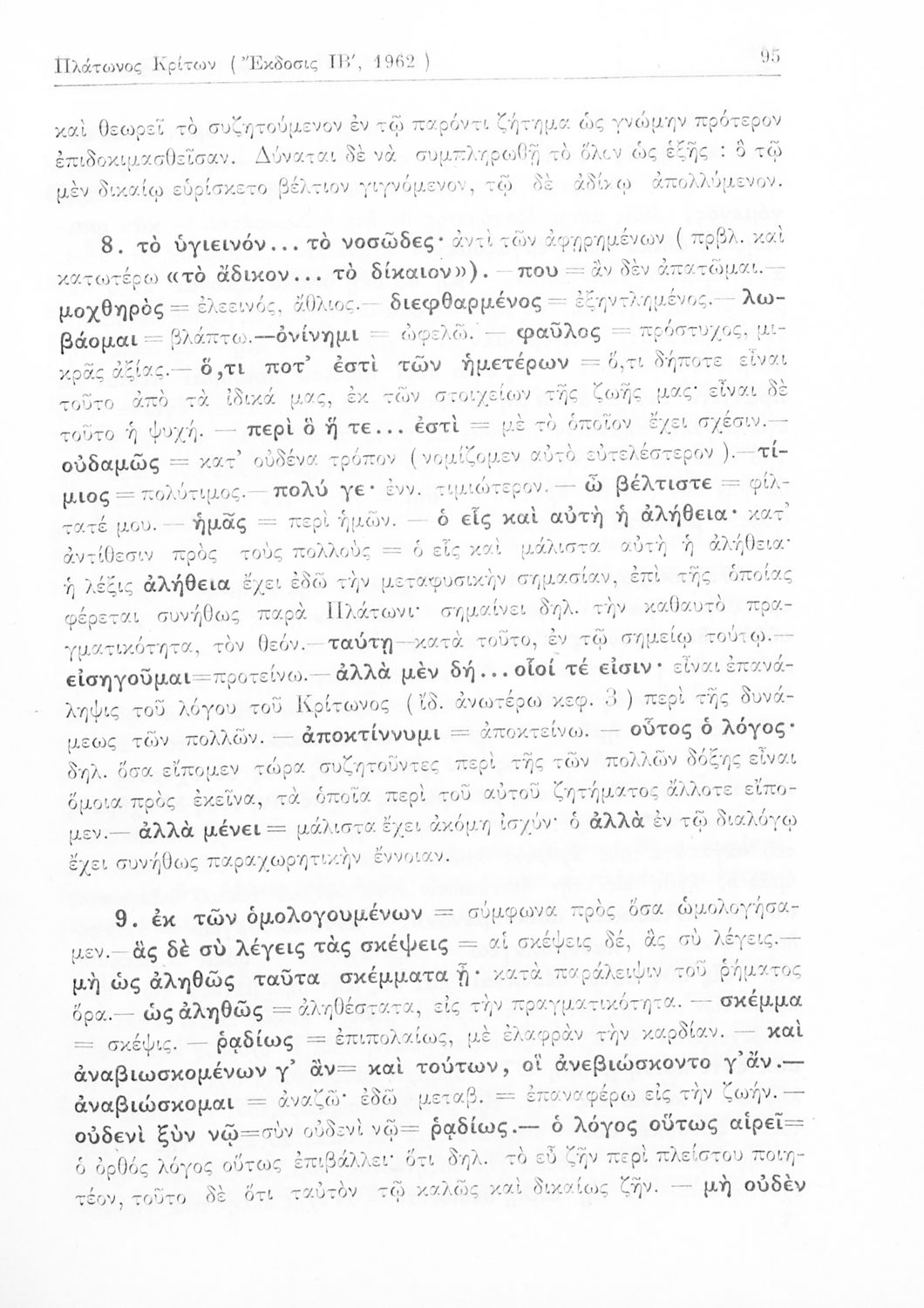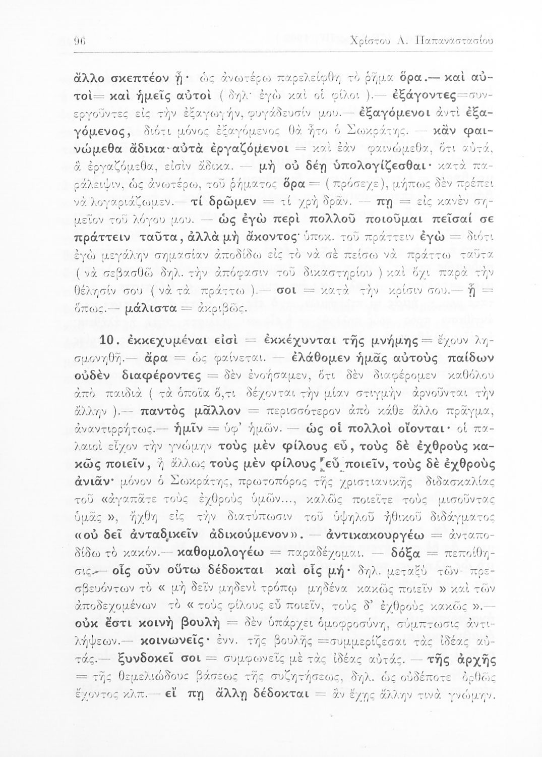 Σχολικό εγχειρίδιο Αρχαίων Ελληνικών της Ε' Γυμνασίου. Το βιβλίο περιέχει τα έργα του Πλάτωνα “Απολογία Σωκράτους” και “Κρίτων” από το πρωτότυπο. Στο δεύτερο μέρος υπάρχουν ερμηνευτικές και λεξιλογικές αναλύσεις των δύο έργων.