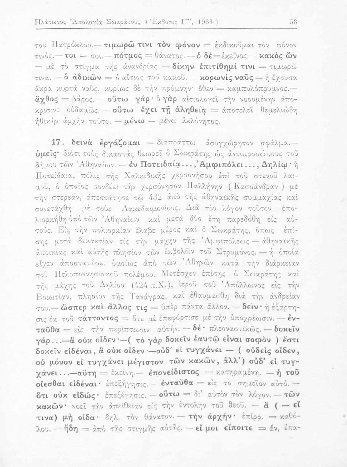 Σχολικό εγχειρίδιο για την Ε΄ Γυμνασίου για το μάθημα των Αρχαίων Ελληνικών και συγκεκριμένα επιλεγόμενα αποσπάσματα από την Απολογία Σωκράτους και τον Κρίτωνα. Το εγχειρίδιο περιλαμβάνει την εισαγωγή, το αρχαίο κείμενο και ερμηνευτικά και πραγματολογικά, γλωσσικά σχόλια πάνω στα έργα του Πλάτωνα, Απολογία Σωκράτους και Κρίτων.