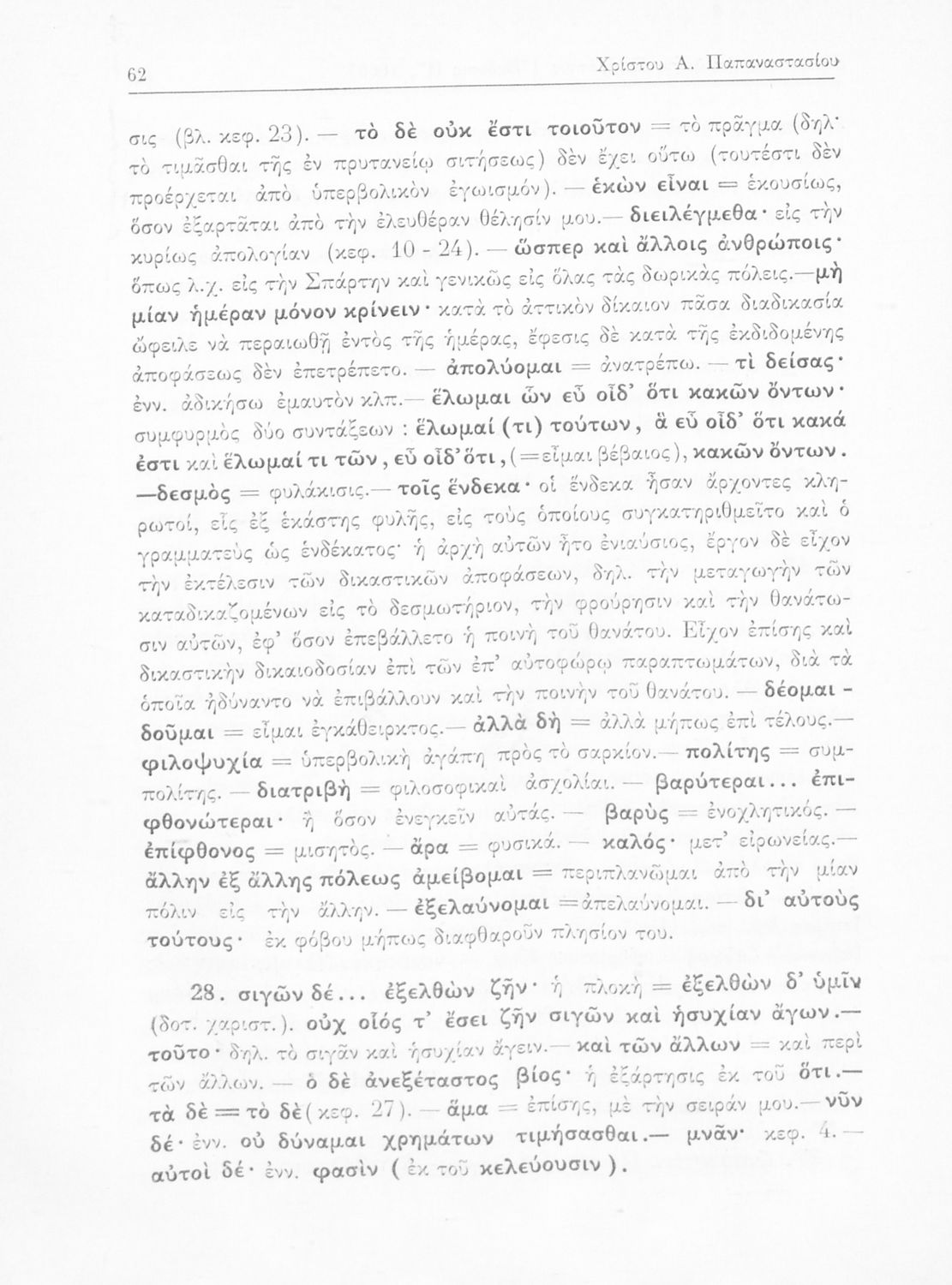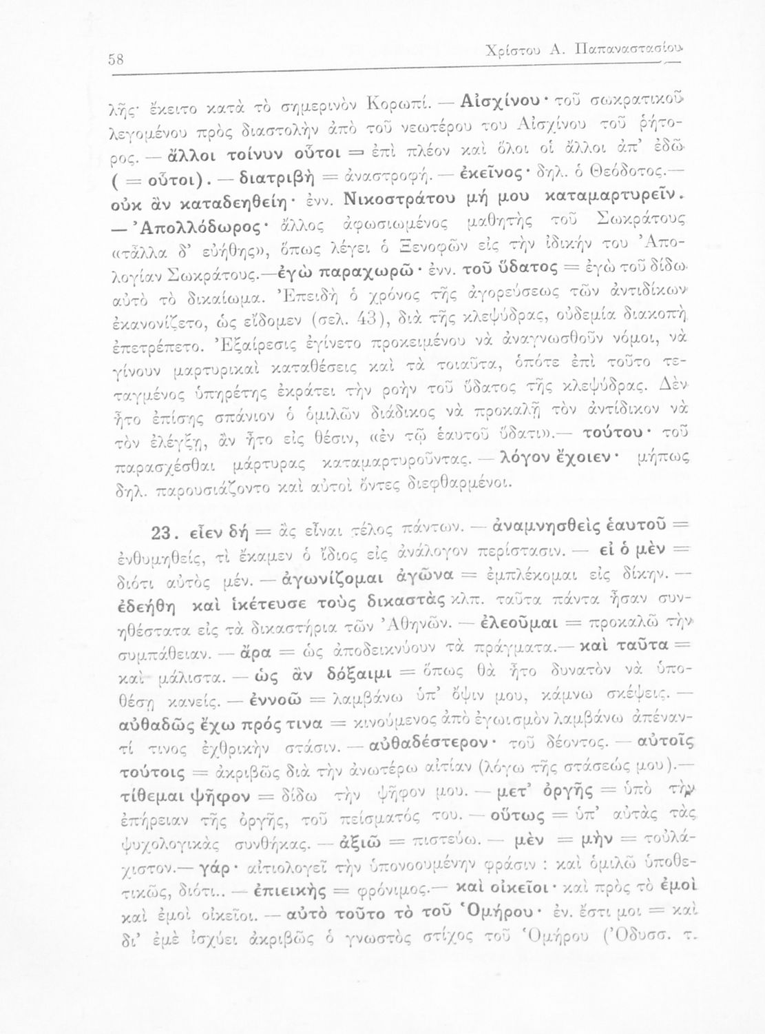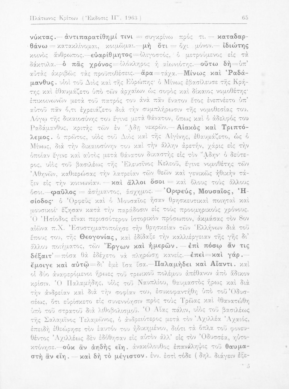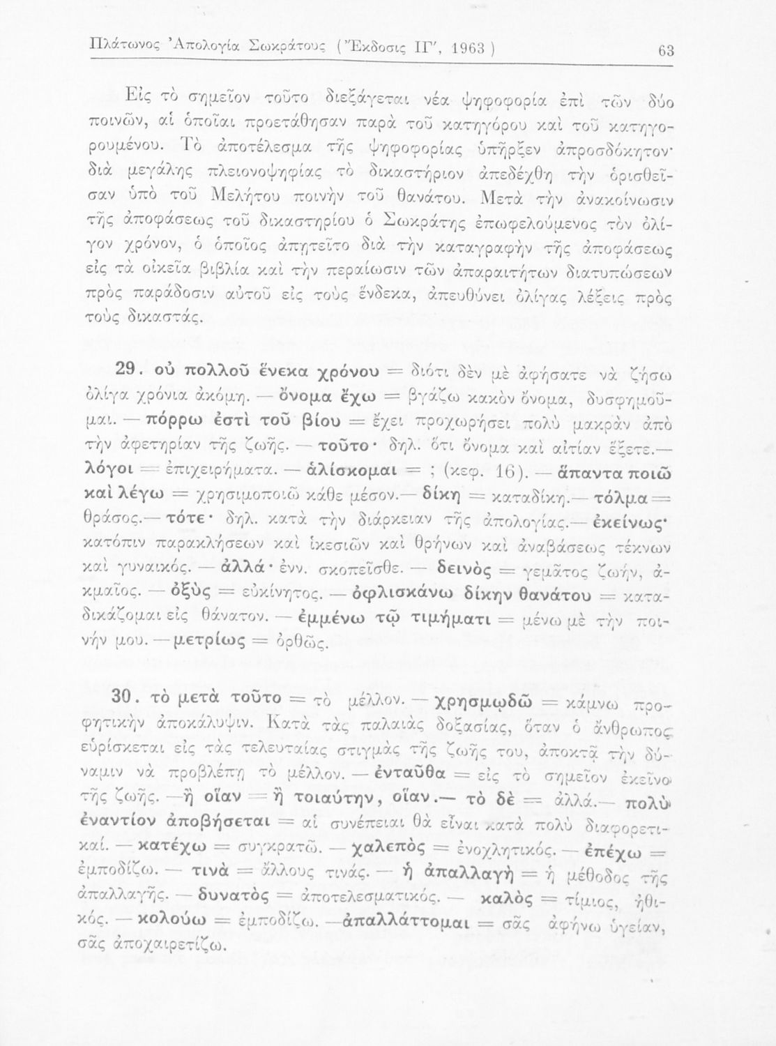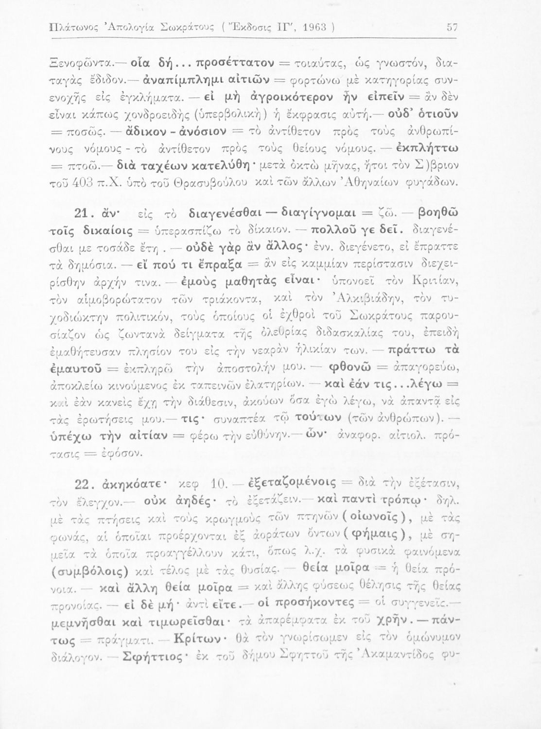 Σχολικό εγχειρίδιο για την Ε΄ Γυμνασίου για το μάθημα των Αρχαίων Ελληνικών και συγκεκριμένα επιλεγόμενα αποσπάσματα από την Απολογία Σωκράτους και τον Κρίτωνα. Το εγχειρίδιο περιλαμβάνει την εισαγωγή, το αρχαίο κείμενο και ερμηνευτικά και πραγματολογικά, γλωσσικά σχόλια πάνω στα έργα του Πλάτωνα, Απολογία Σωκράτους και Κρίτων.