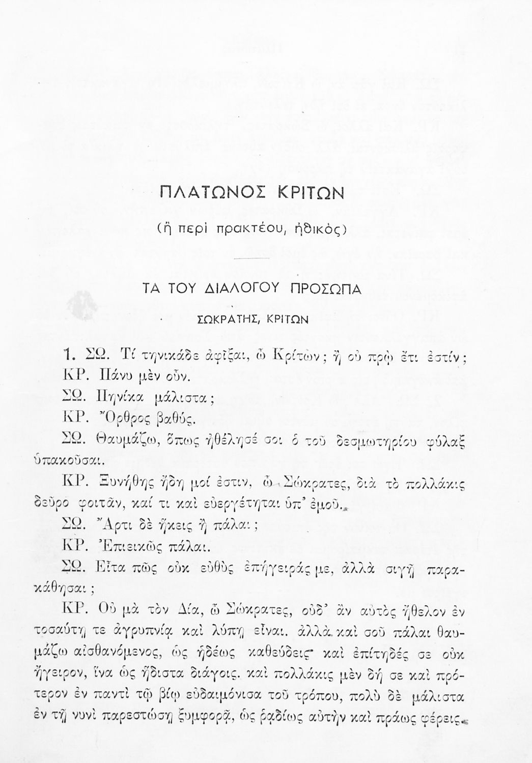 Πλάτωνος Απολογία Σωκράτους και Κρίτων δια την Ε ́ τάξιν των Γυμνασίων παλαιού τύπου και την ΣΤ ́ τάξιν των Γυμνασίων νέου τύπου