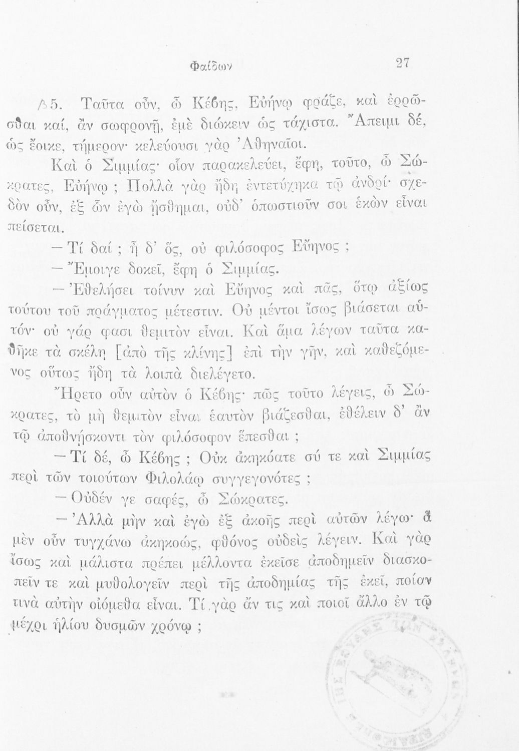 Πλάτωνος Φαίδων. Δια την ΣΤ΄ Τάξιν των Γυμνασίων Παλαιού Τύπου