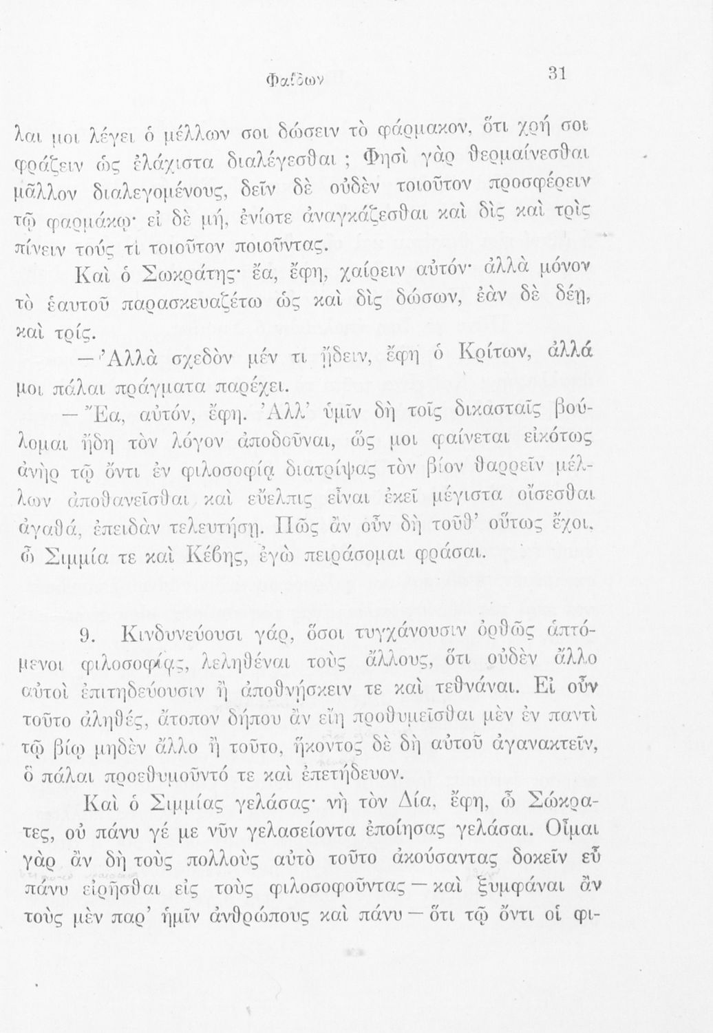 Σχολικό εγχειρίδιο Αρχαίων Ελληνικών. Το βιβλίο περιλαμβάνει εισαγωγή σχετικά με τη ζωή και το έργο του Πλάτωνα και αναφέρεται σε φιλοσόφους της εποχής. Παραθέτεται το κείμενο "Φαίδων : Η περί ψυχής ηθικός" το