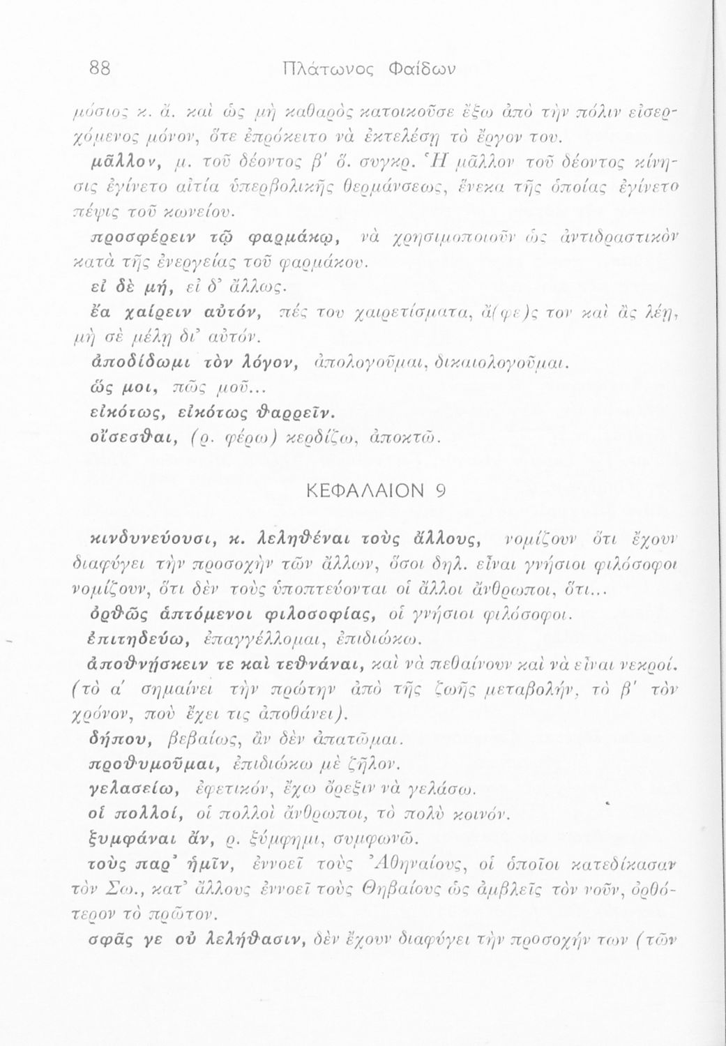 Σχολικό εγχειρίδιο Αρχαίων Ελληνικών. Το βιβλίο περιλαμβάνει εισαγωγή σχετικά με τη ζωή και το έργο του Πλάτωνα και αναφέρεται σε φιλοσόφους της εποχής. Παραθέτεται το κείμενο "Φαίδων : Η περί ψυχής ηθικός" το