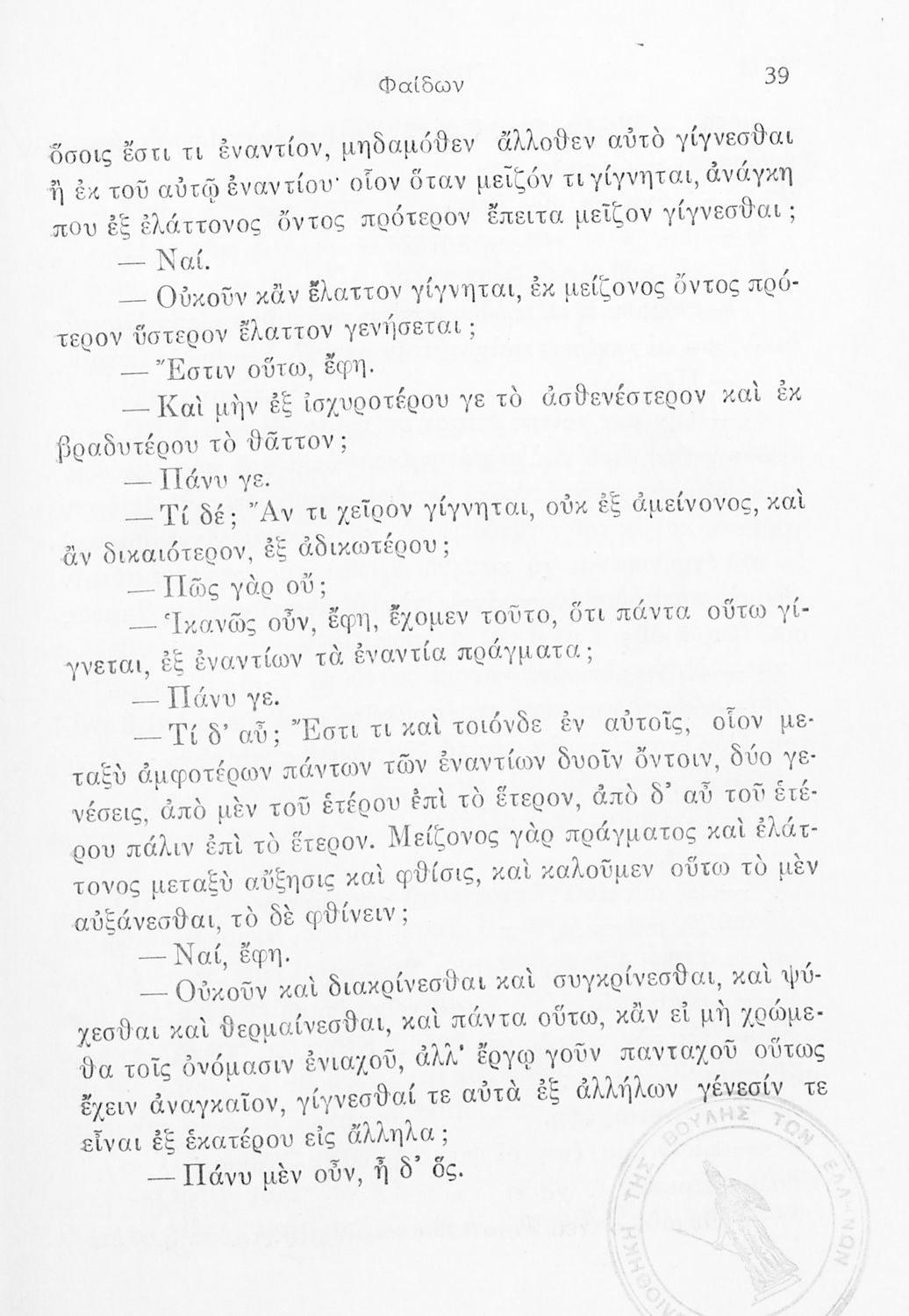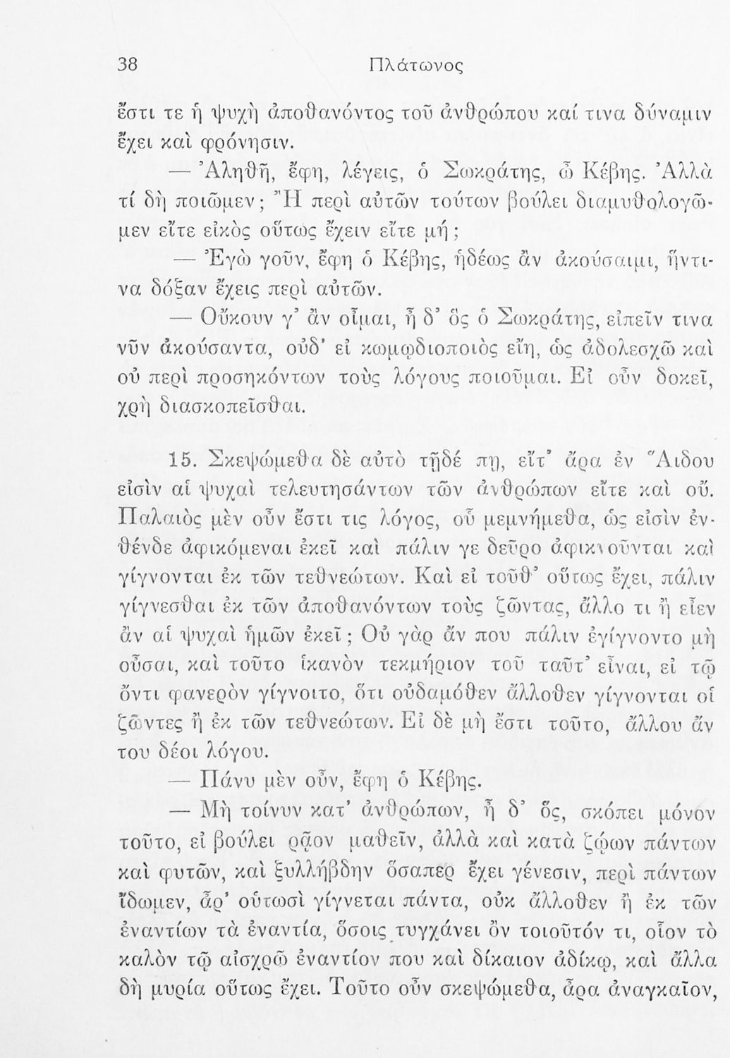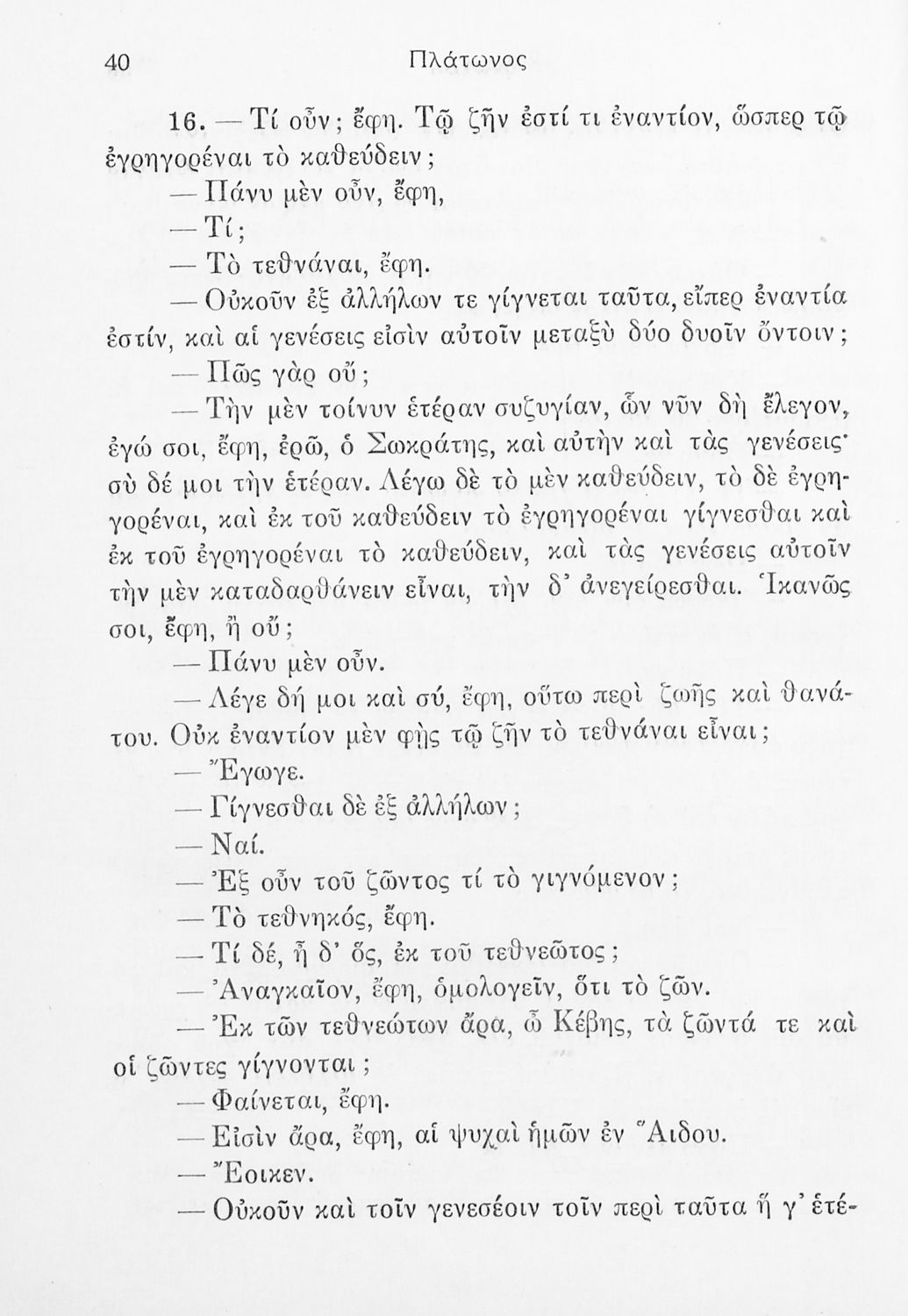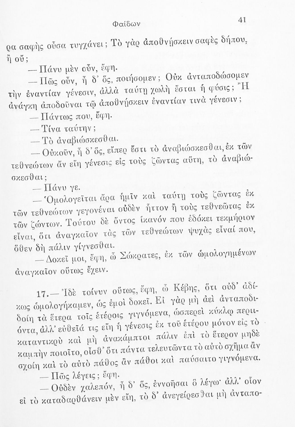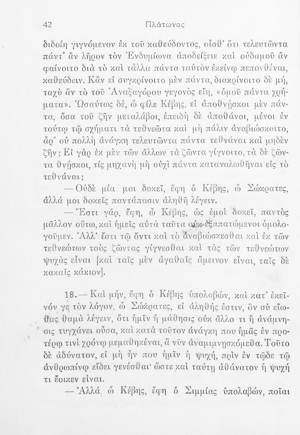 Σχολικό εγχειρίδιο της ΣΤ΄ Γυμνασίου για το μάθημα των Αρχαίων Ελληνικών. Περιέχει το πρωτότυπο κείμενο από το έργο του Πλάτωνα Φαίδων. Τα κείμενα συνοδεύονται από ερμηνευτικές και λεξιλογικές παρατηρήσεις του συγγραφέα.