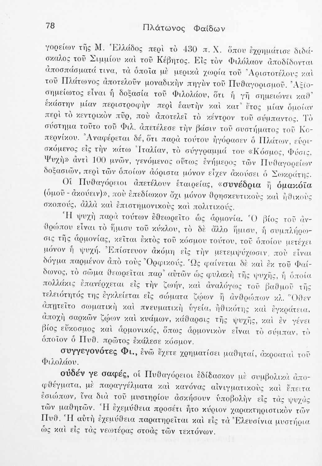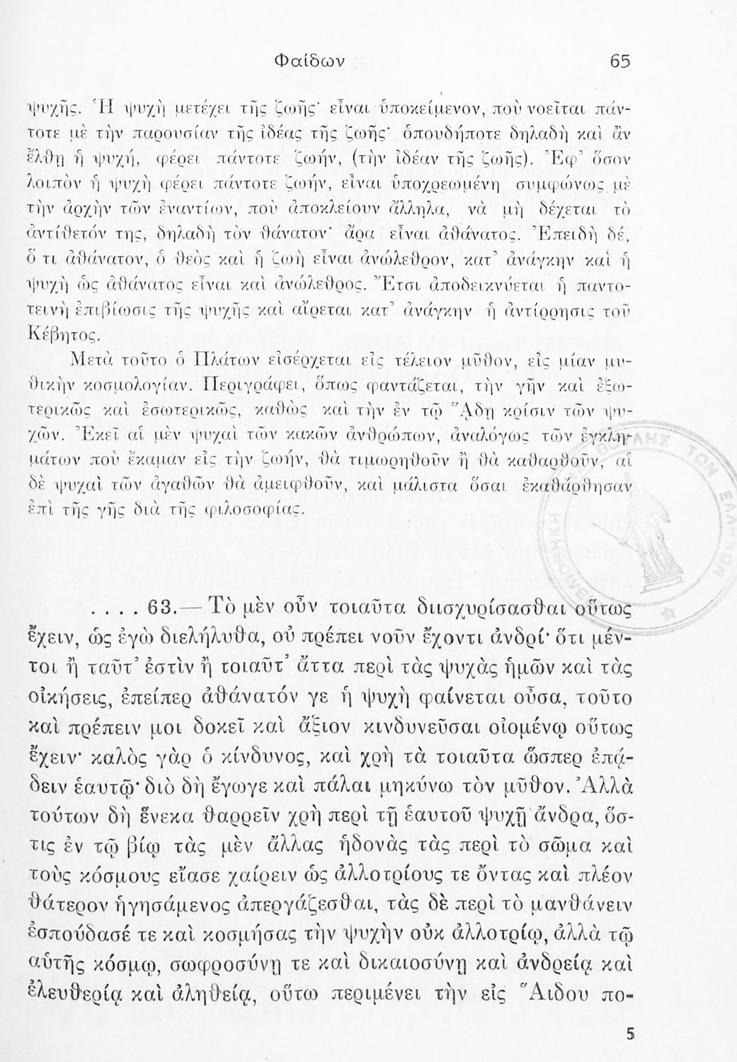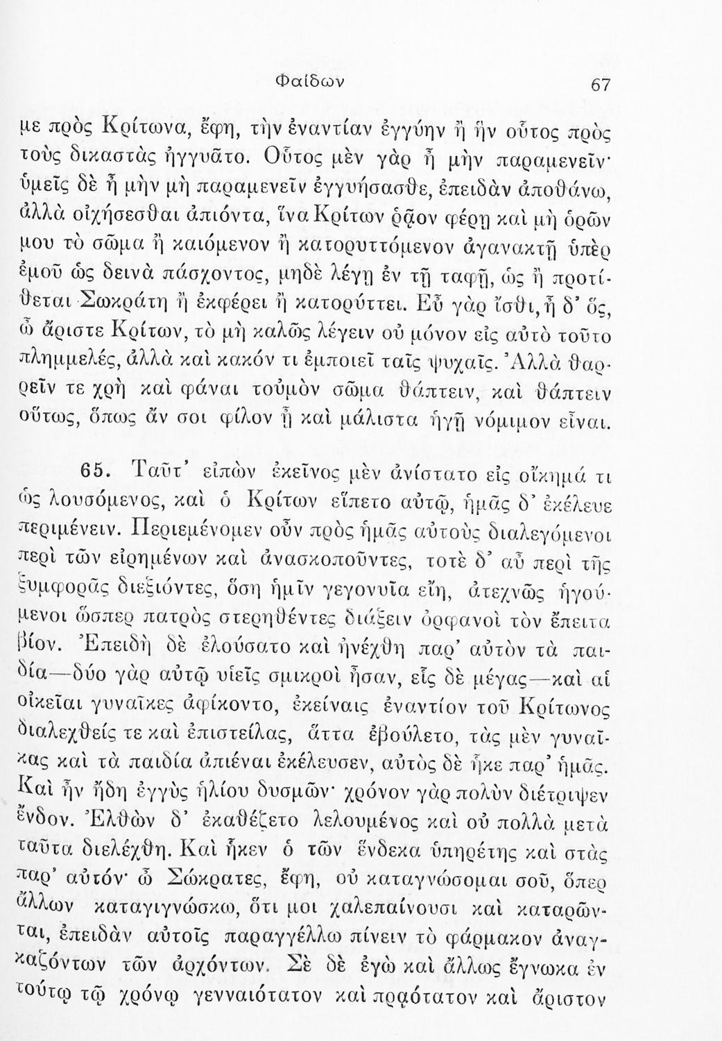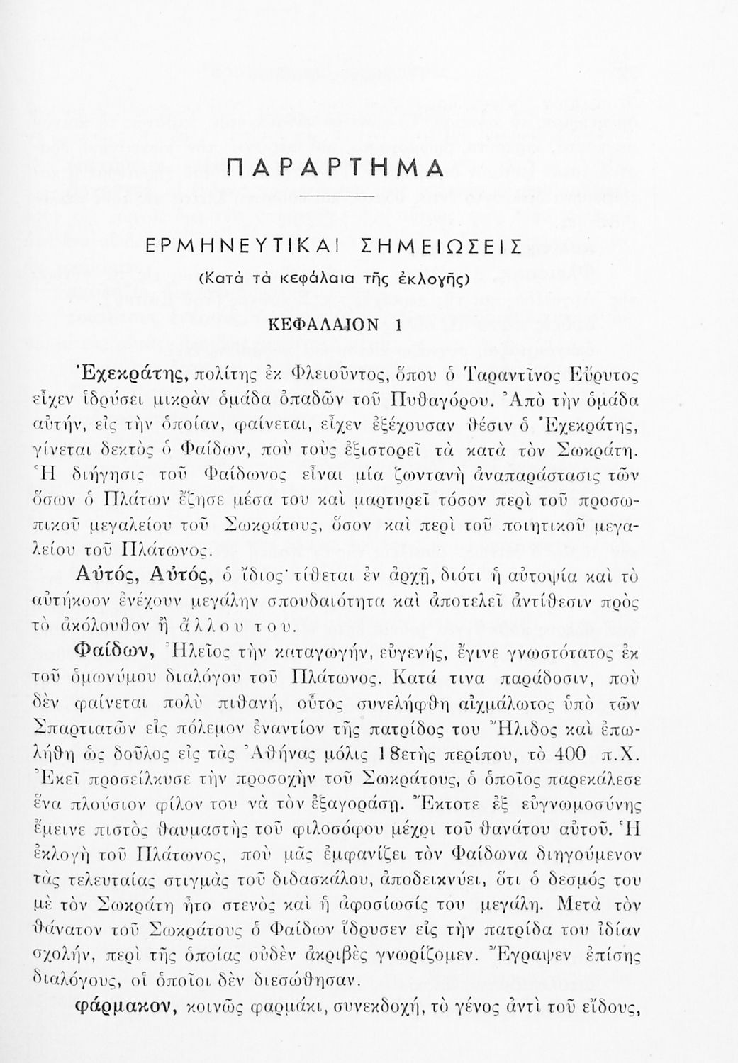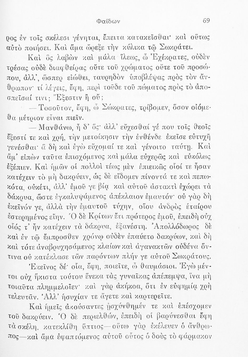 Σχολικό εγχειρίδιο της ΣΤ΄ Γυμνασίου για το μάθημα των Αρχαίων Ελληνικών. Περιέχει το πρωτότυπο κείμενο από το έργο του Πλάτωνα Φαίδων. Τα κείμενα συνοδεύονται από ερμηνευτικές και λεξιλογικές παρατηρήσεις του συγγραφέα.