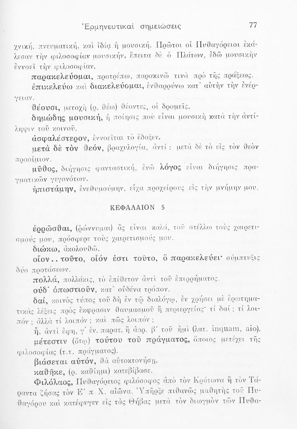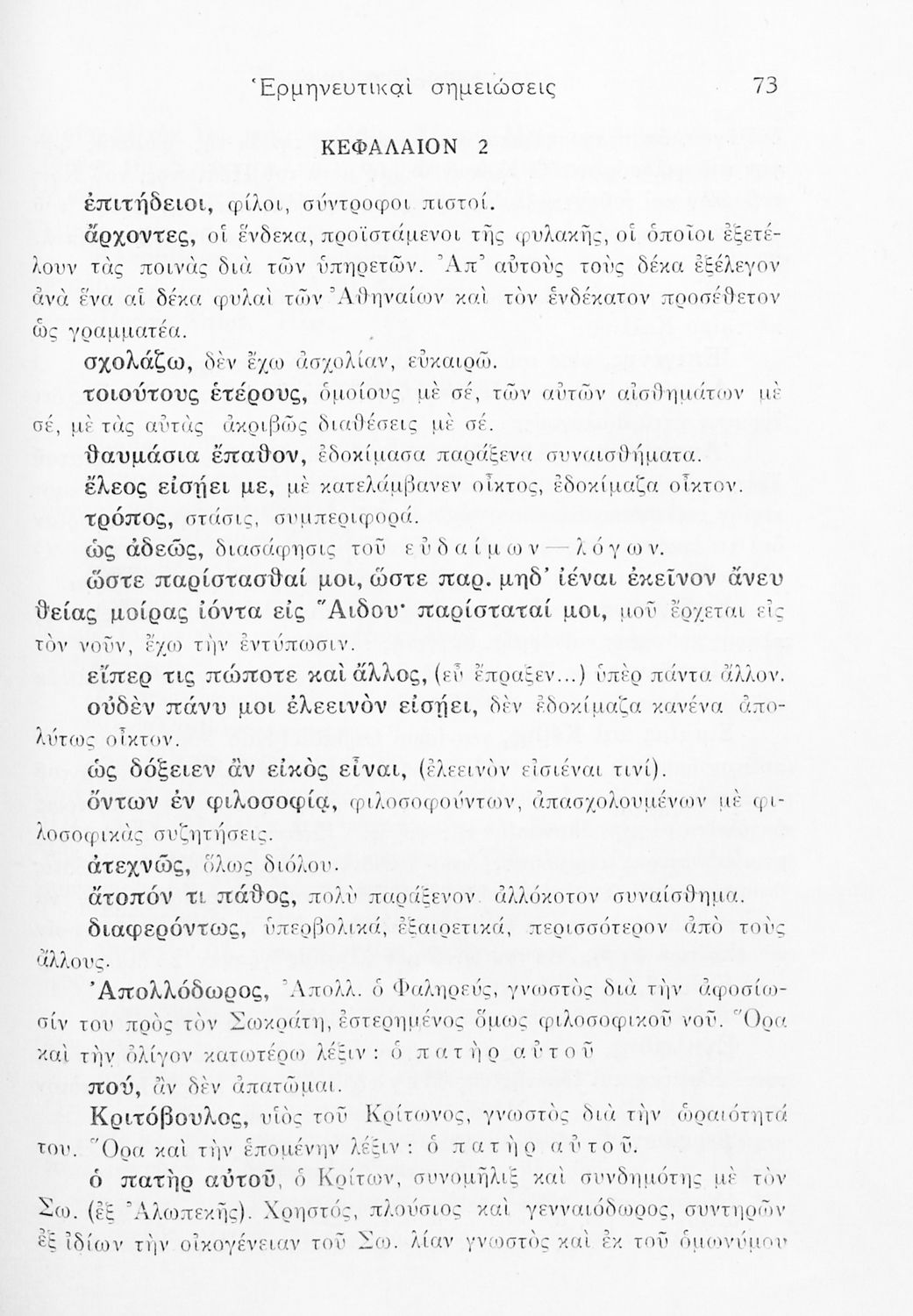 Βαθμίδα εκπαίδευσης: Δευτεροβάθμια Τάξη: ΣΤ' Γυμνασίου Μάθημα: Αρχαία Ελληνικά Γλώσσα: Απλή καθαρεύουσα Παρουσίαση περιεχομένου: Σχολικό εγχειρίδιο της ΣΤ΄ Γυμνασίου για το μάθημα των Αρχαίων Ελληνικών. Περιέχει το πρωτότυπο κείμενο από το έργο του Πλάτωνα Φαίδων. Τα κείμενα συνοδεύονται από ερμηνευτικές και λεξιλογικές παρατηρήσεις του συγγραφέα. |