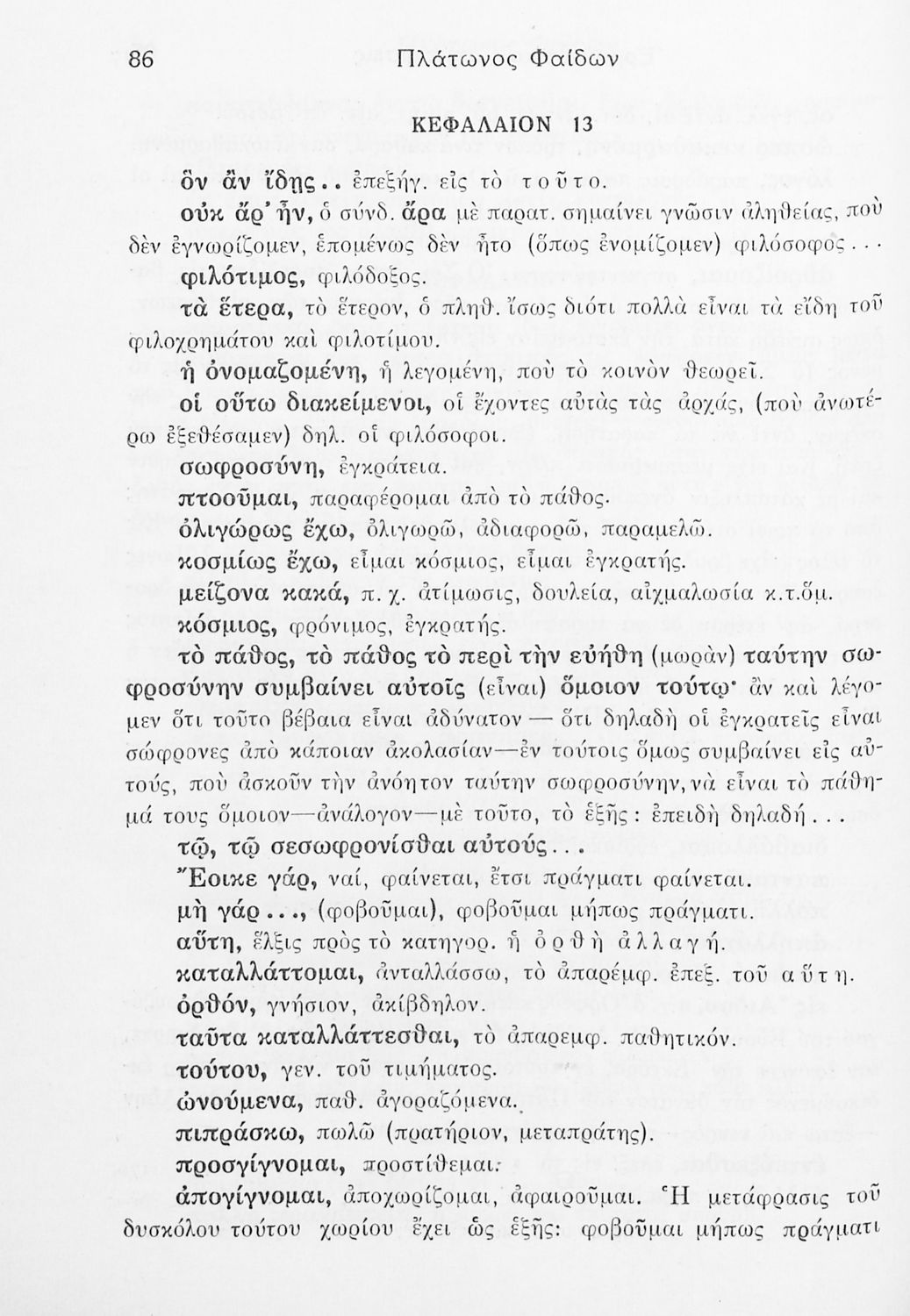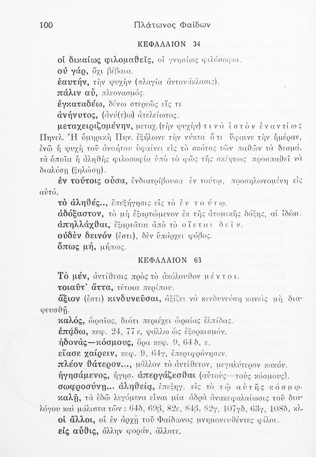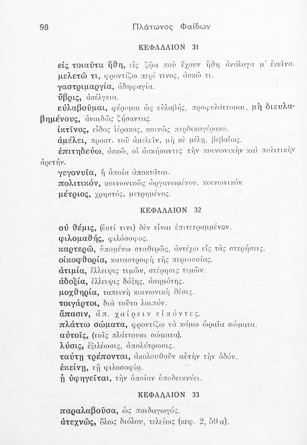 Σχολικό εγχειρίδιο Αρχαίων Ελληνικών. Το βιβλίο περιλαμβάνει εισαγωγή σχετικά με τη ζωή και το έργο του Πλάτωνα και αναφέρεται σε φιλοσόφους της εποχής. Παραθέτεται το κείμενο "Φαίδων : Η περί ψυχής ηθικός" το