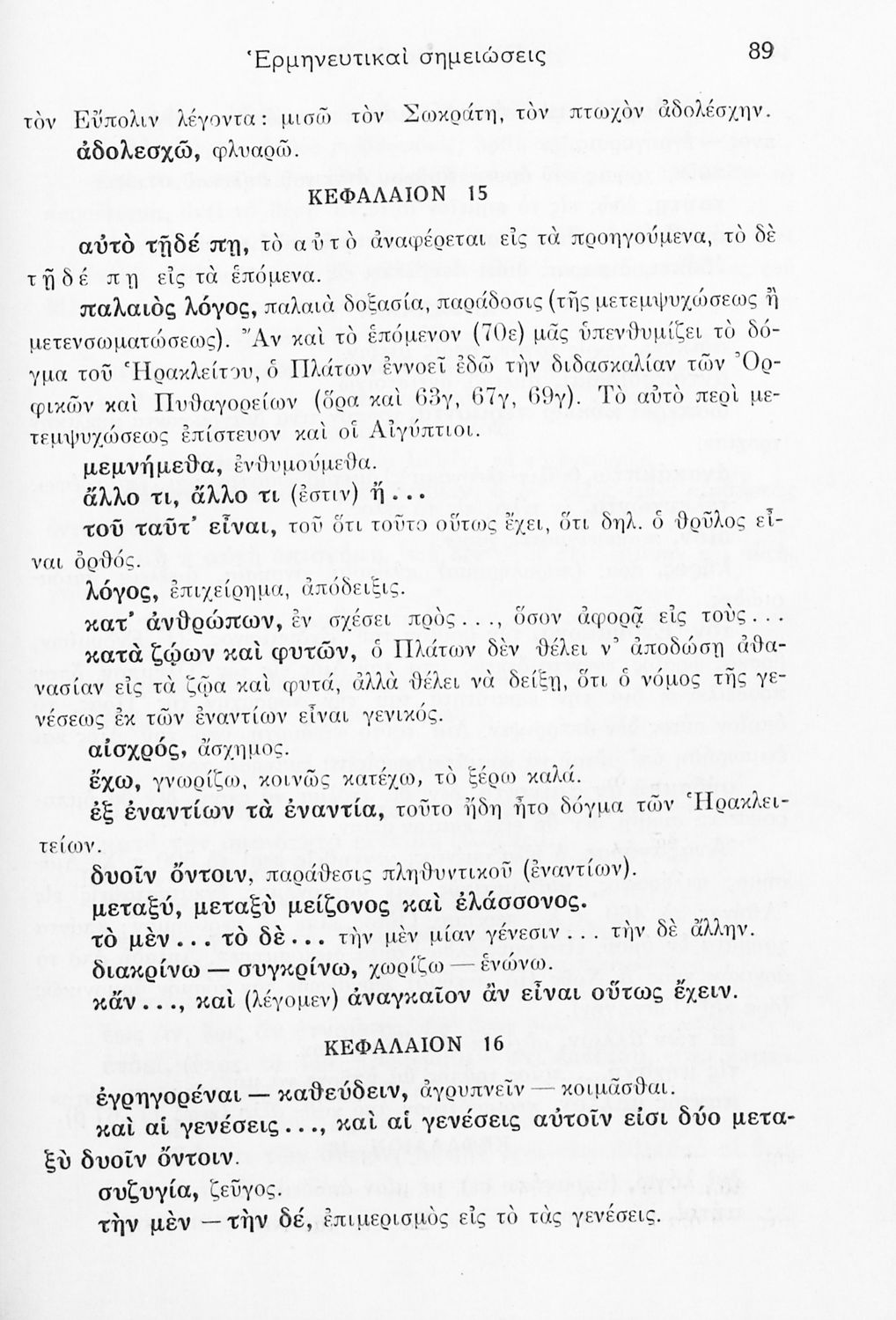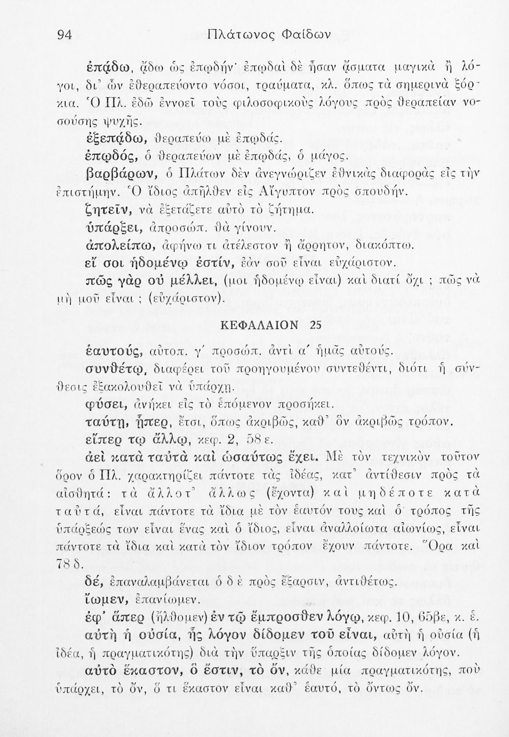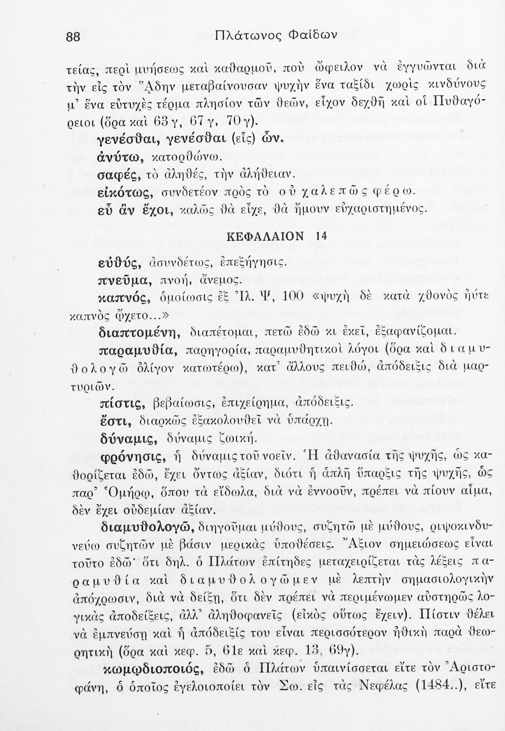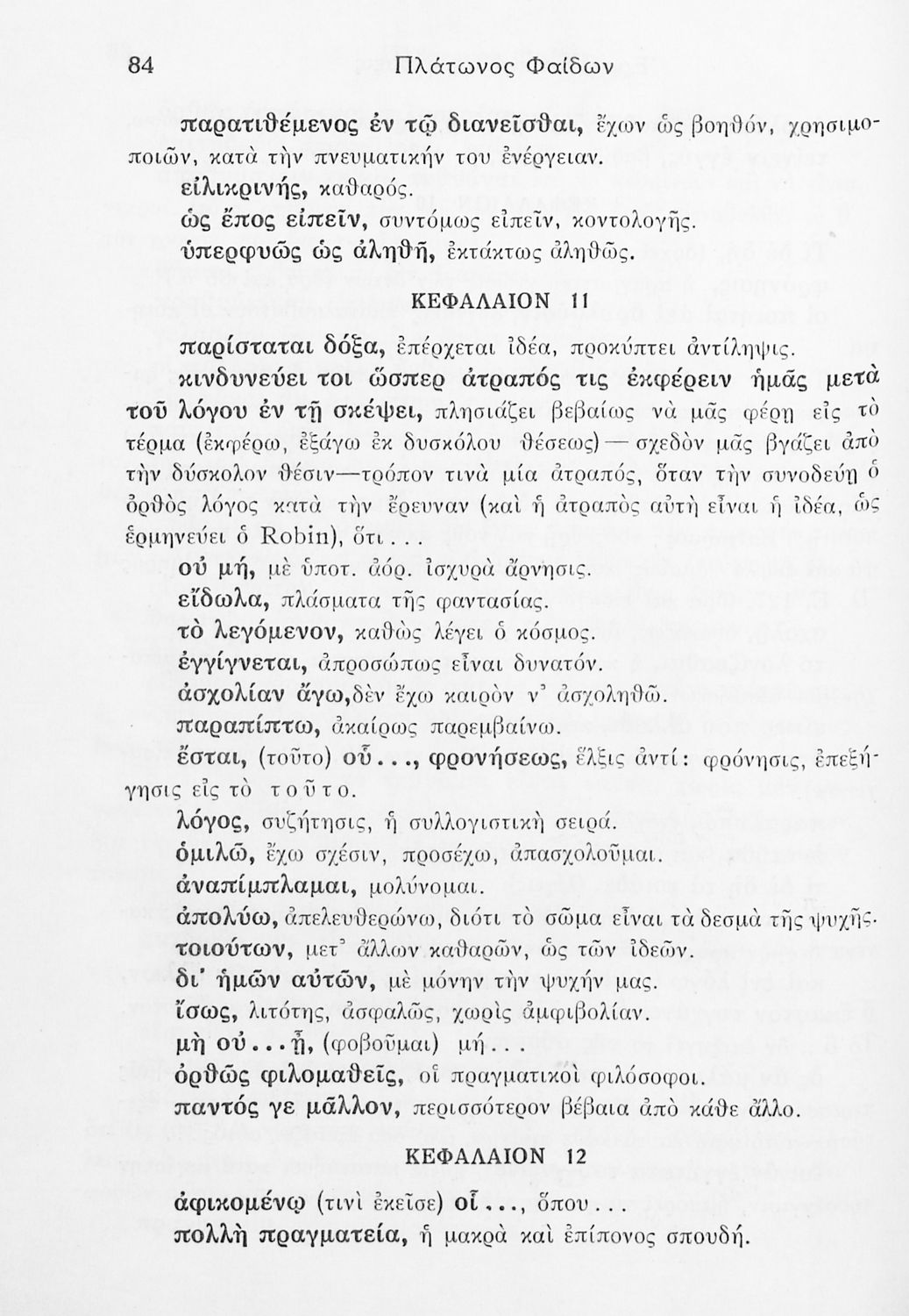 Σχολικό εγχειρίδιο Αρχαίων Ελληνικών. Το βιβλίο περιλαμβάνει εισαγωγή σχετικά με τη ζωή και το έργο του Πλάτωνα και αναφέρεται σε φιλοσόφους της εποχής. Παραθέτεται το κείμενο "Φαίδων : Η περί ψυχής ηθικός" το