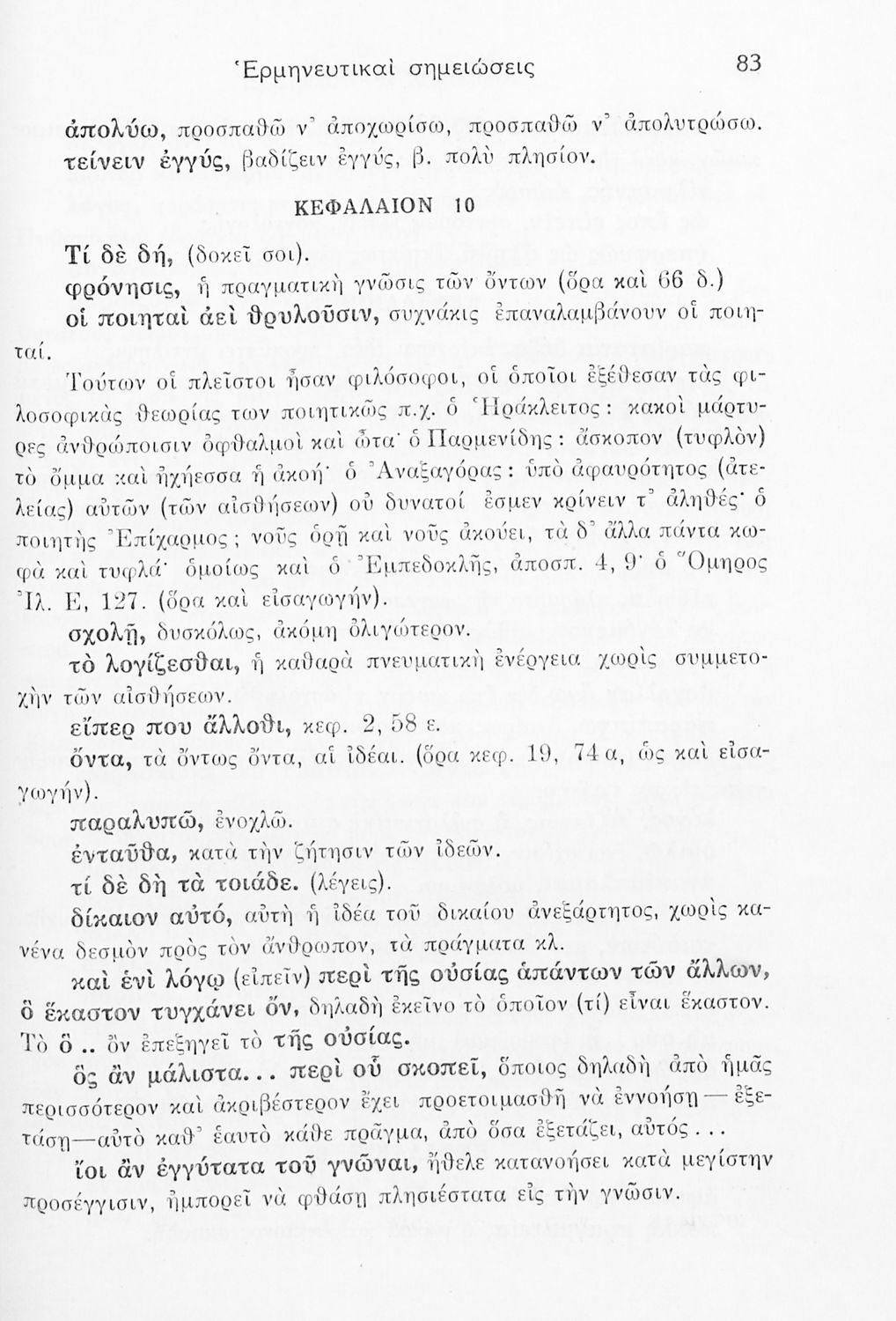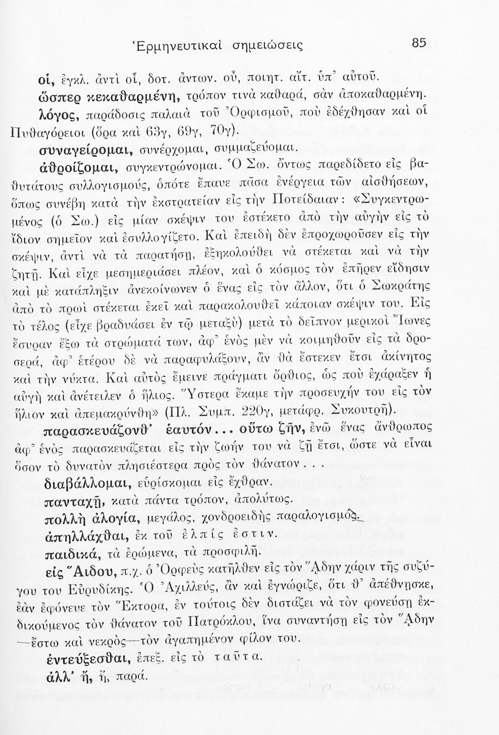 Σχολικό εγχειρίδιο Αρχαίων Ελληνικών για τη ΣΤ΄ τάξη των Εξαταξίων Γυμνασίων που περιλαμβάνει σύντομο βιογραφικό του Πλάτωνα, εισαγωγή στην προσωκρατική φιλοσοφία και στην φιλοσοφία του Πλάτωνα, αποσπάσματα ...