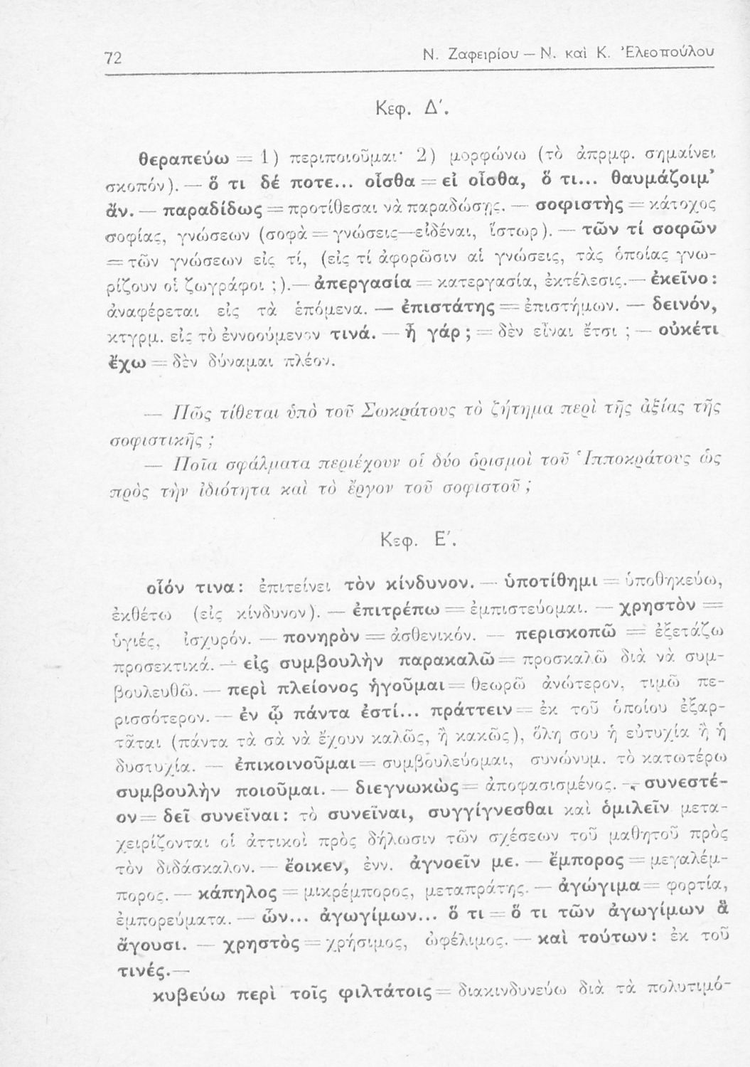 520 ## _aΣχολικό εγχειρίδιο για την ΣΤ΄ Γυμνασίου για το μάθημα των Αρχαίων Ελληνικών και συγκεκριμένα επιλεγόμενα αποσπάσματα από τον Πρωταγόρα του Πλάτωνα. Το εγχειρίδιο περιλαμβάνει εισαγωγικά σκοπός και παιδευτική αξία του διαλόγου, η τέχνη της σοφιστικής και οι σοφιστές, το αρχαίο πρωτότυπο κείμενο του Πρωταγόρα, ερμηνευτικά, πραγματολογικά και λεξιλογικά στοιχεία, παράρτημα με διακοσμητικά στοών και χώρων όπου γινόντουσαν οι φιλοσοφικές συζητήσεις κατά την αρχαιότητα.