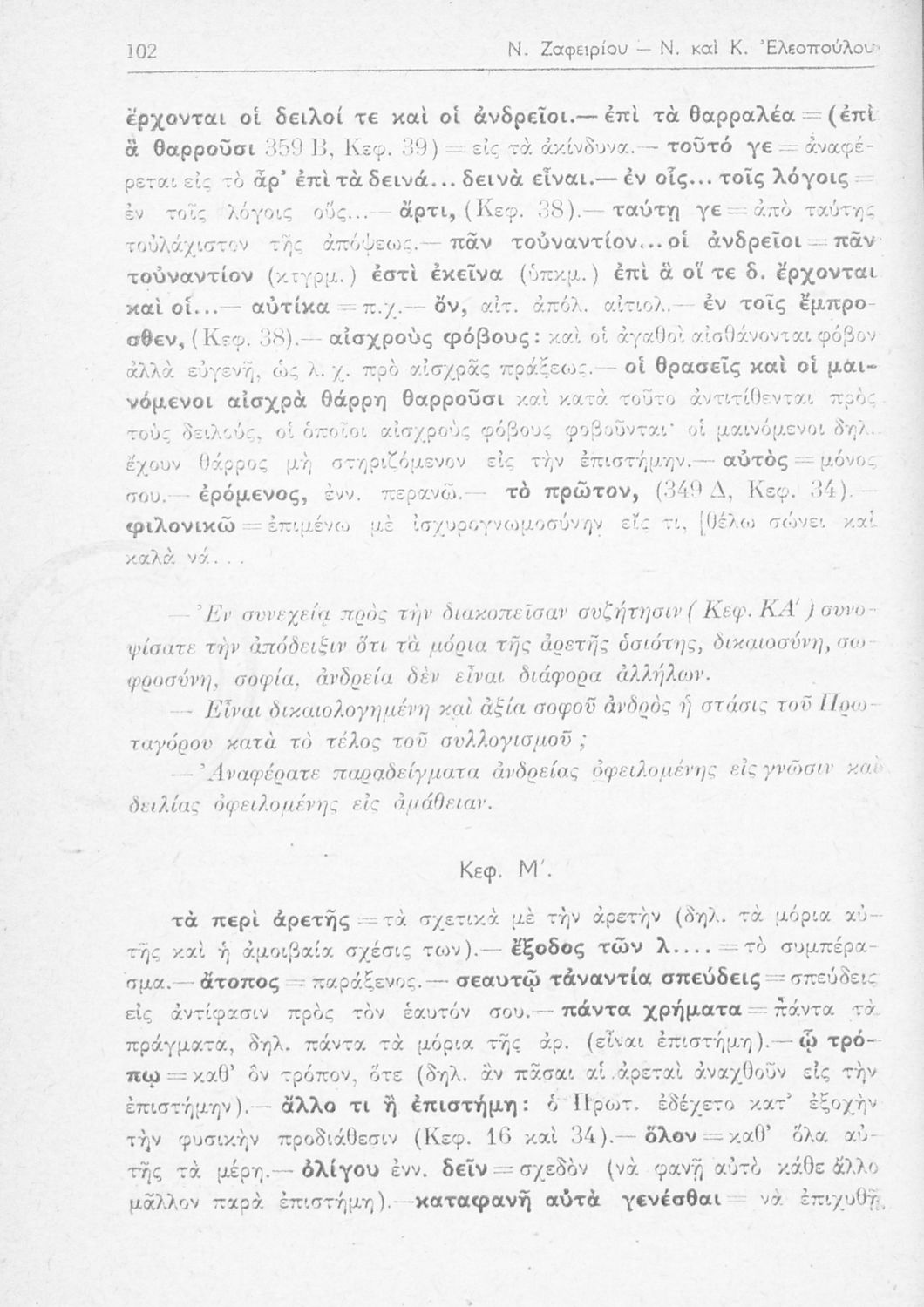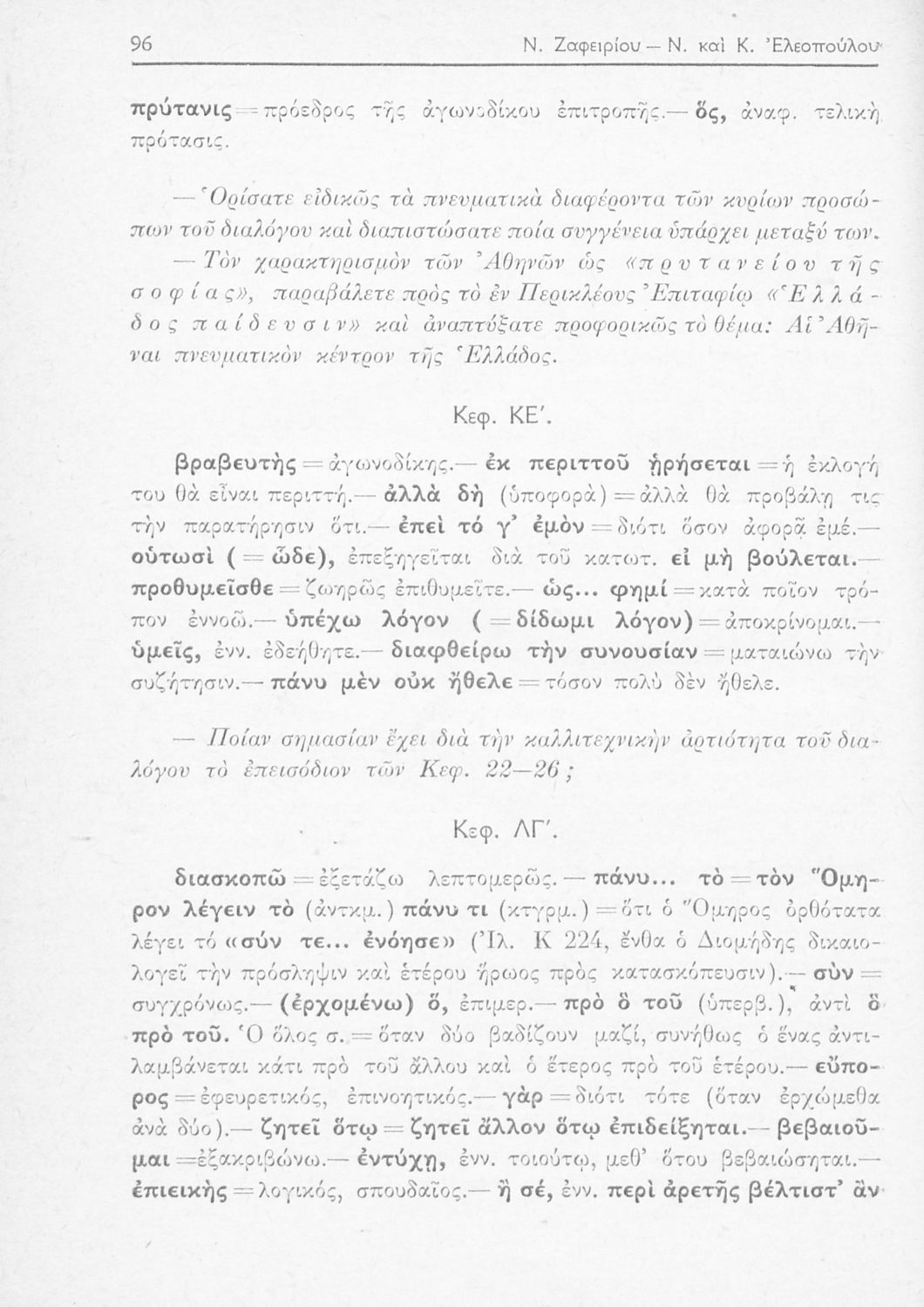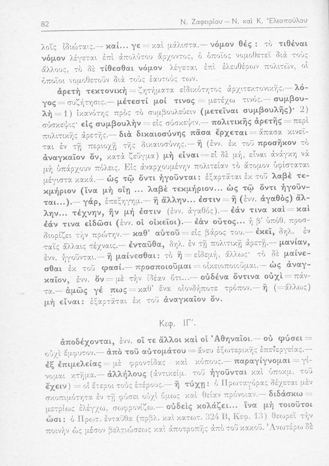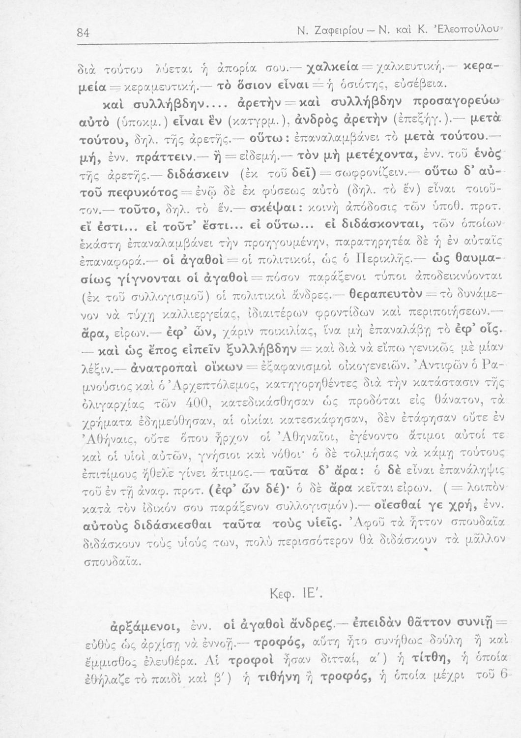 Βαθμίδα εκπαίδευσης: Δευτεροβάθμια Τάξη: ΣΤ' Γυμνασίου Μάθημα: Αρχαία Ελληνικά Γλώσσα: Καθαρεύουσα Παρουσίαση περιεχομένου: Σχολικό εγχειρίδιο για την ΣΤ΄ Γυμνασίου για το μάθημα των Αρχαίων Ελληνικών και συγκεκριμένα επιλεγόμενα αποσπάσματα από τον Πρωταγόρα του Πλάτωνα. Το εγχειρίδιο περιλαμβάνει εισαγωγικά σκοπός και παιδευτική αξία του διαλόγου, η τέχνη της σοφιστικής και οι σοφιστές, το αρχαίο πρωτότυπο κείμενο του Πρωταγόρα, ερμηνευτικά, πραγματολογικά και λεξιλογικά στοιχεία, παράρτημα με διακοσμητικά στοών και χώρων όπου γινόντουσαν οι φιλοσοφικές συζητήσεις κατά την αρχαιότητα. |
