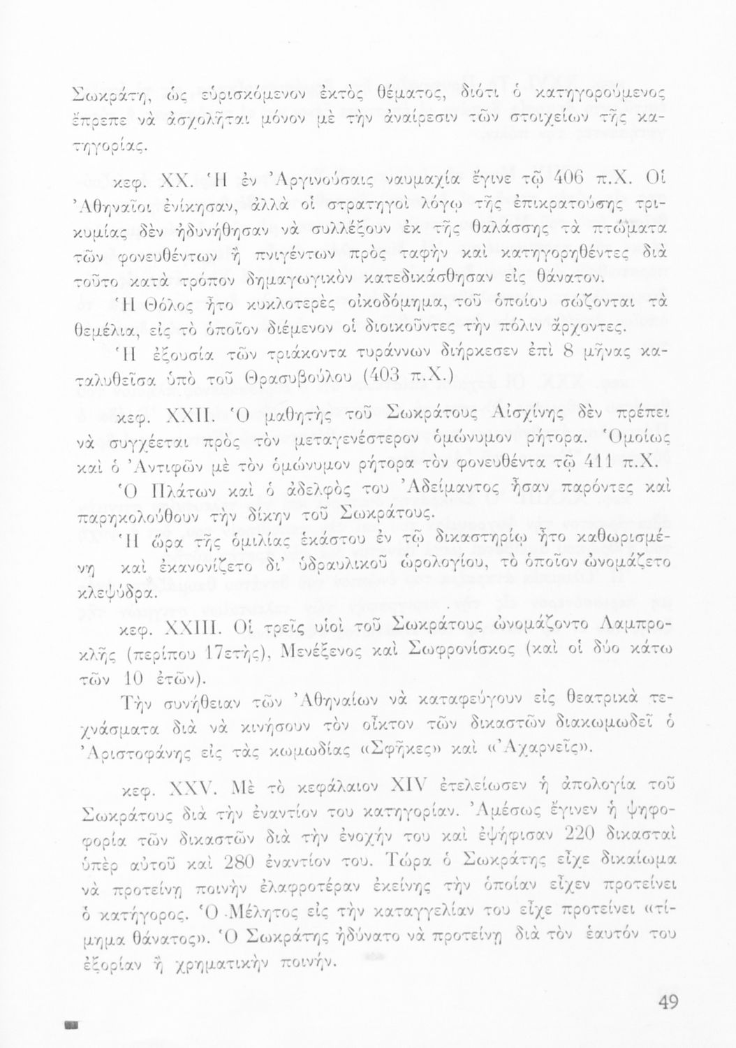 520 ## _aΣχολικό εγχειρίδιο της Γ΄ Τάξης Γυμνασίου για το μάθημα των Αρχαίων Ελληνικών. Περιέχει το πρωτότυπο κείμενο της Απολογίας του Σωκράτη με πραγματολογικές και ερμηνευτικές παρατηρήσεις του συγγραφέα. Επίσης έχει εισαγωγή και μετάφραση.