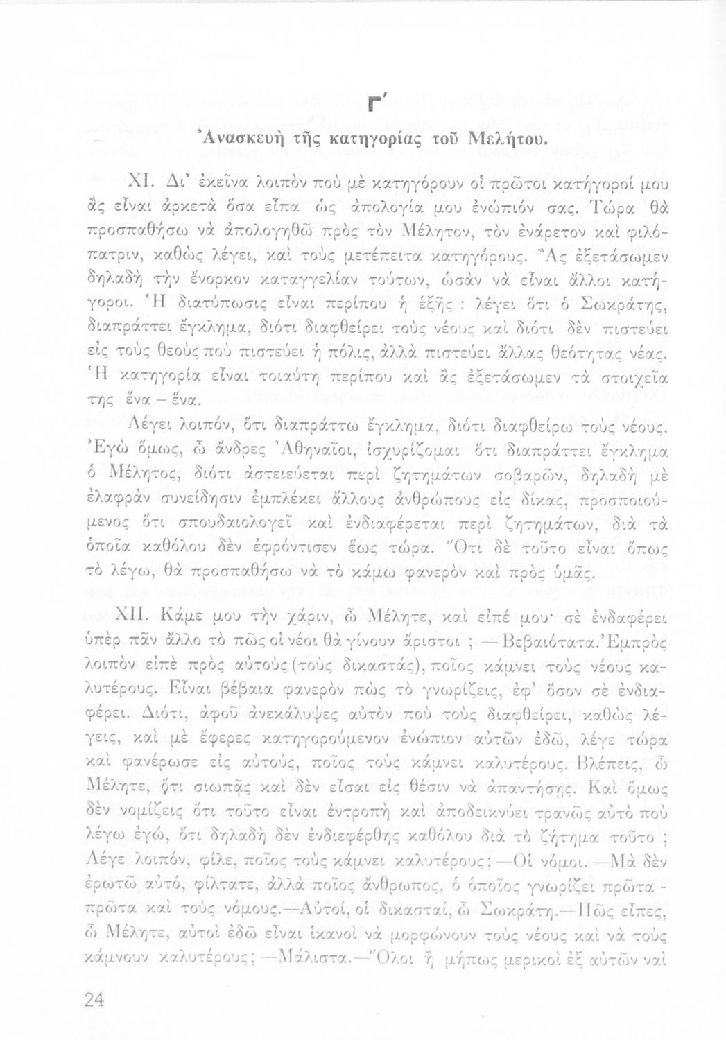 Πλάτωνος Απολογία Σωκράτους. Ε΄ Γυμνασίου