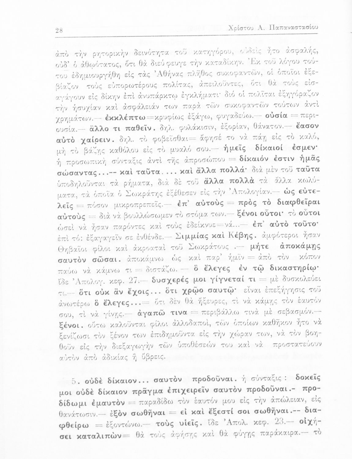 Σχολικό εγχειρίδιο της Ε΄ Γυμνασίου για το μάθημα των Αρχαίων. Περιέχει το πρωτότυπο κείμενο του Πλάτωνα από την απολογία του Κρίτωνα με ερμηνευτικά, πραγματολογικά σχόλια και λεξιλογικές παρατηρήσεις του ...