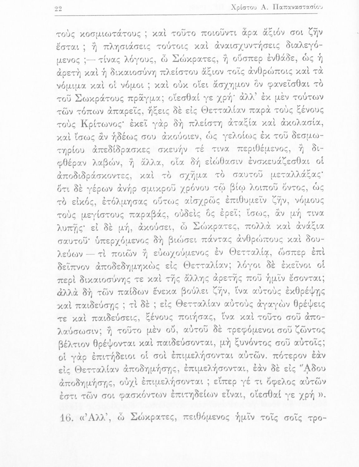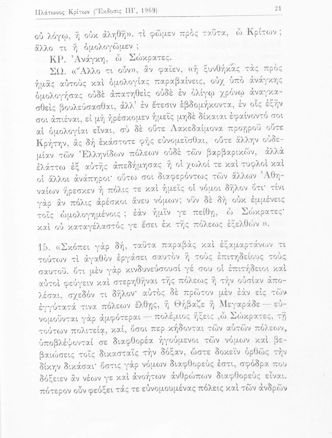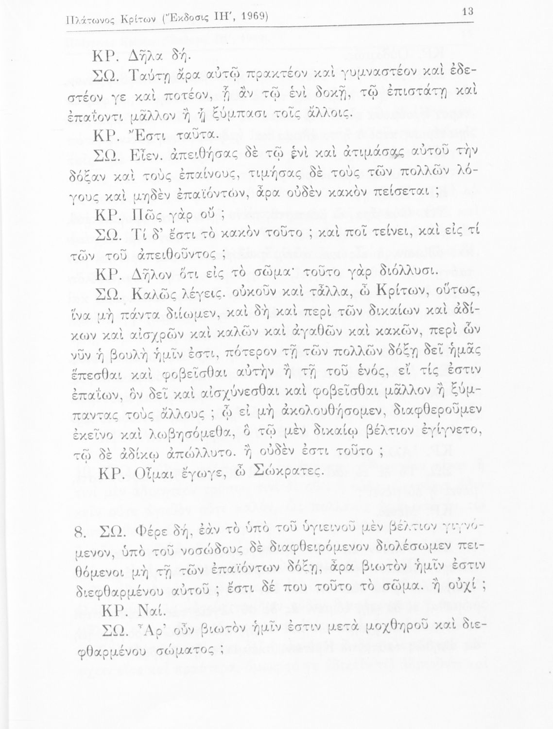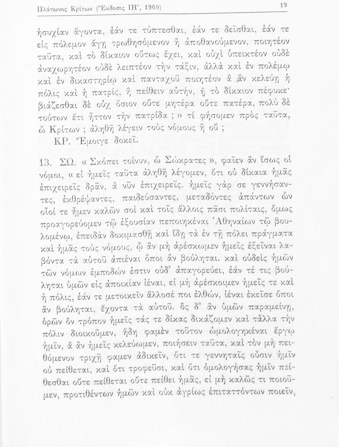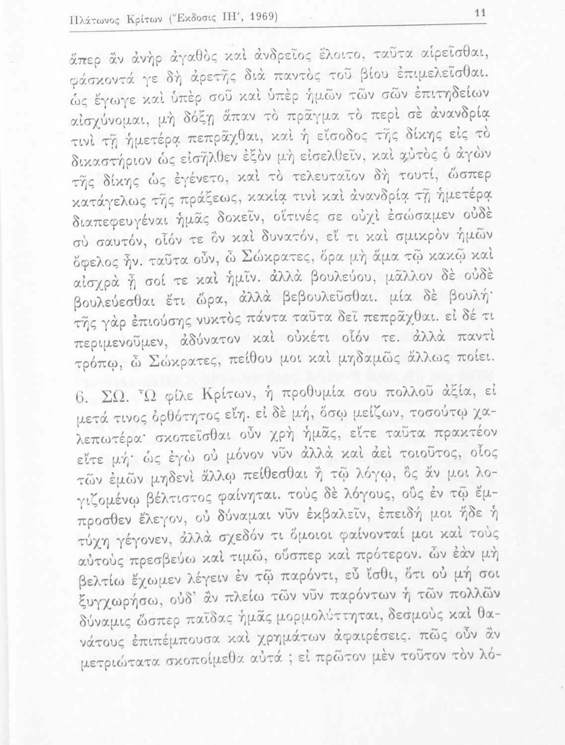 Σχολικό εγχειρίδιο της Ε΄ Γυμνασίου για το μάθημα των Αρχαίων Ελληνικών. Το εγχειρίδιο περιλαμβάνει το αρχαίο κείμενο του έργου του Πλάτωνα, "Κρίτων" και το β΄ μέρος περιλαμβάνει ερμηνευτικές σημειώσεις με πραγματολογικά, γλωσσικά και γραμματολογικά σχόλια.