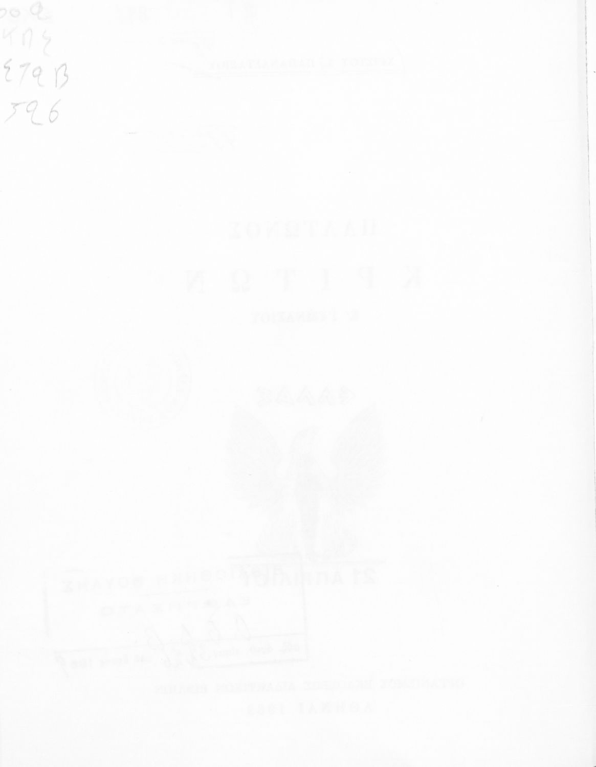 Εντοπισμός πρωτοτύπου: Βιβλιοθήκη της Βουλής των Ελλήνων Κωδικός βιβλιοθήκης: 20556628 |