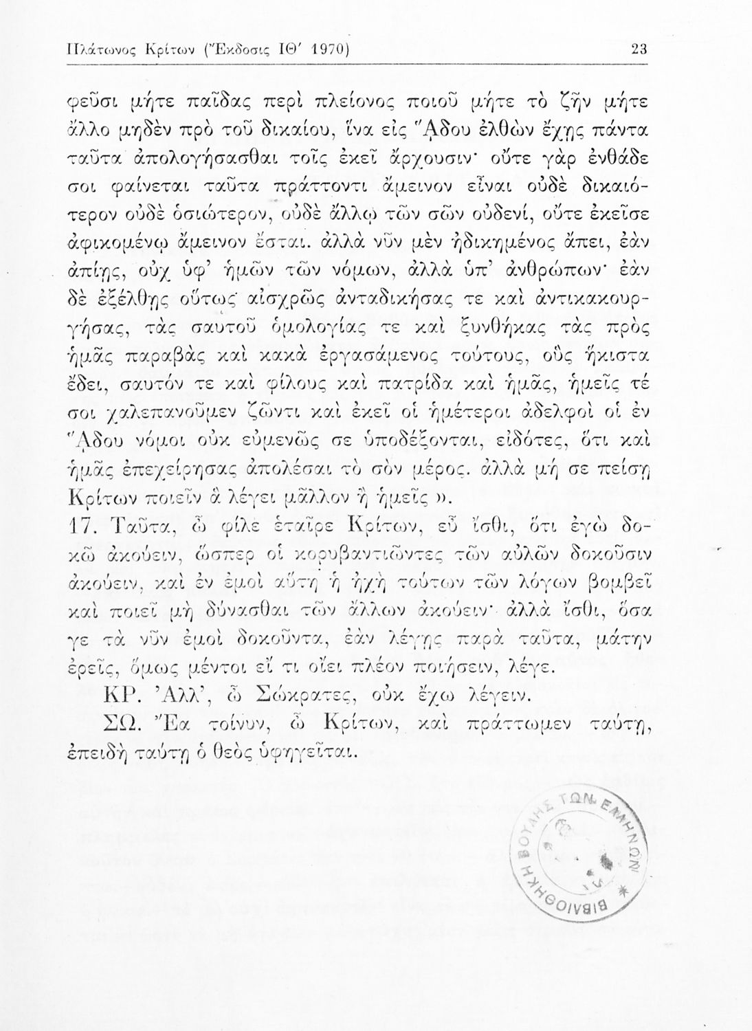 Τίτλος: Πλάτωνος Κρίτων E ́ Γυμνασίου