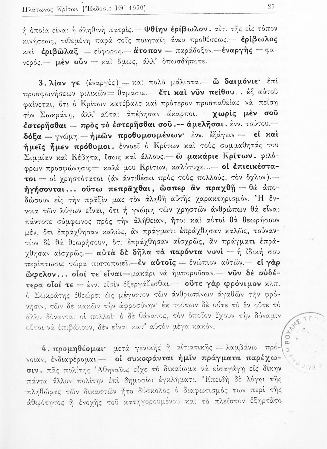 Πλάτωνος Κρίτων E ́ Γυμνασίου