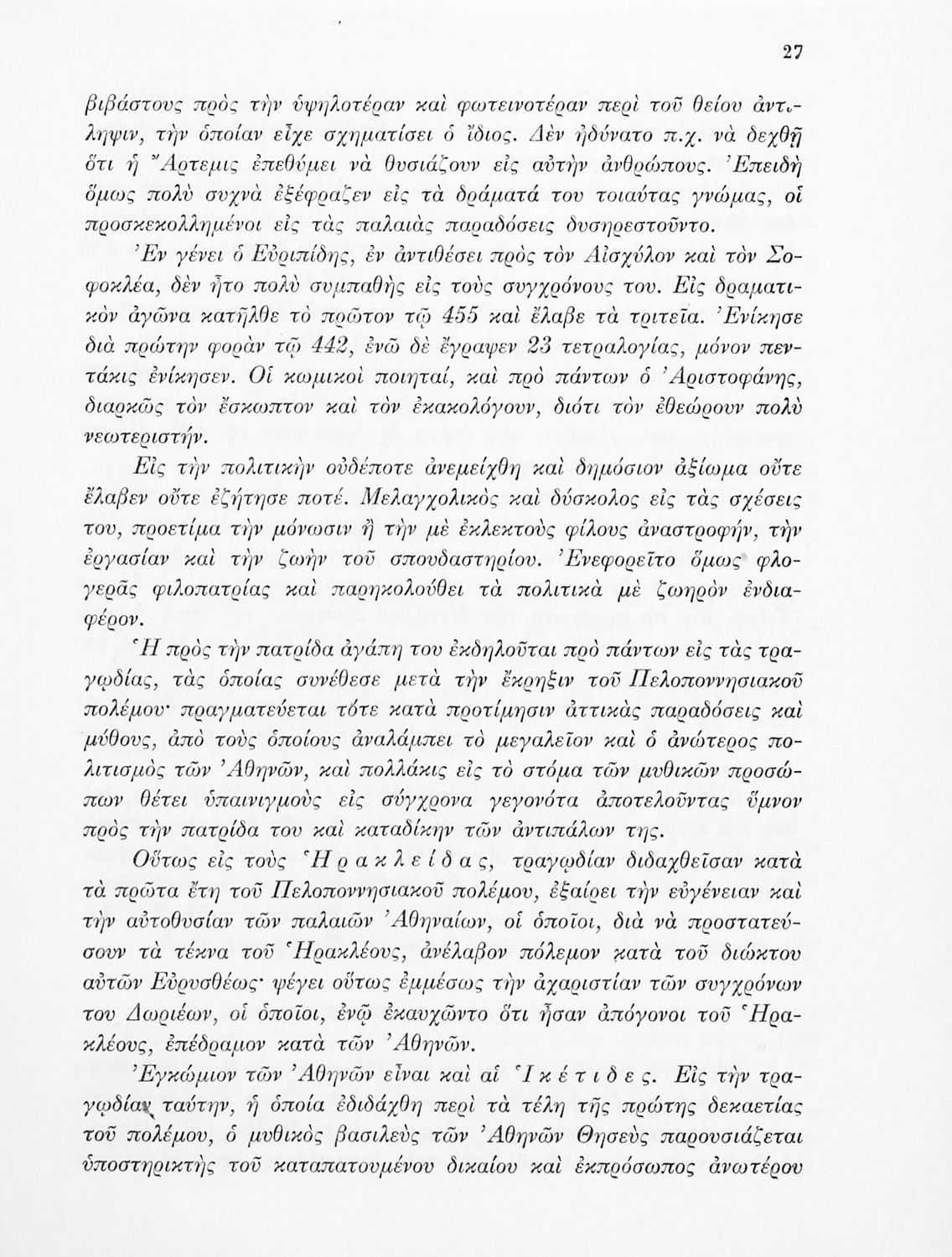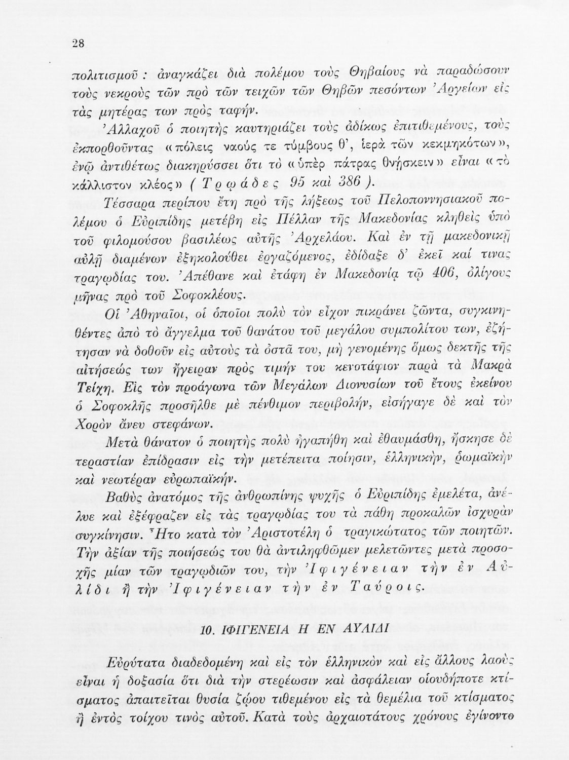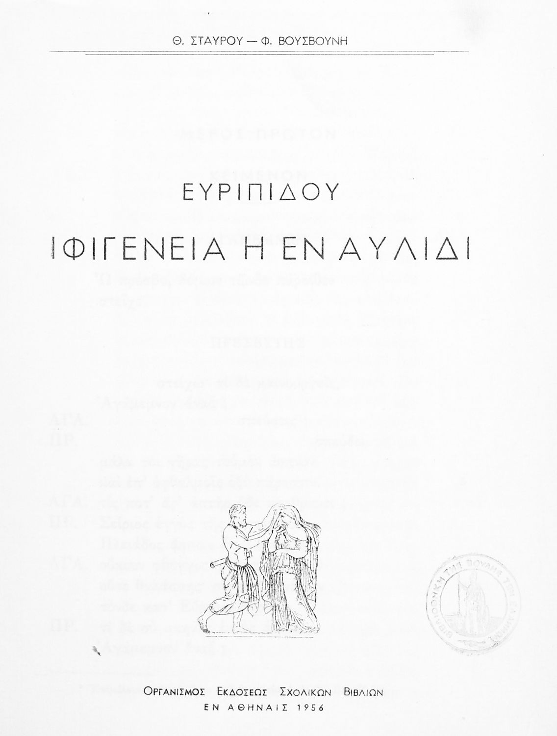 Σχολικό εγχειρίδιο Αρχαίων Ελληνικών που περιέχει εισαγωγή στο αρχαίο δράμα και στη ζωή και το έργο του Ευριπίδη, αποσπάσματα από την Ιφιγένεια η εν Αυλίδι και την Ιφιγένεια η εν Ταύροις και ερμηνευτικά σχόλια.
