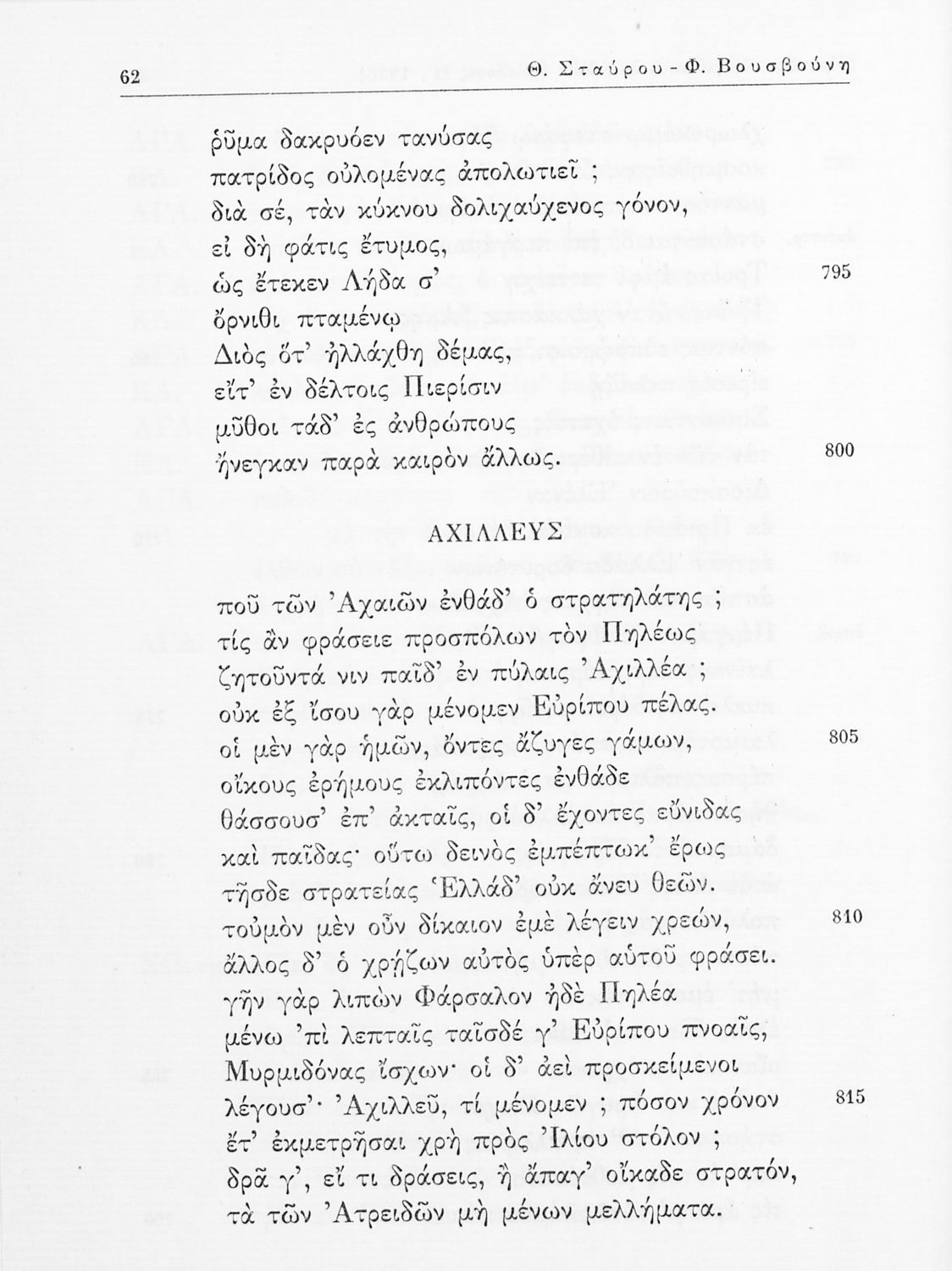 Ευριπίδης, Φ. Βουσβούνης, Θ. Σταύρου (σχόλια)