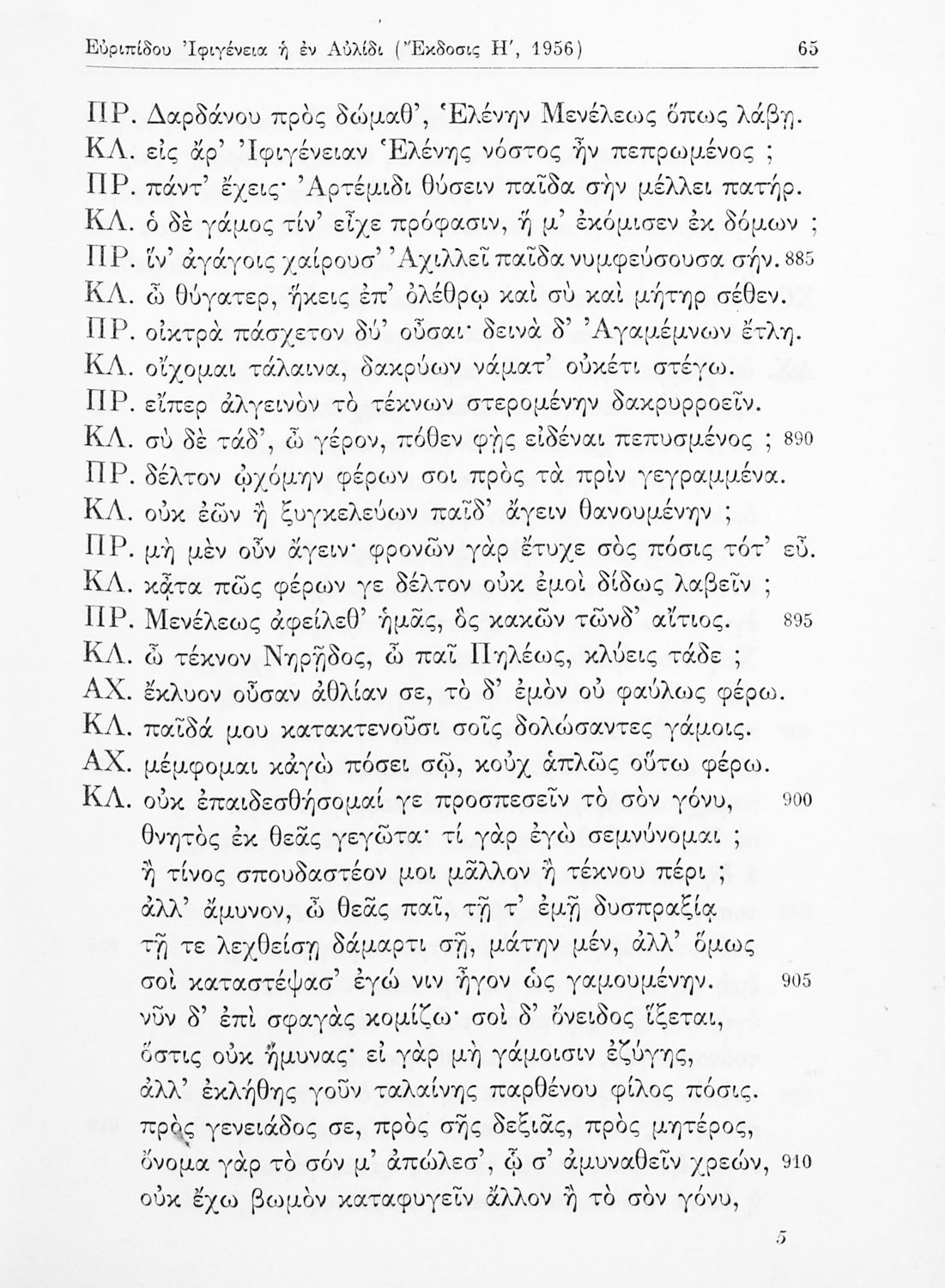 Σχολικό εγχειρίδιο Αρχαίων Ελληνικών Ε΄ Γυμνασίου που περιέχει εισαγωγή στο αρχαίο δράμα και στη ζωή και το έργο του Ευριπίδη, αποσπάσματα από την Ιφιγένεια η εν Αυλίδι και την Ιφιγένεια η εν Ταύροις και ...