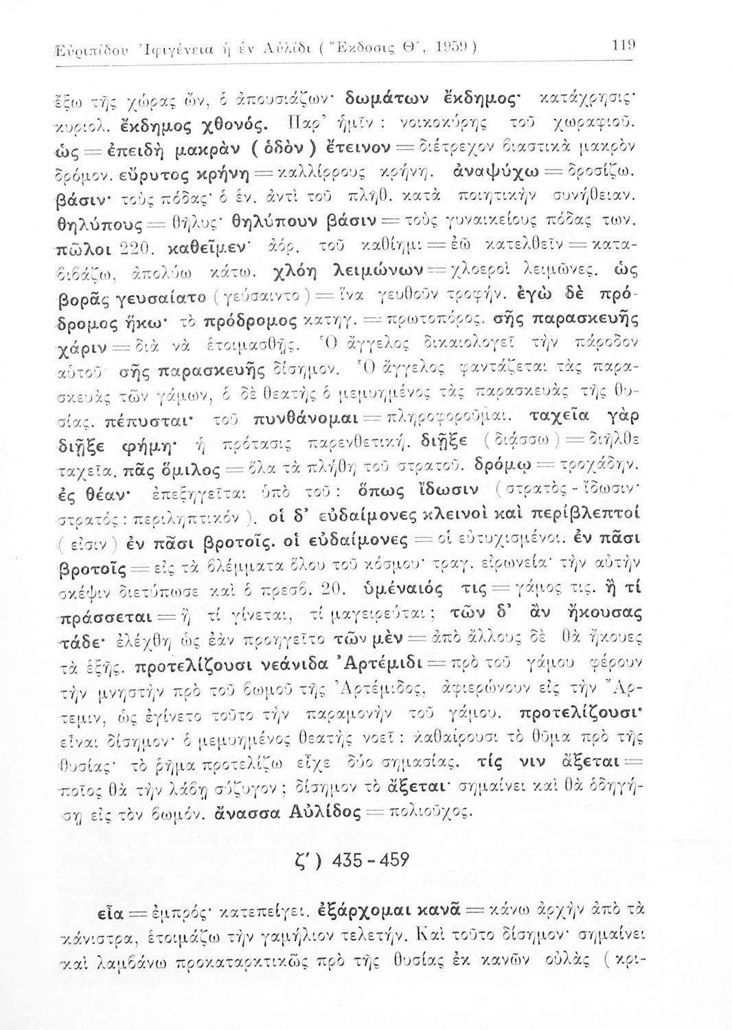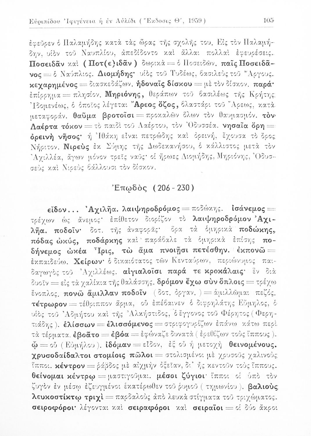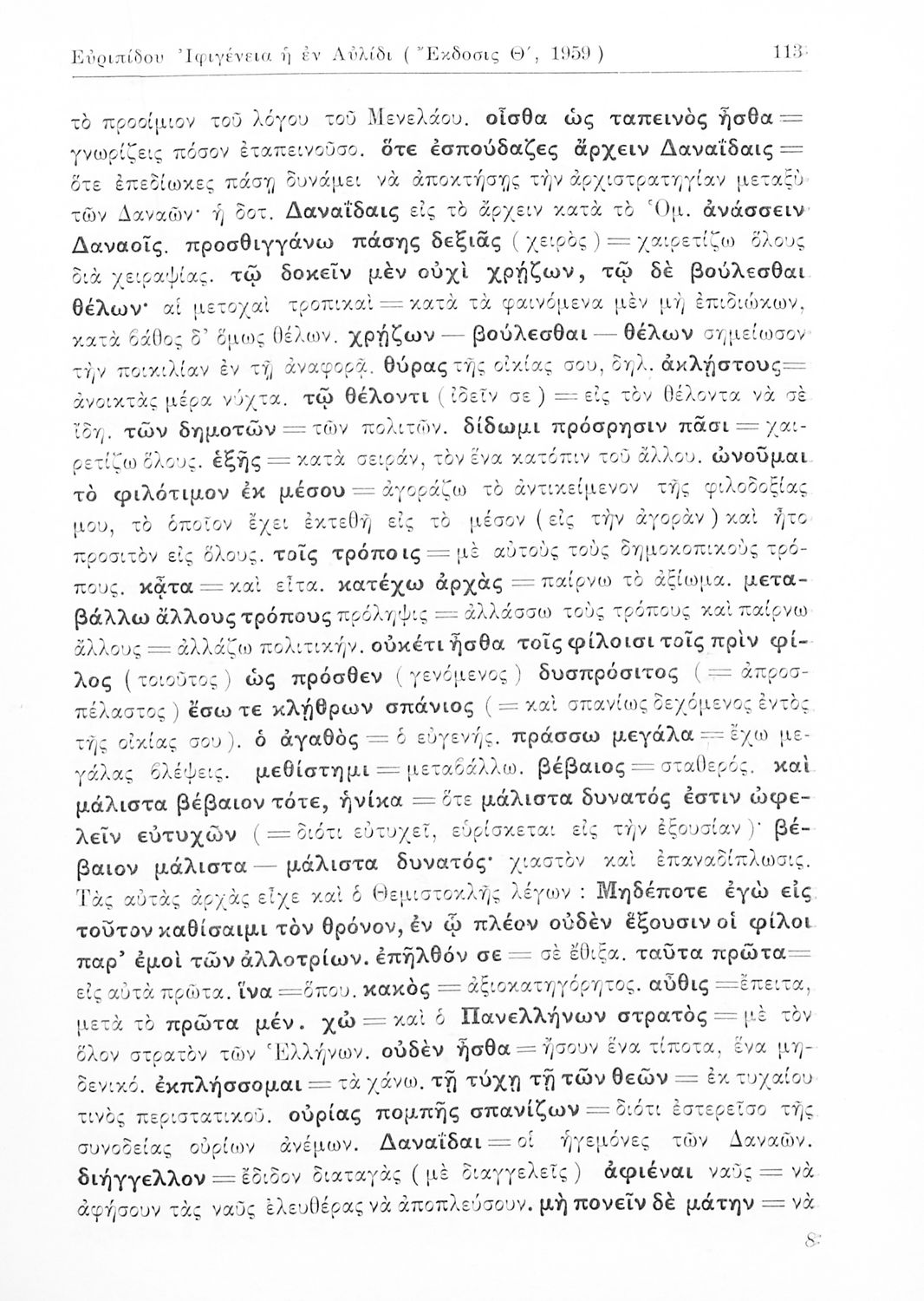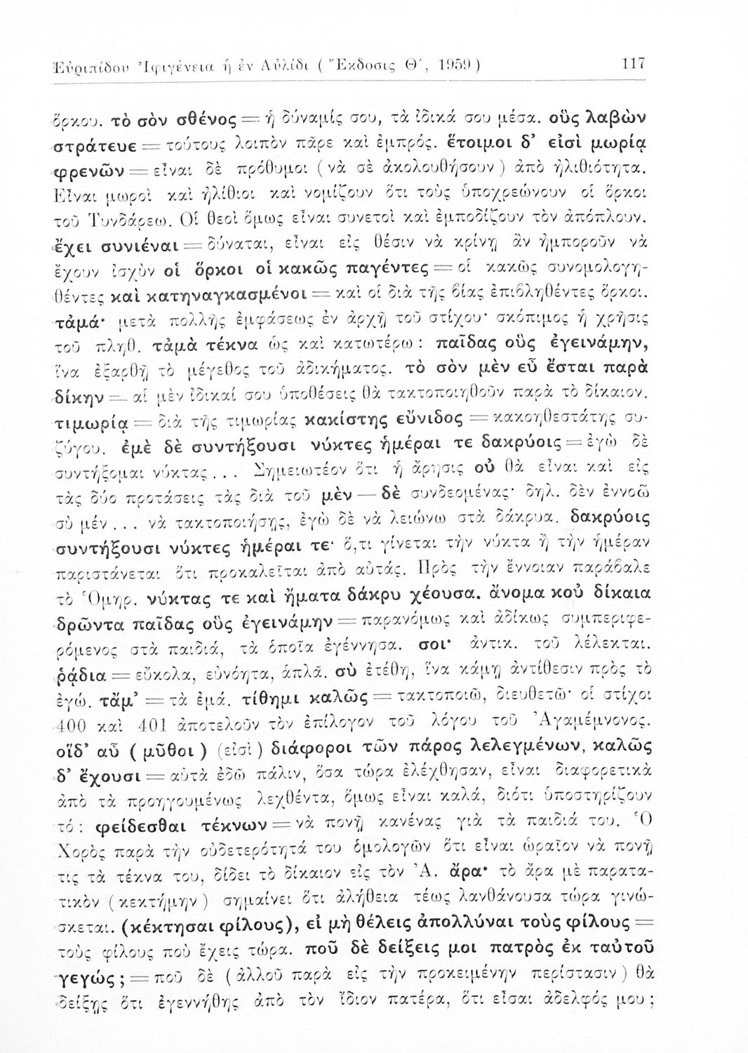 Σχολικό εγχειρίδιο Αρχαίων Ελληνικών Γυμνασίου που περιλαμβάνει αποσπάσματα τις τραγωδίες του Ευριπίδη Ιφιγένεια η εν Αυλίδι και Ιφιγένεια η εν Ταύροις, ερμηνευτικά και πραγματολογικά σχόλια και λεξιλογικές παρατηρήσεις.