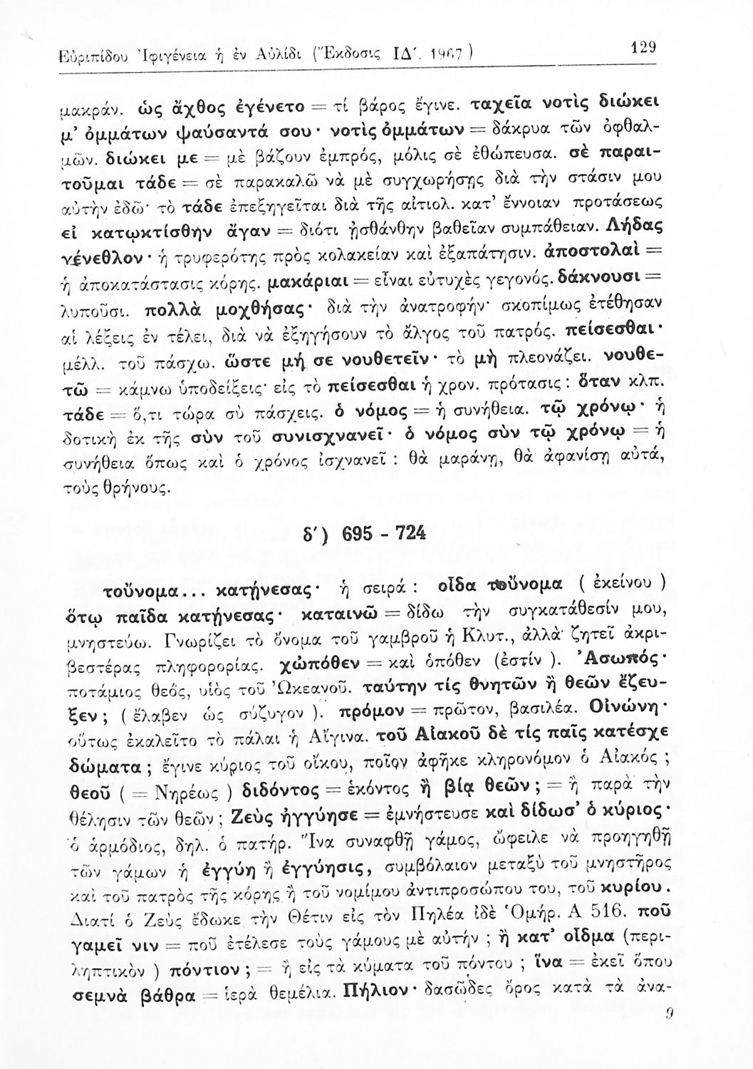 Σχολικό εγχειρίδιο Αρχαίων Ελληνικών Γυμνασίου που περιλαμβάνει αποσπάσματα τις τραγωδίες του Ευριπίδη Ιφιγένεια η εν Αυλίδι και Ιφιγένεια η εν Ταύροις, ερμηνευτικά και πραγματολογικά σχόλια και λεξιλογικές ...