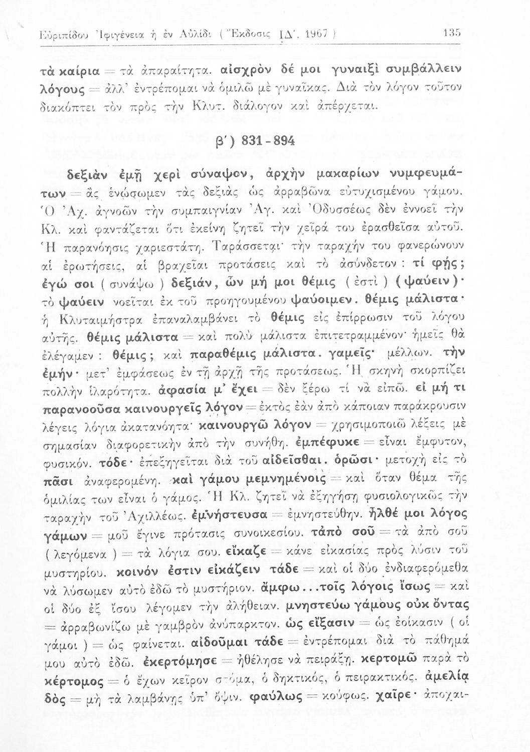 Σχολικό εγχειρίδιο Αρχαίων Ελληνικών Γυμνασίου που περιλαμβάνει αποσπάσματα από τις τραγωδίες του Ευριπίδη Ιφιγένεια η εν Αυλίδι και Ιφιγένεια η εν Ταύροις, ερμηνευτικά και πραγματολογικά σχόλια και ...