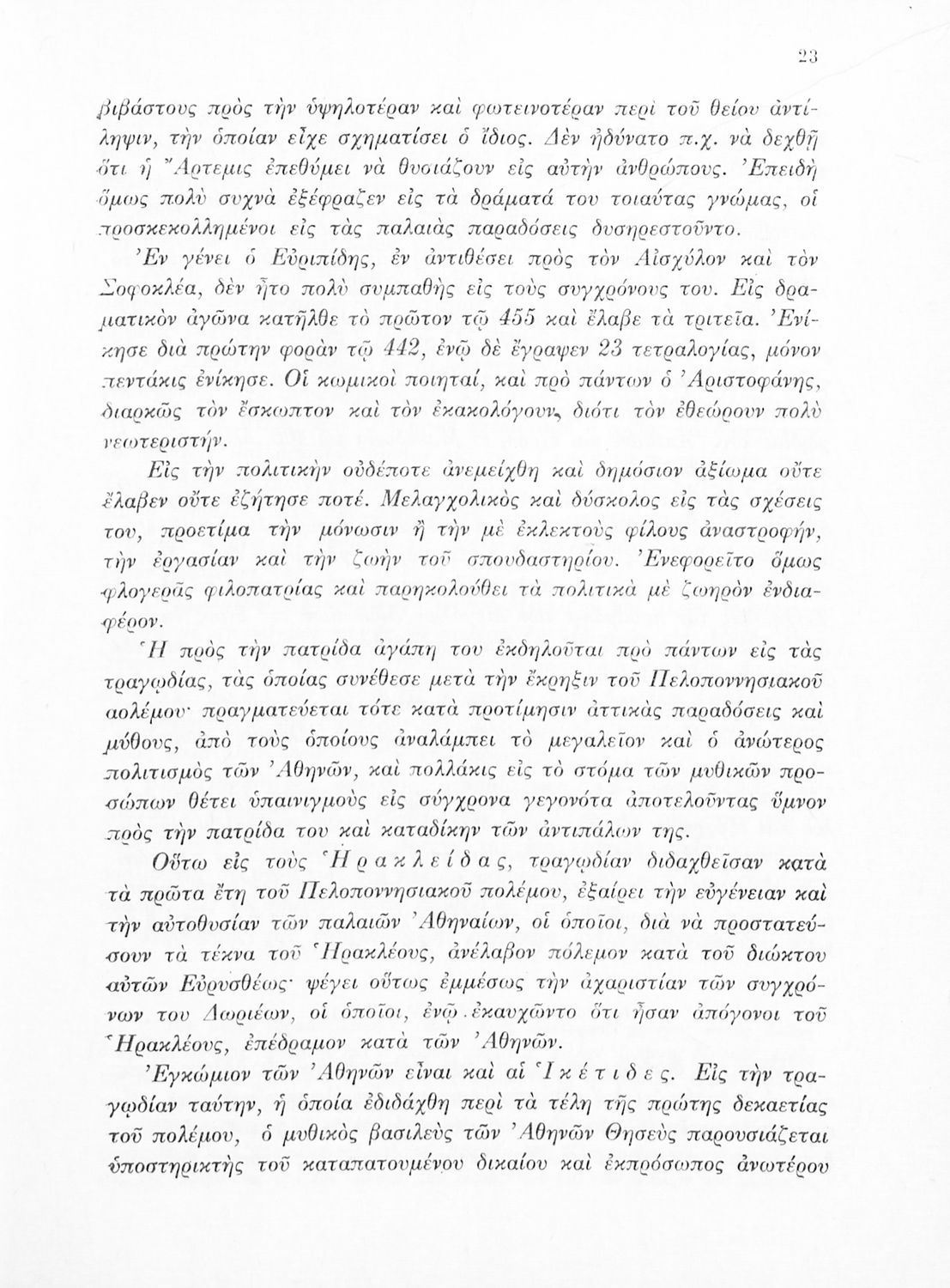 Βαθμίδα εκπαίδευσης: Δευτεροβάθμια Τάξη: Β' Λυκείου Μάθημα: Αρχαία Ελληνικά Γλώσσα: Απλή καθαρεύουσα Παρουσίαση περιεχομένου: Σχολικό εγχειρίδιο Αρχαίων Ελληνικών Β΄ Λυκείου που περιέχει εισαγωγή στο αρχαίο δράμα και στη ζωή και το έργο του Ευριπίδη, αποσπάσματα από την Ιφιγένεια η εν Αυλίδι και την Ιφιγένεια η εν Ταύροις και ερμηνευτικά σχόλια. |
