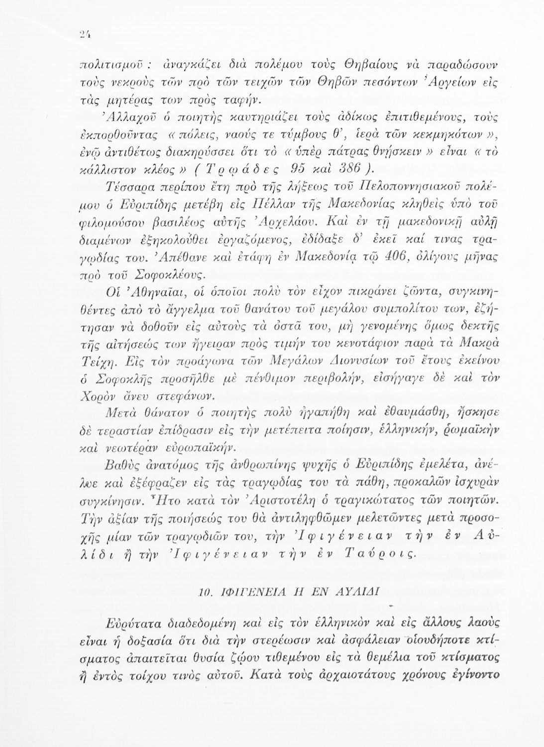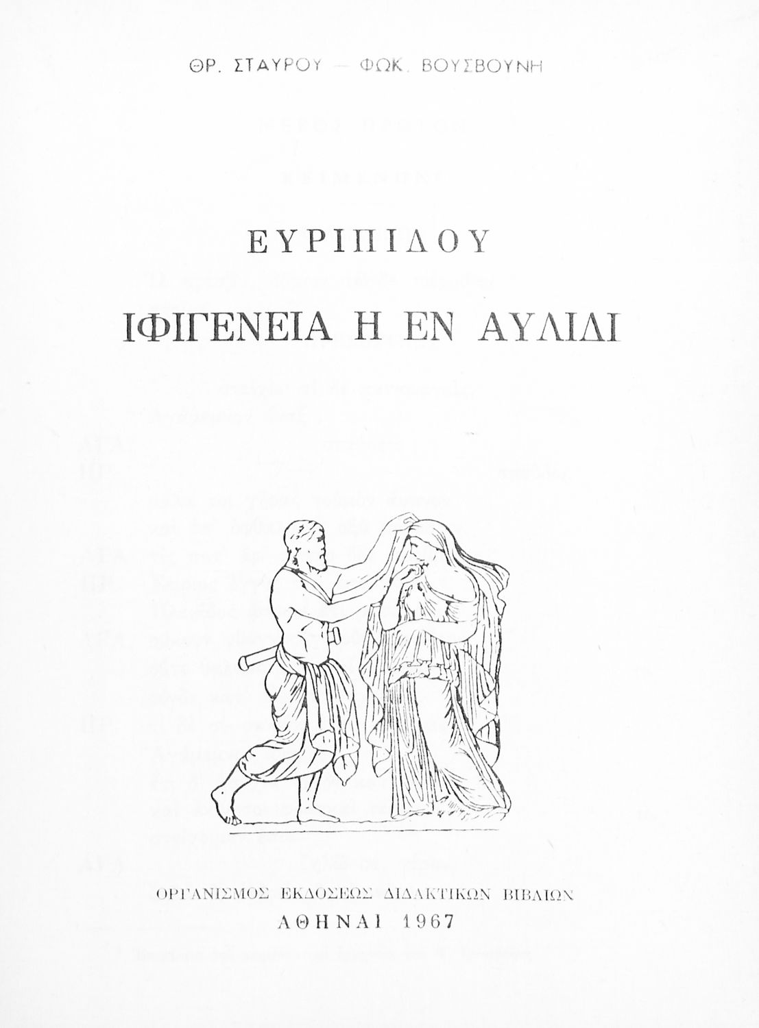 Σχολικό εγχειρίδιο Αρχαίων Ελληνικών Β΄ Λυκείου που περιέχει εισαγωγή στο αρχαίο δράμα και στη ζωή και το έργο του Ευριπίδη, αποσπάσματα από την Ιφιγένεια η εν Αυλίδι και την Ιφιγένεια η εν Ταύροις και ερμηνευτικά σχόλια.